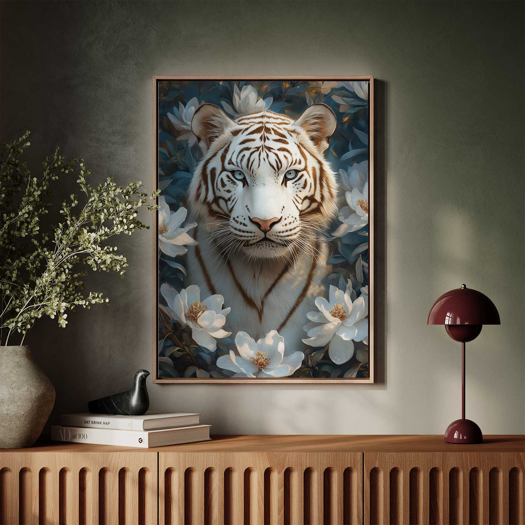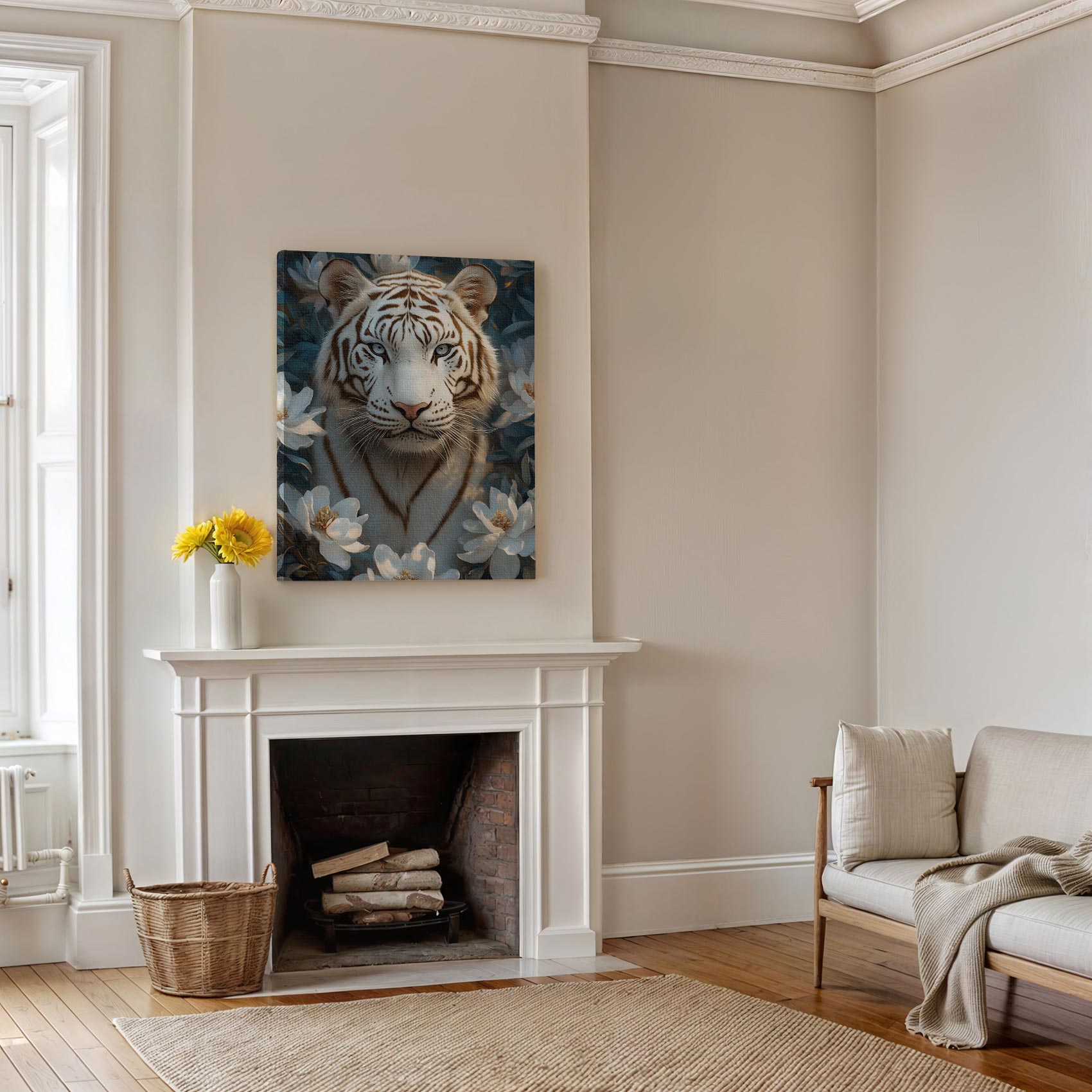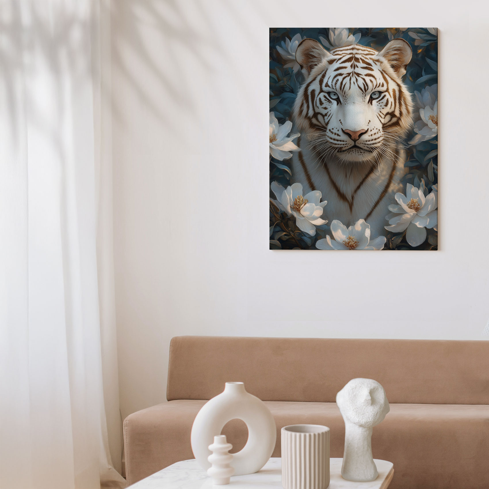 Terug naar collectie Canvas Witte Tijger in Bloementuin