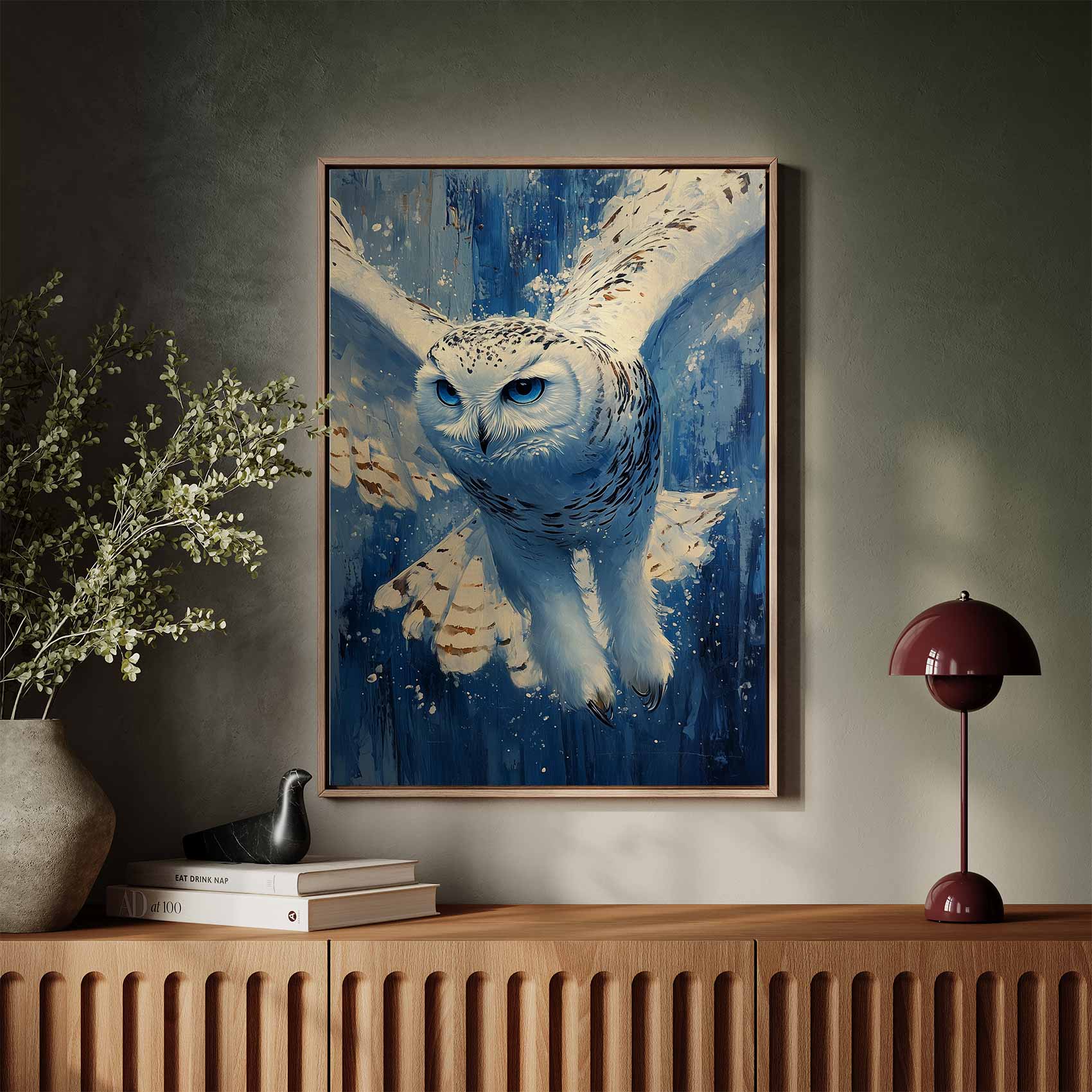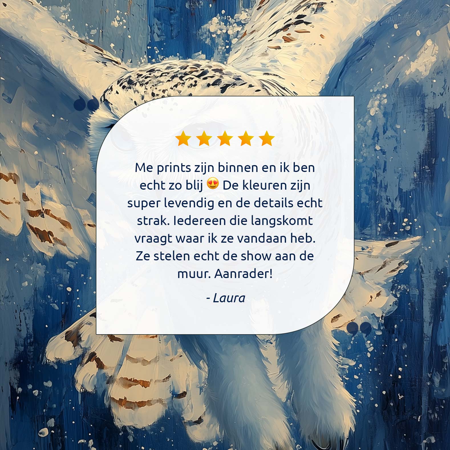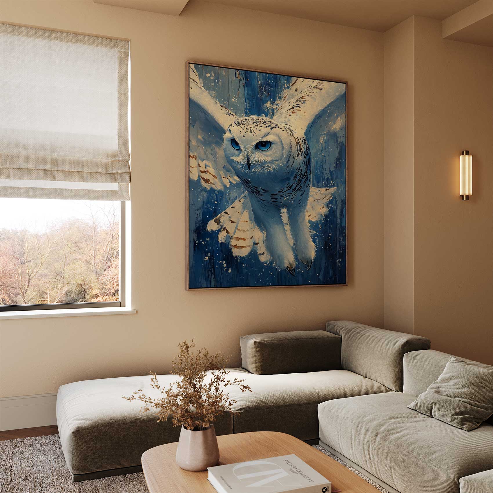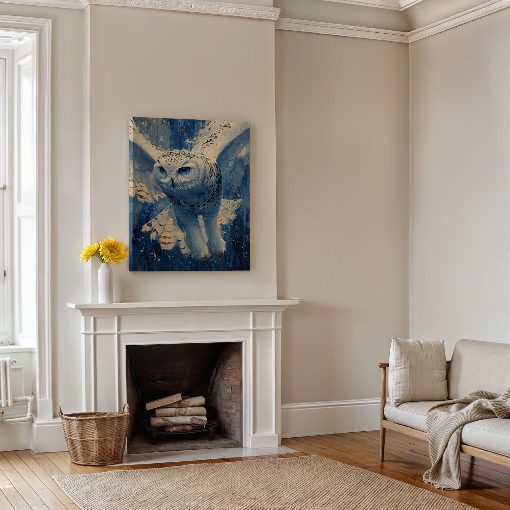 Terug naar collectie Canvas Witte uil met blauwe ogen