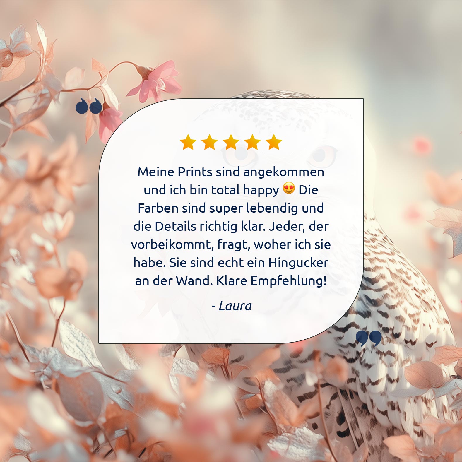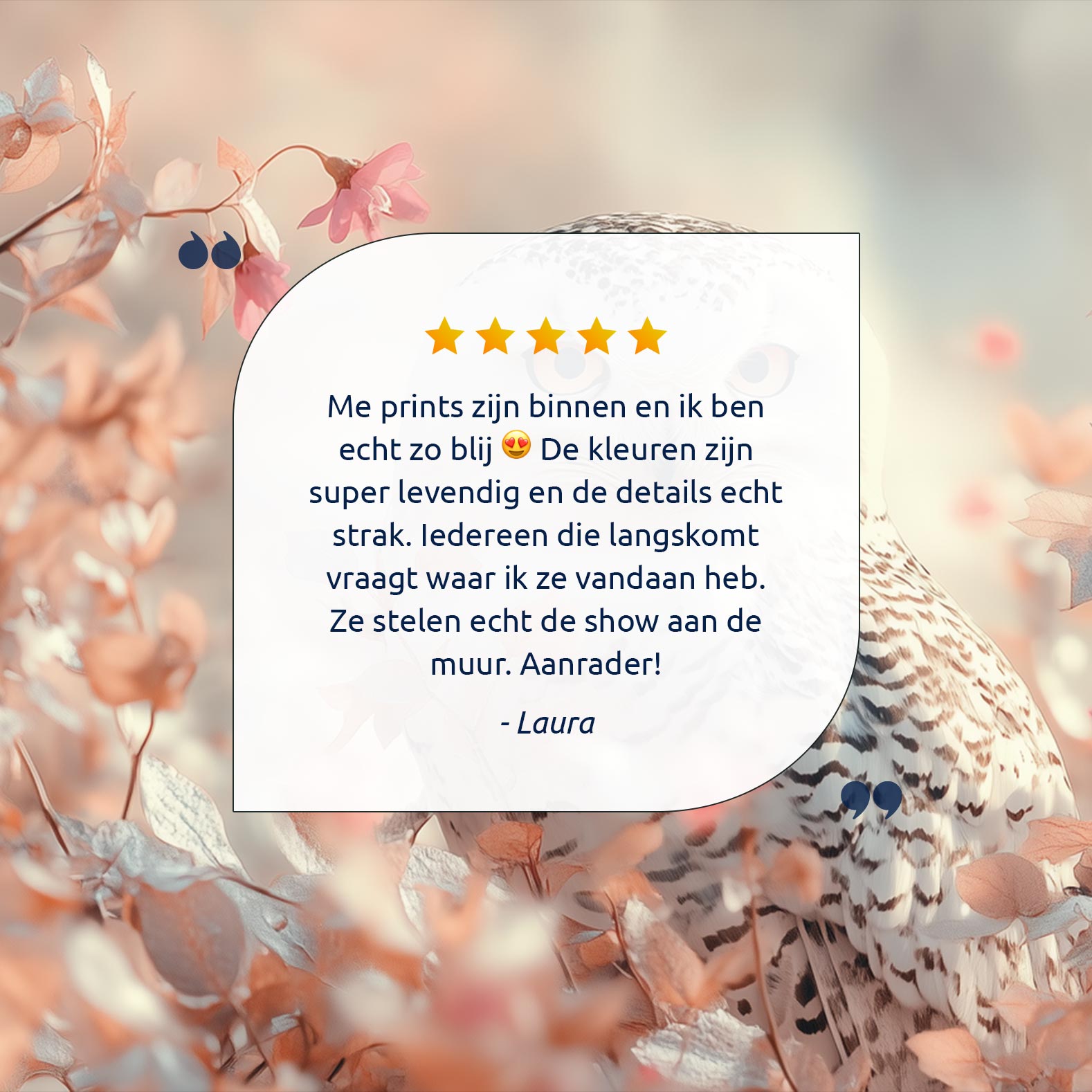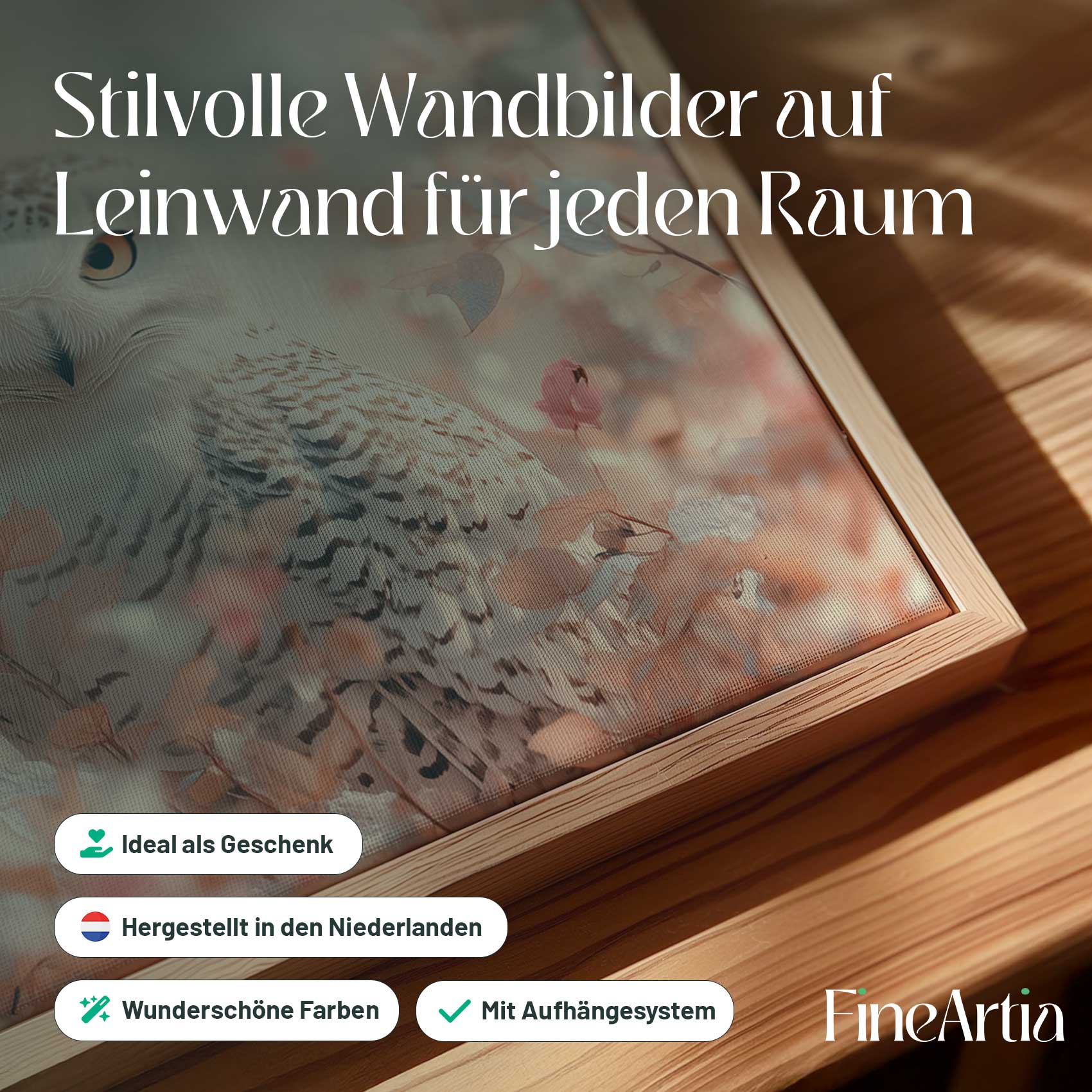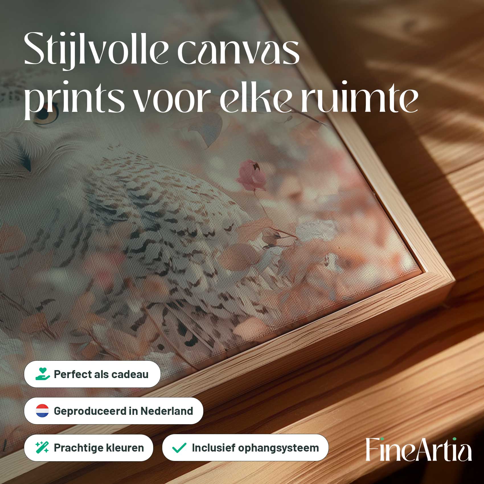 Terug naar collectie Canvas Witte uil tussen roze bloemen