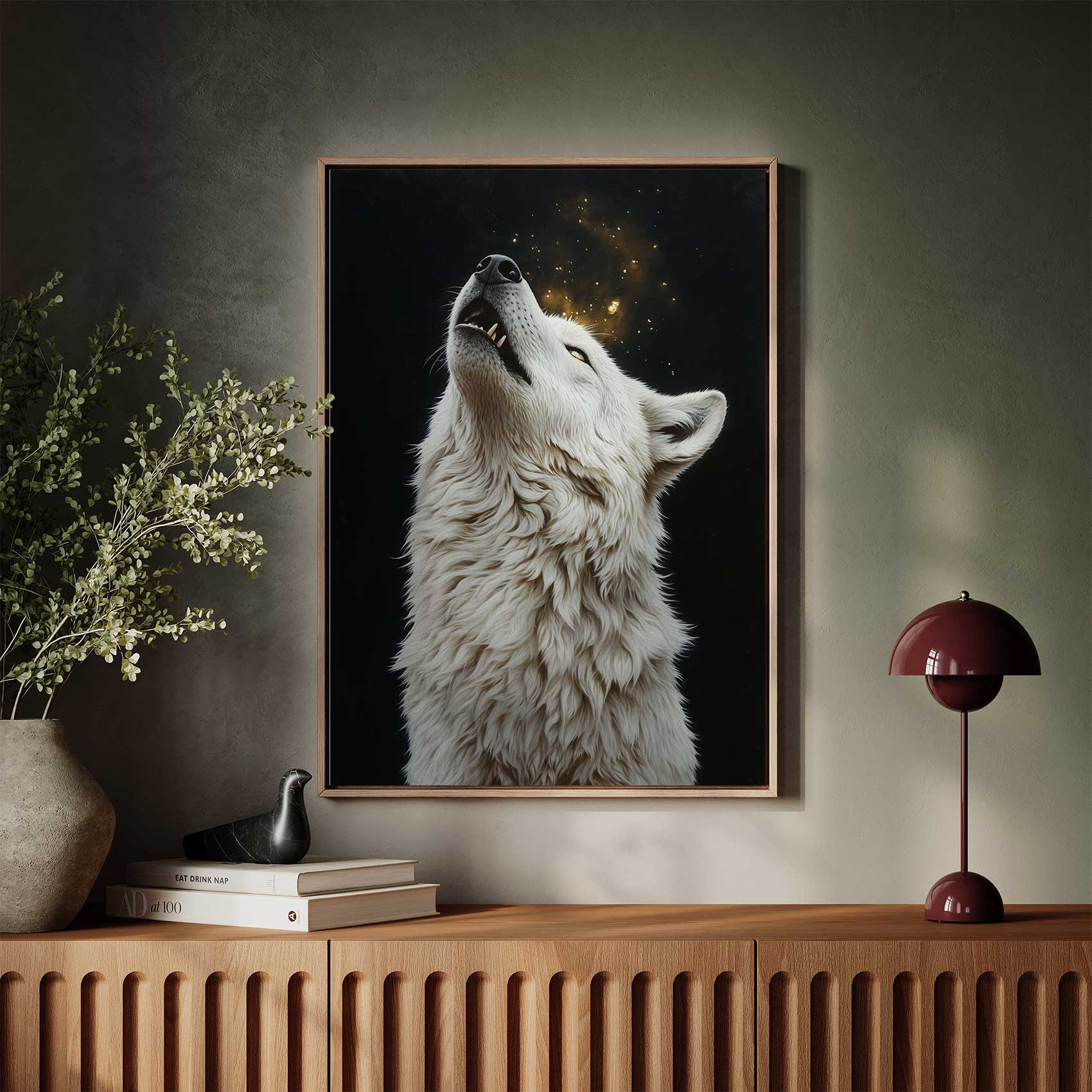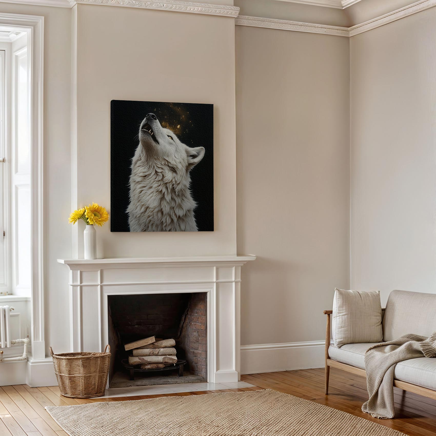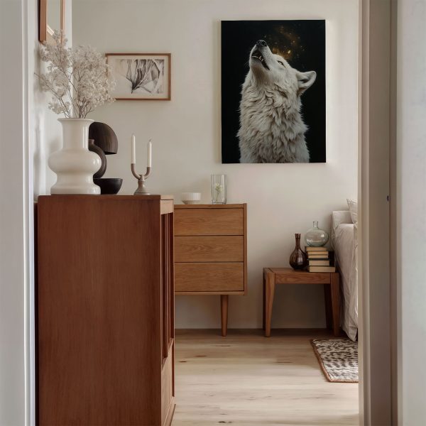 Witte wolf huilend bij nacht