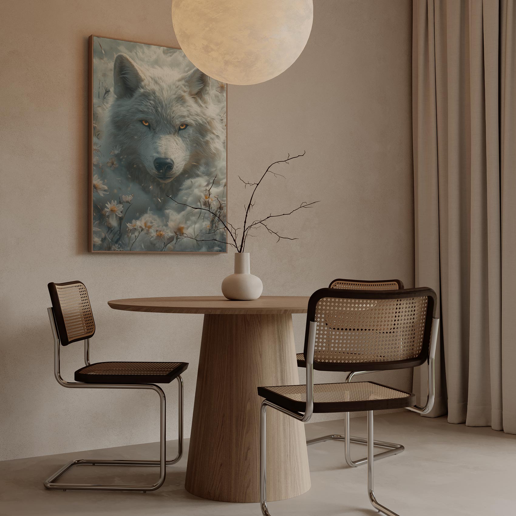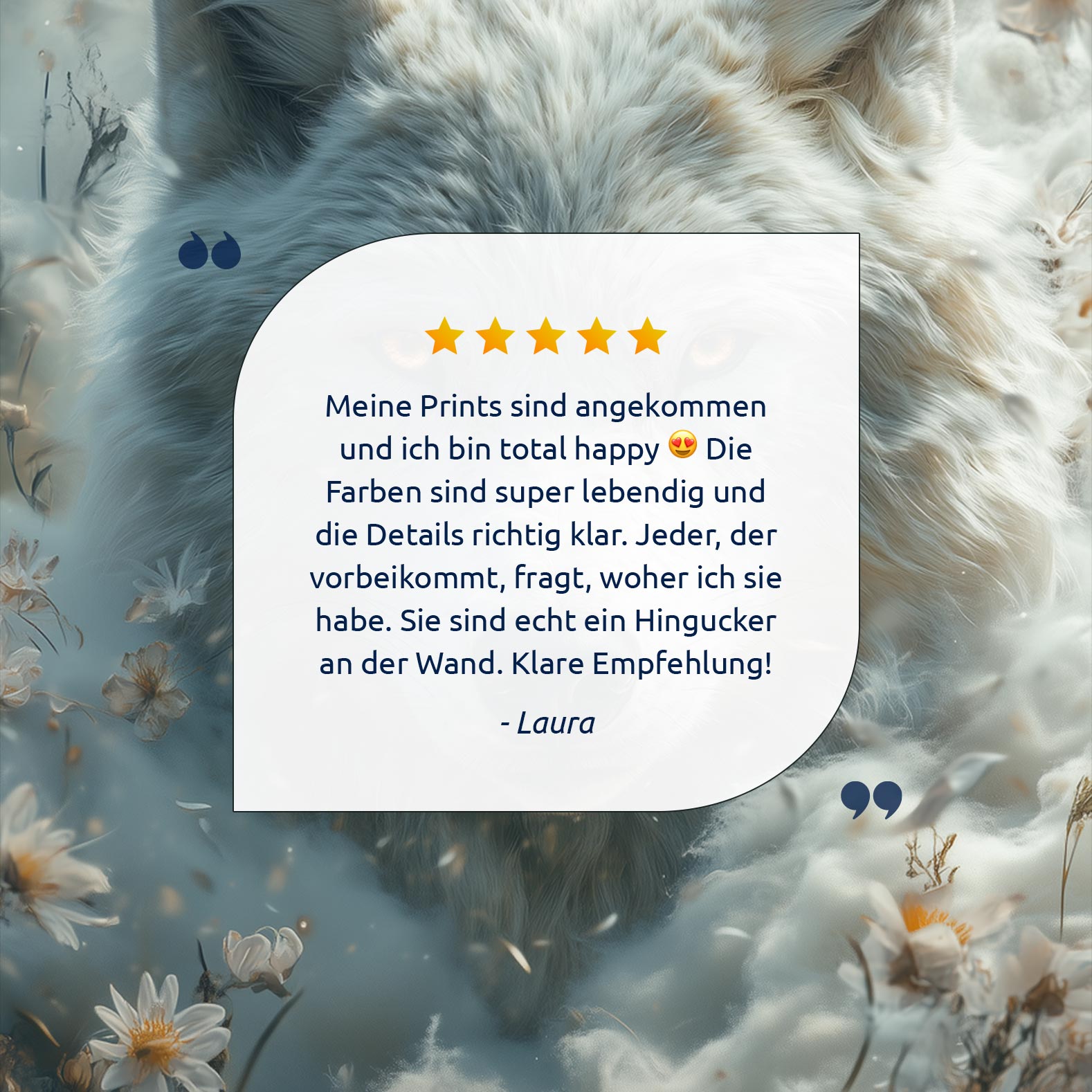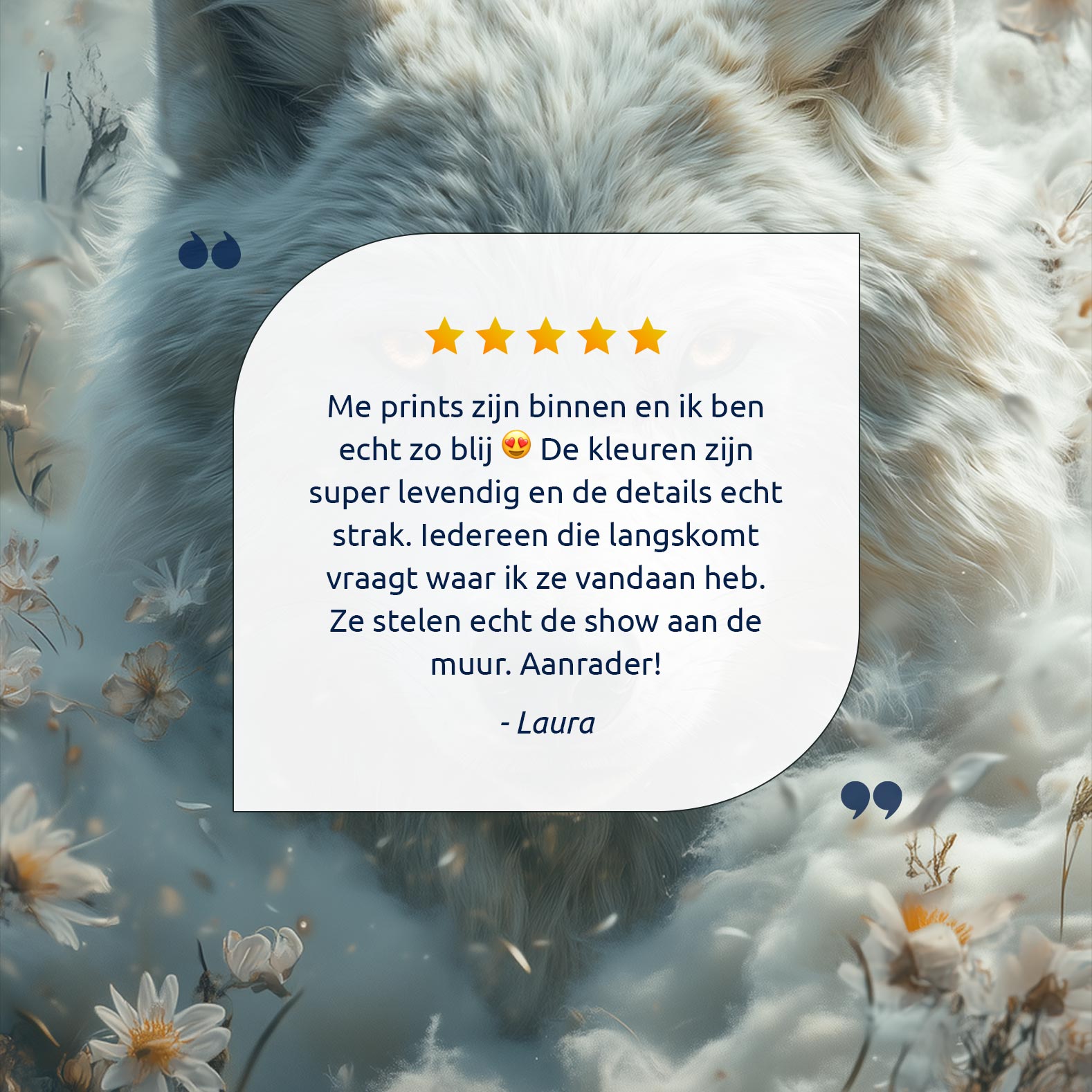 Witte wolf tussen bloemen