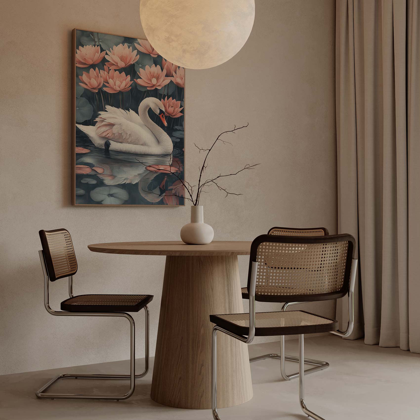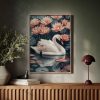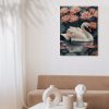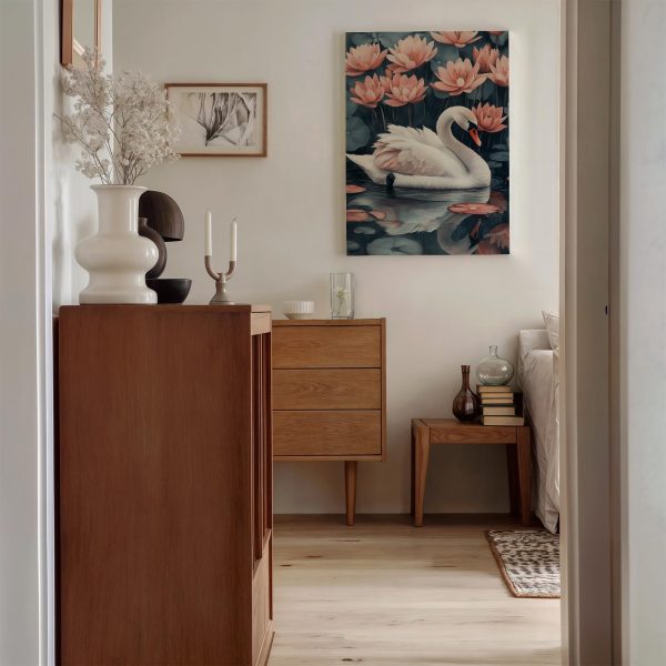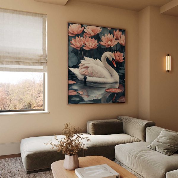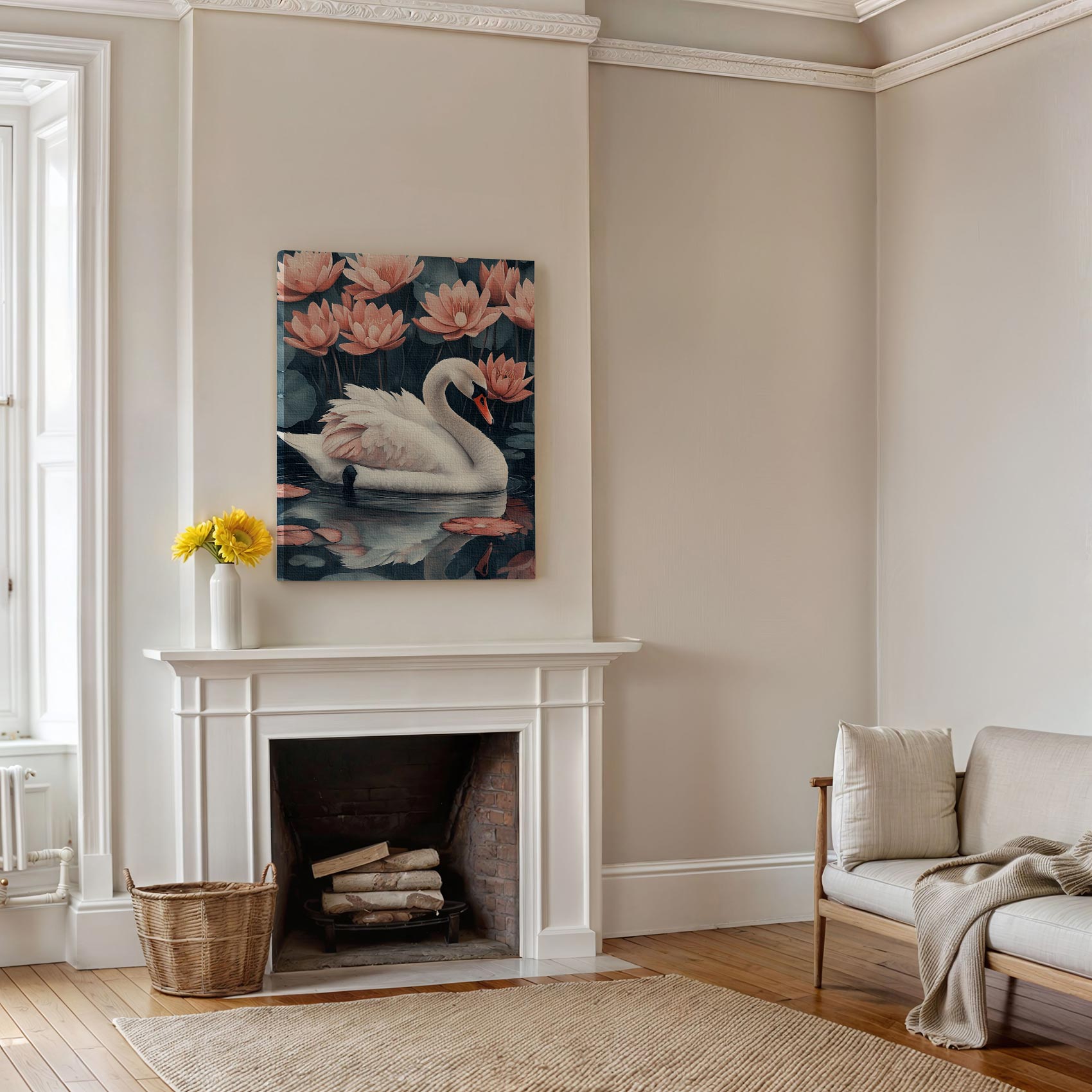 Terug naar collectie Canvas Witte zwaan in roze bloemenvijver