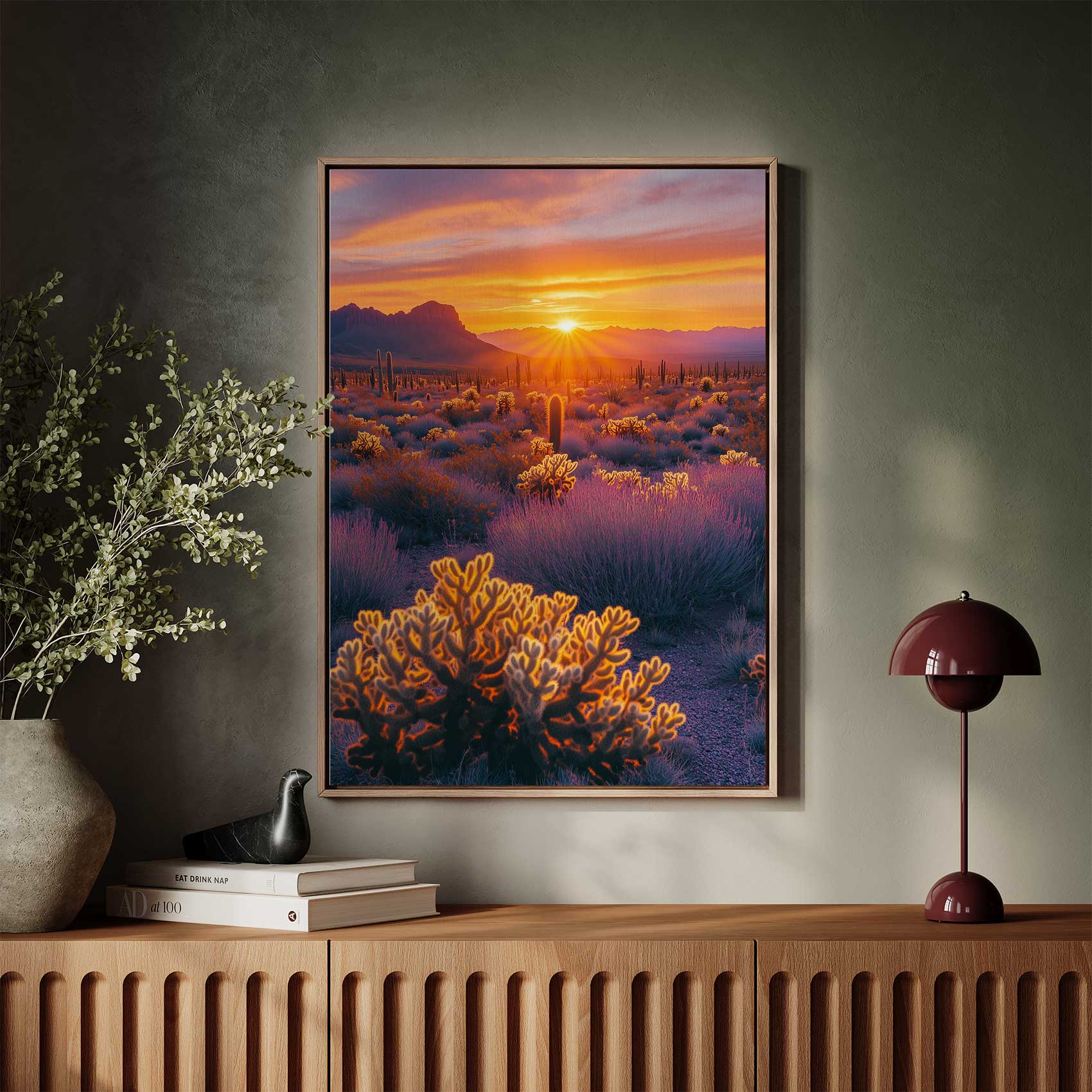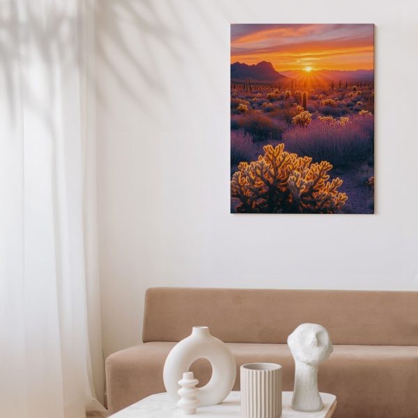 Terug naar collectie Canvas Woestijnzonsondergang met cactussen