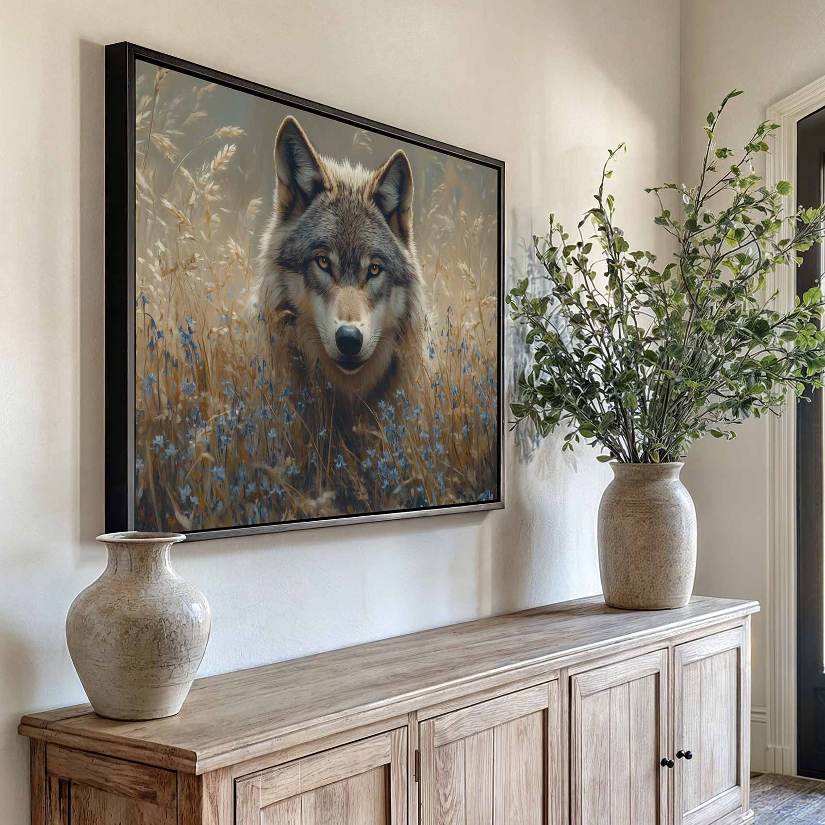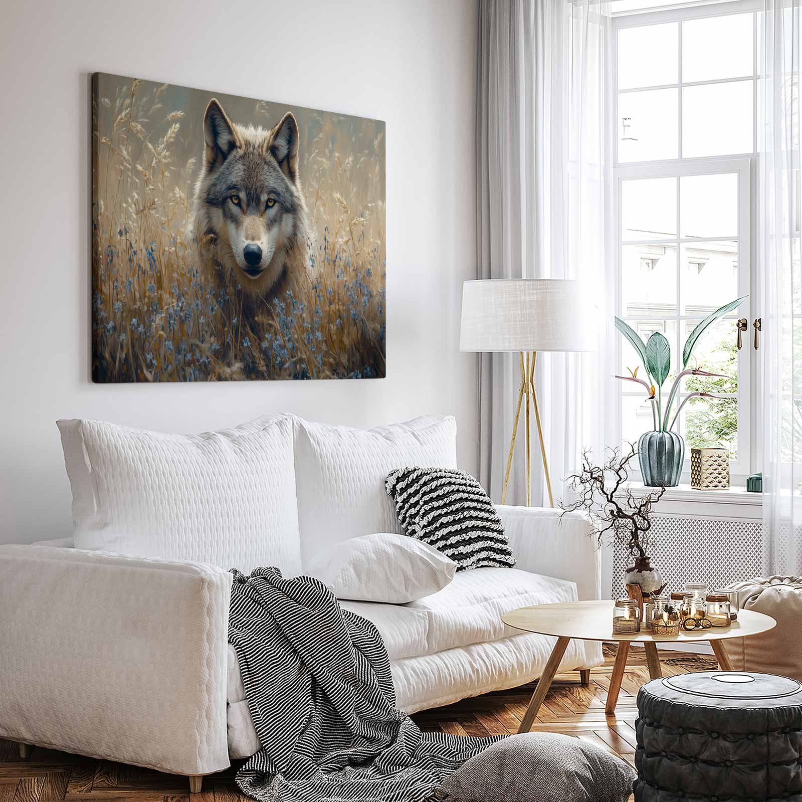 Wolf in wildblumenveld