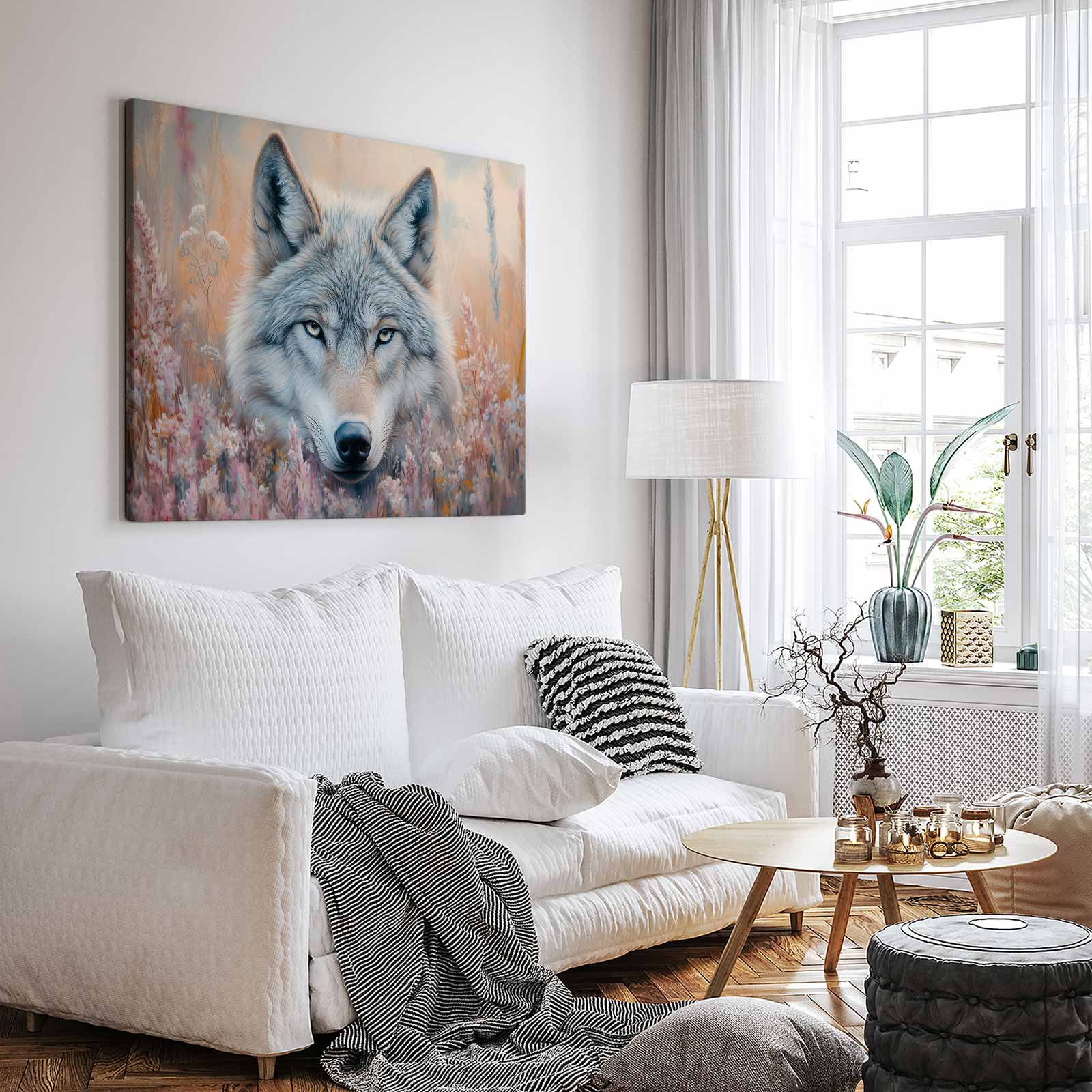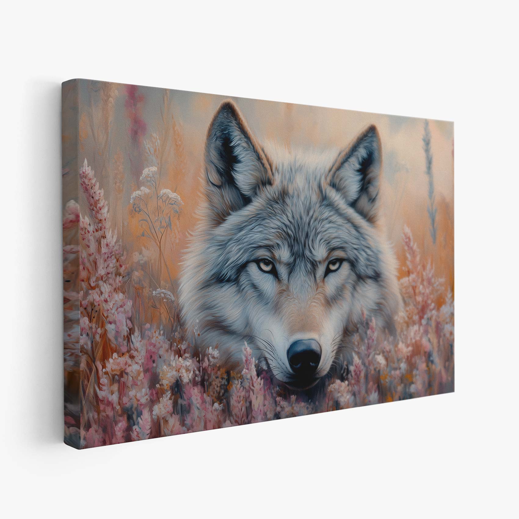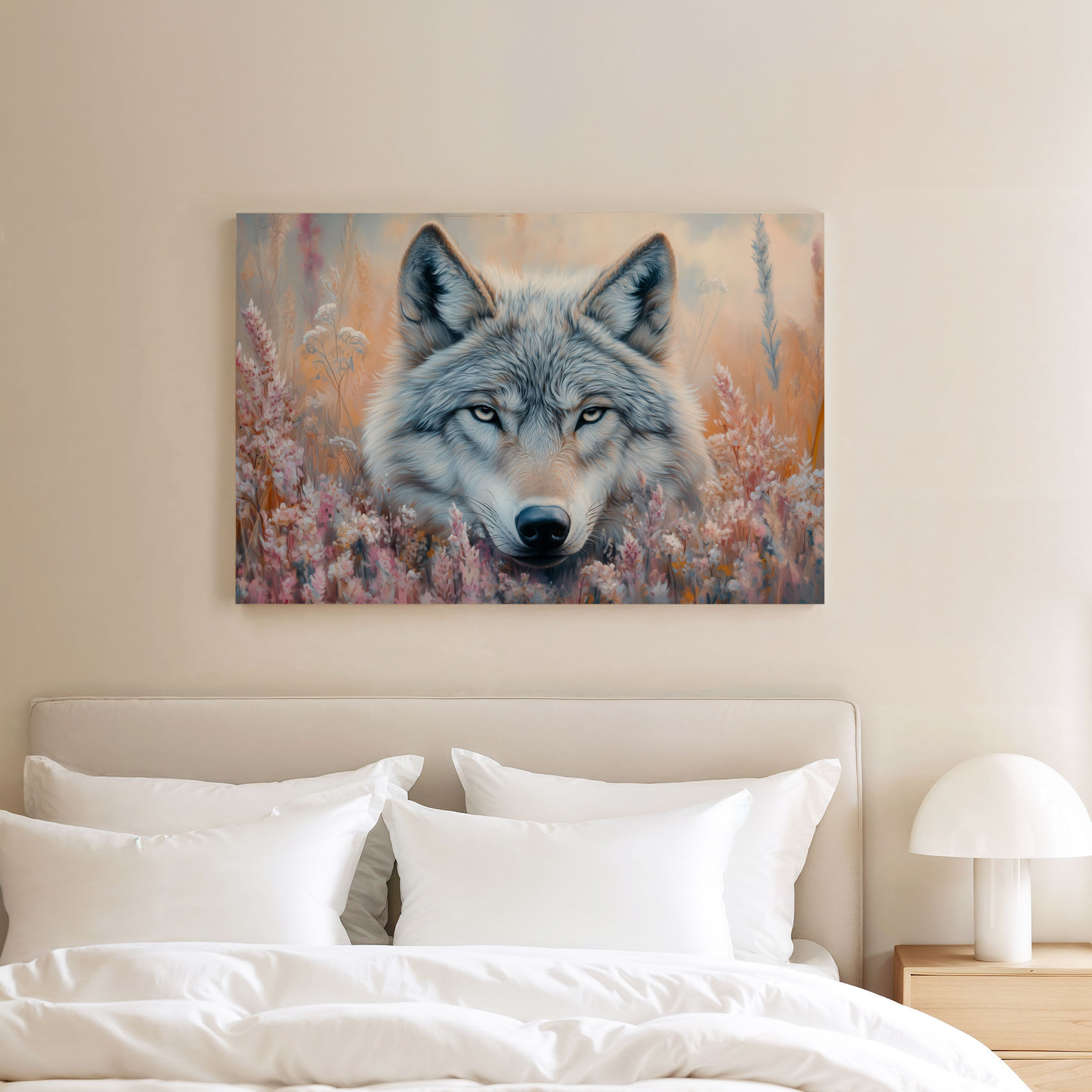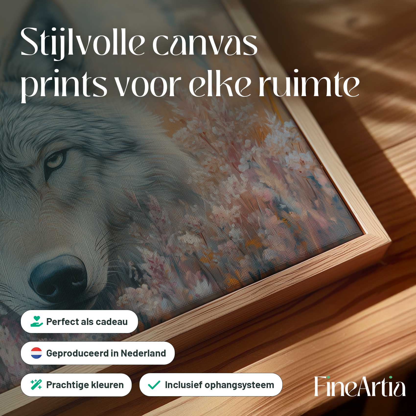 Terug naar collectie Canvas Wolf tussen bloemenveld