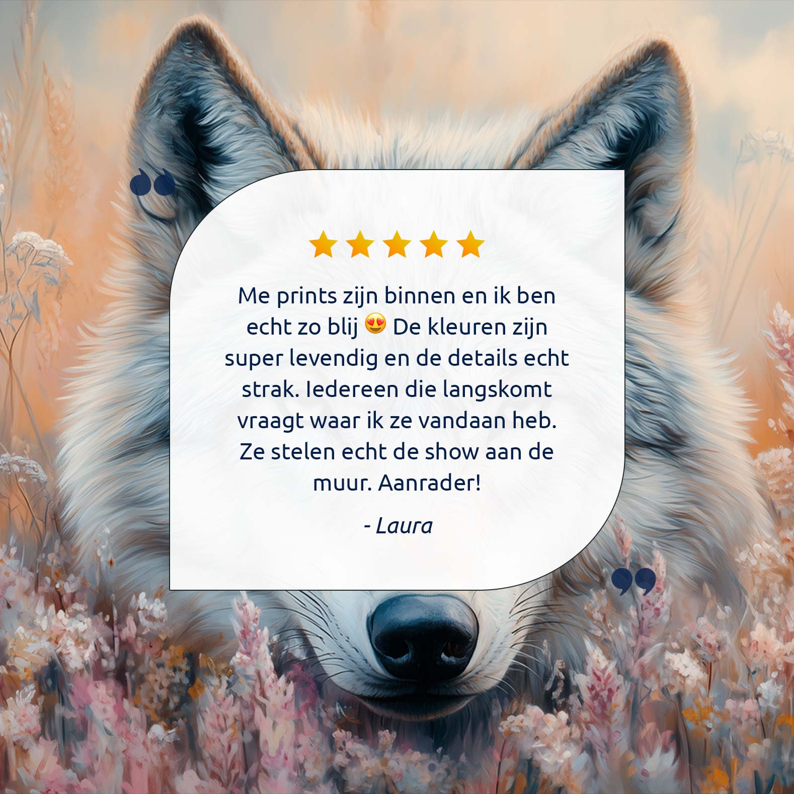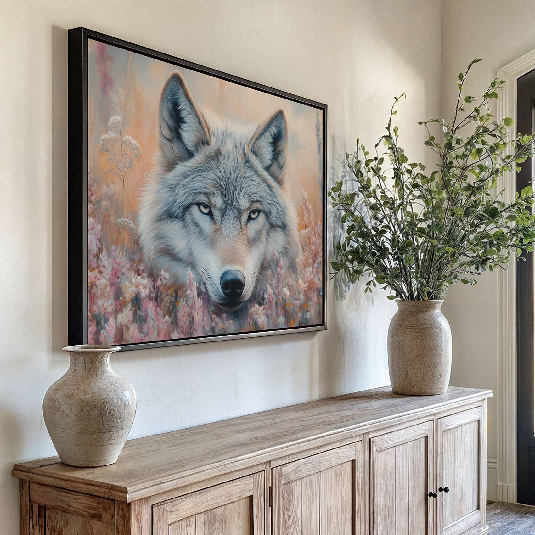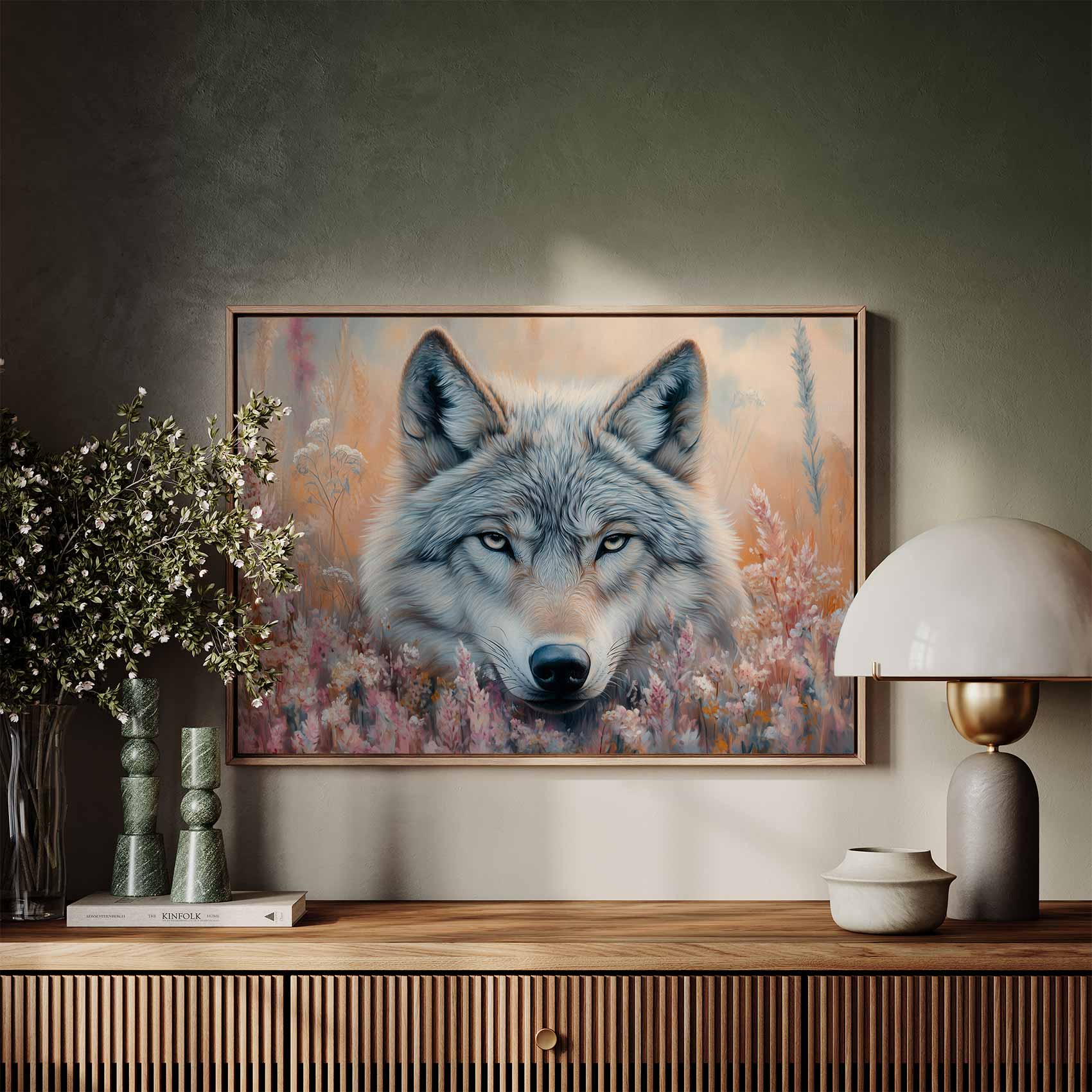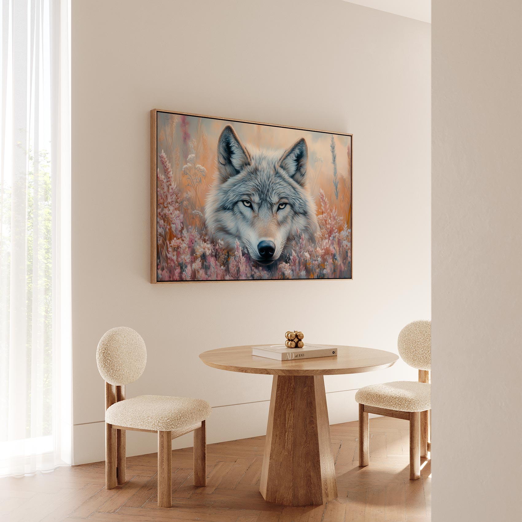 Terug naar collectie Canvas Wolf tussen bloemenveld