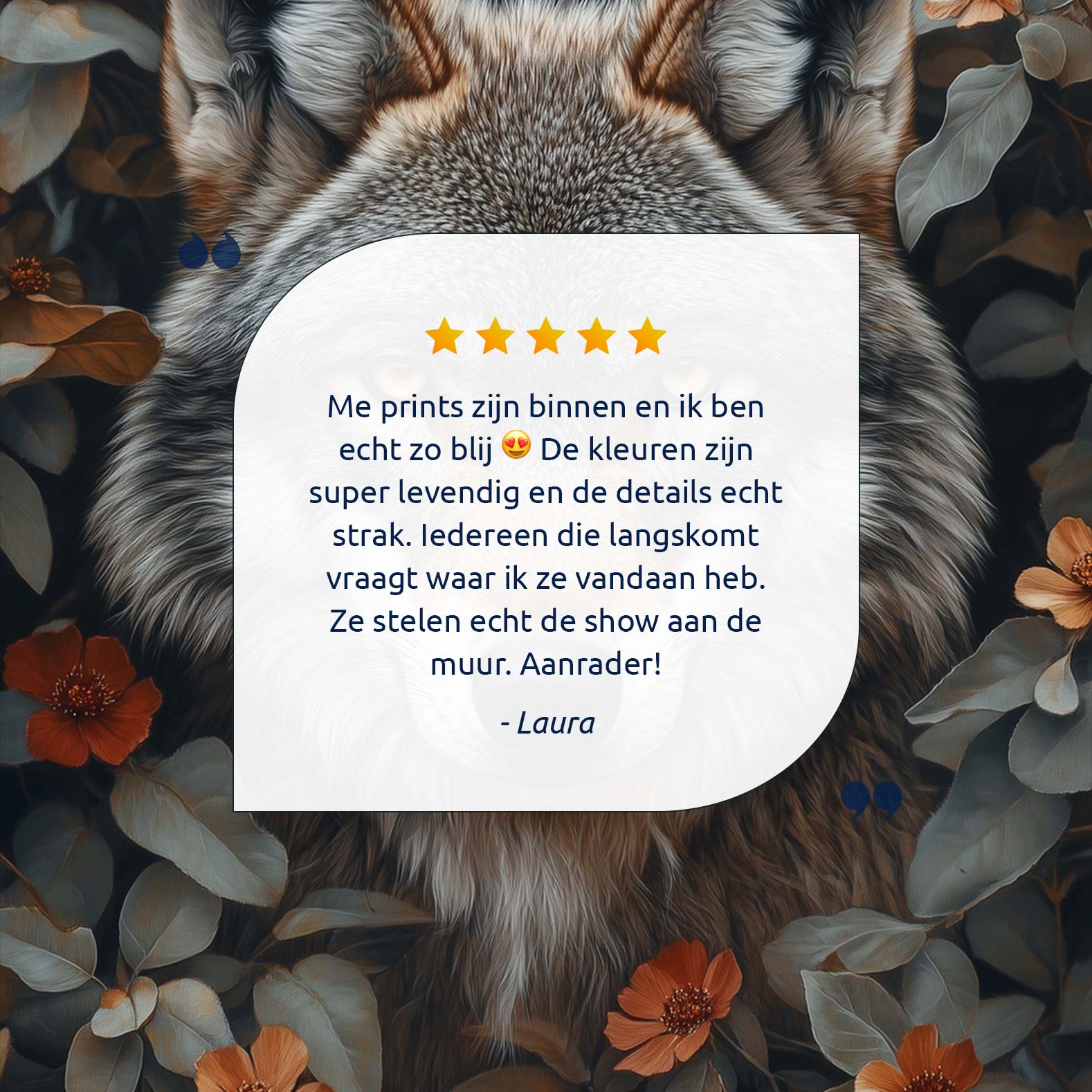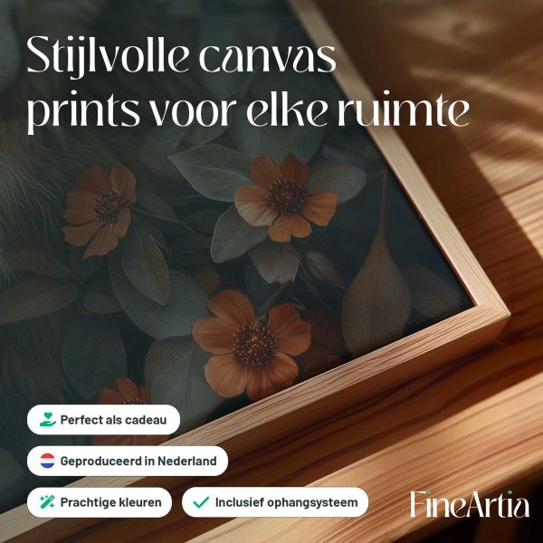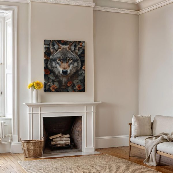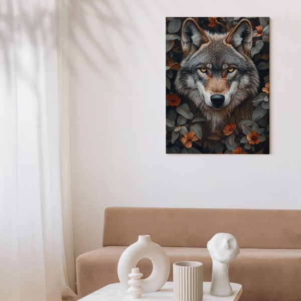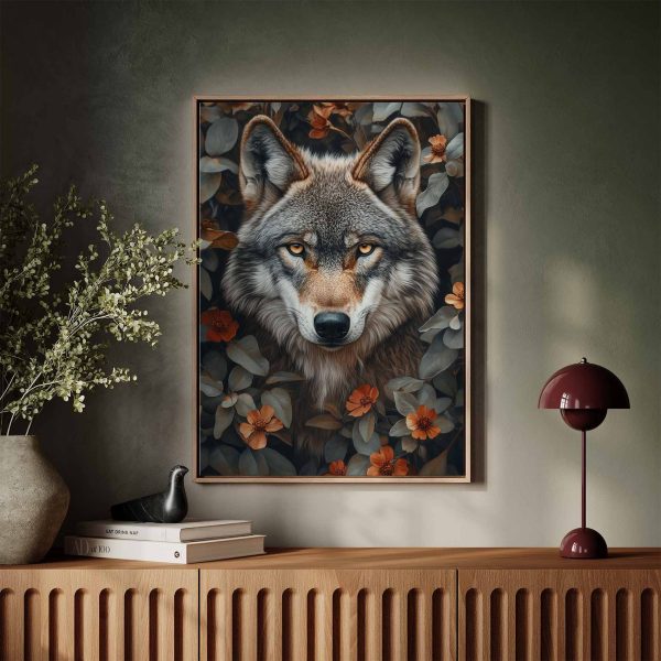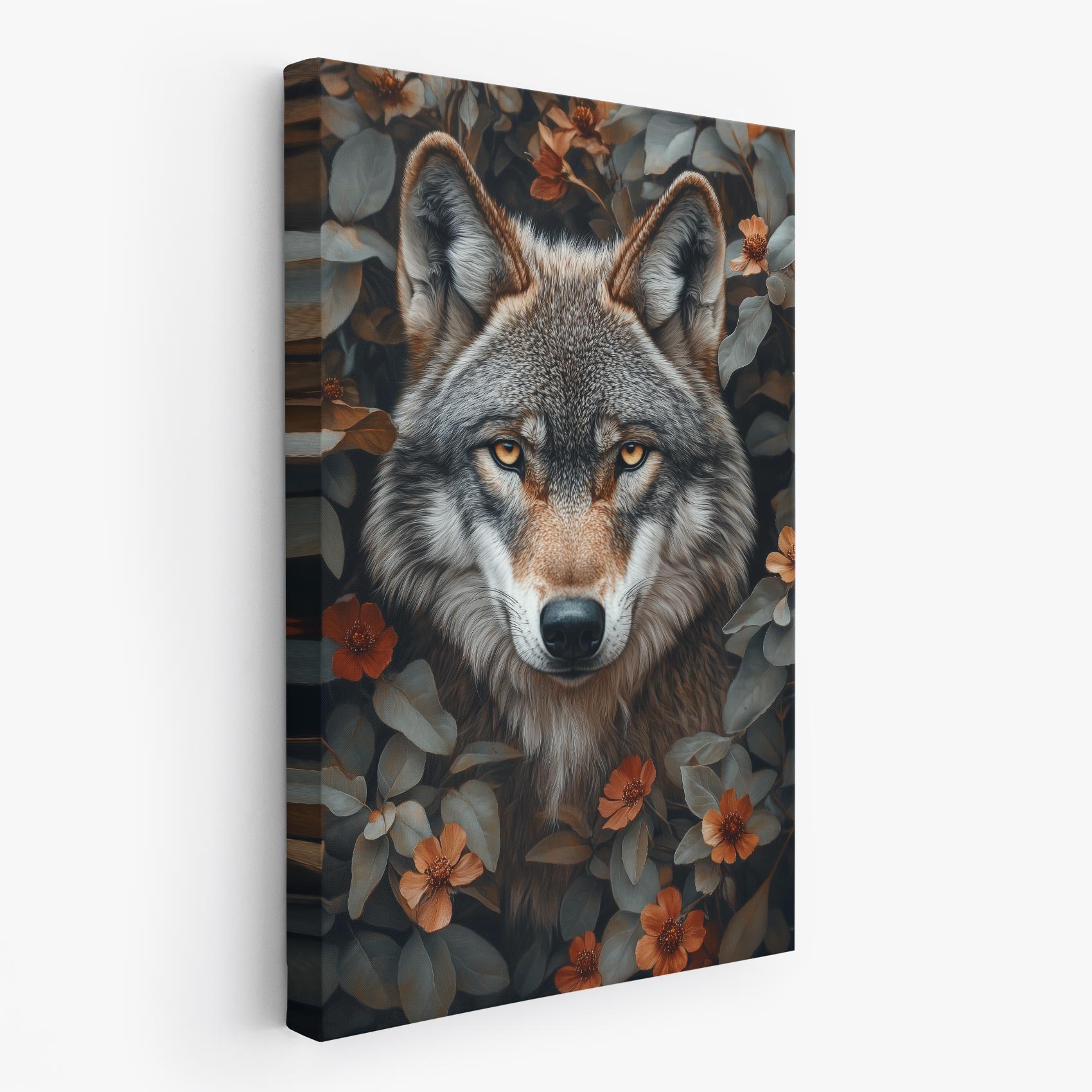 Terug naar collectie Canvas Wolf tussen oranje bloemen