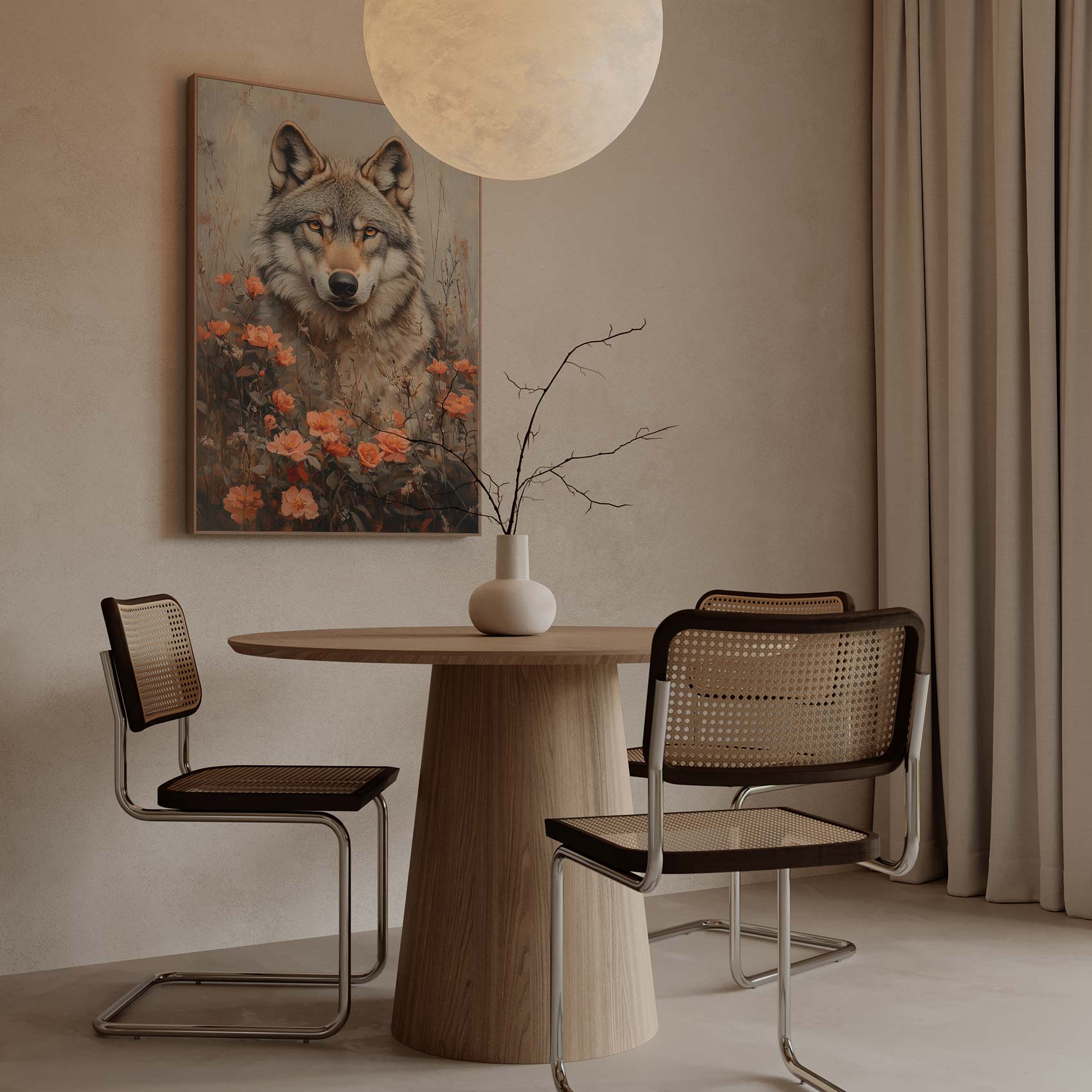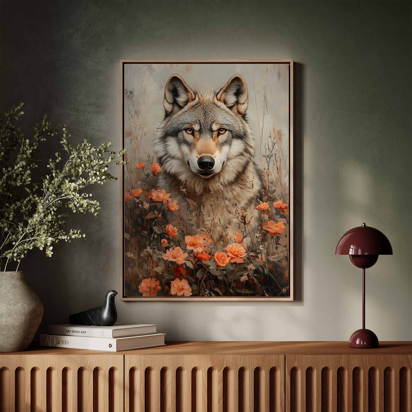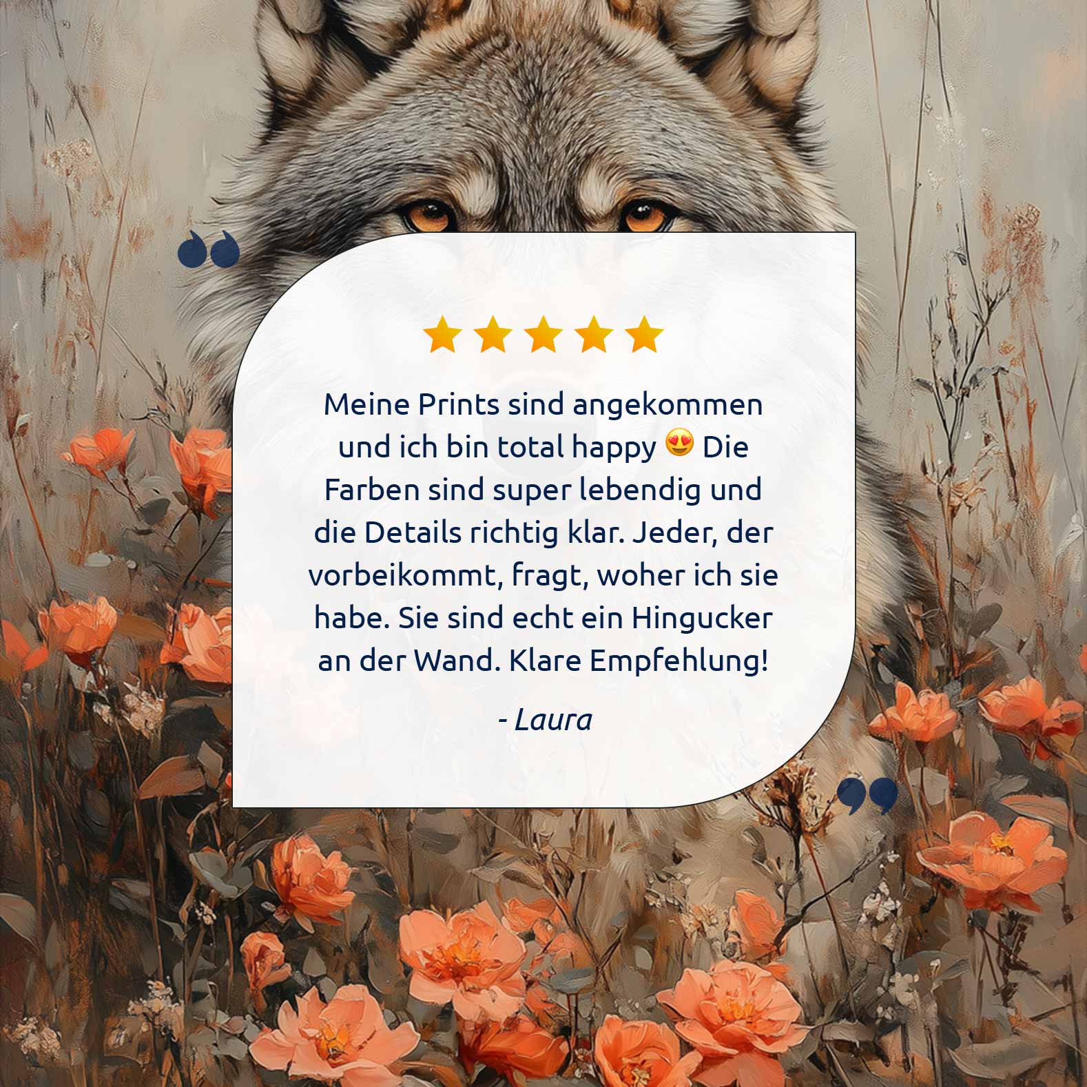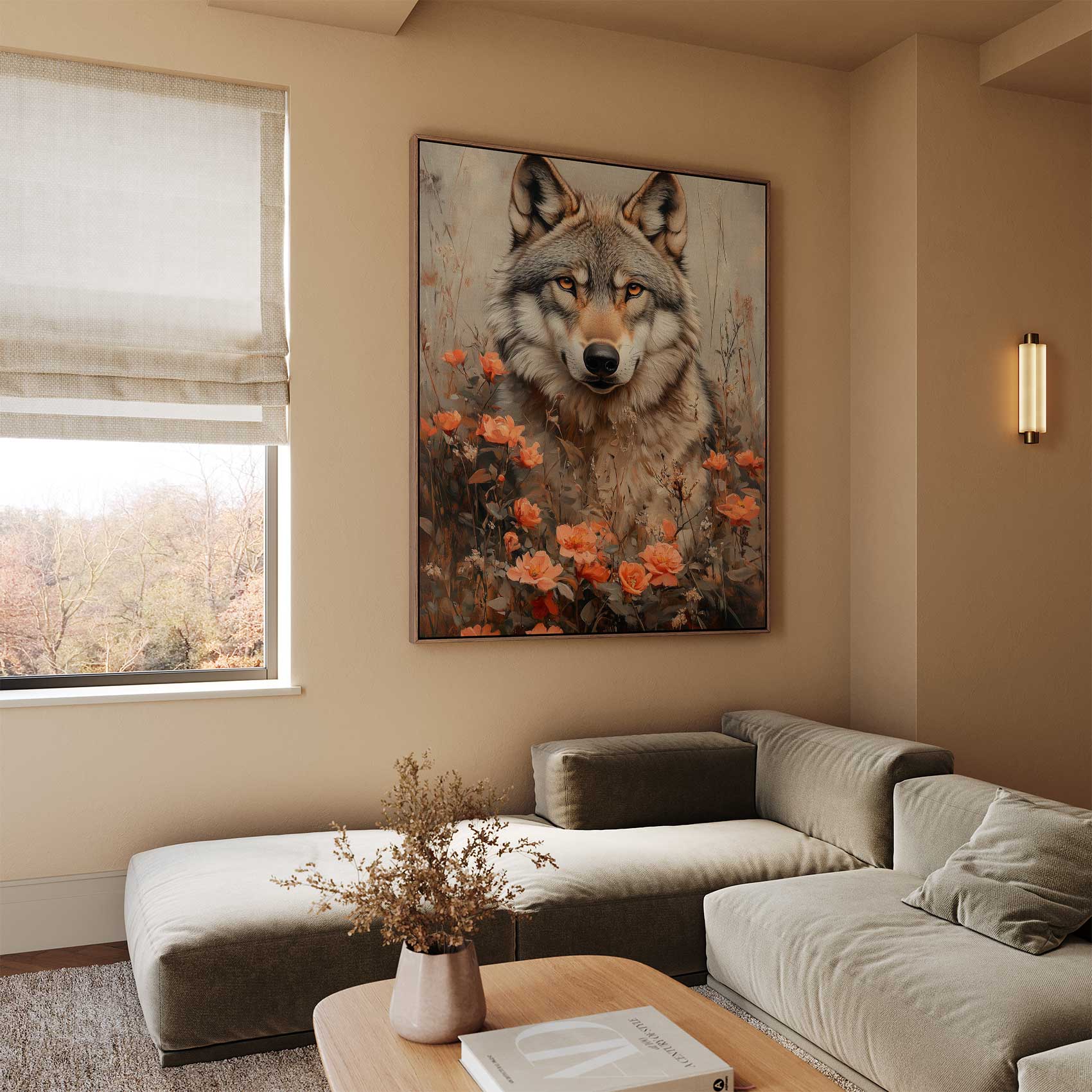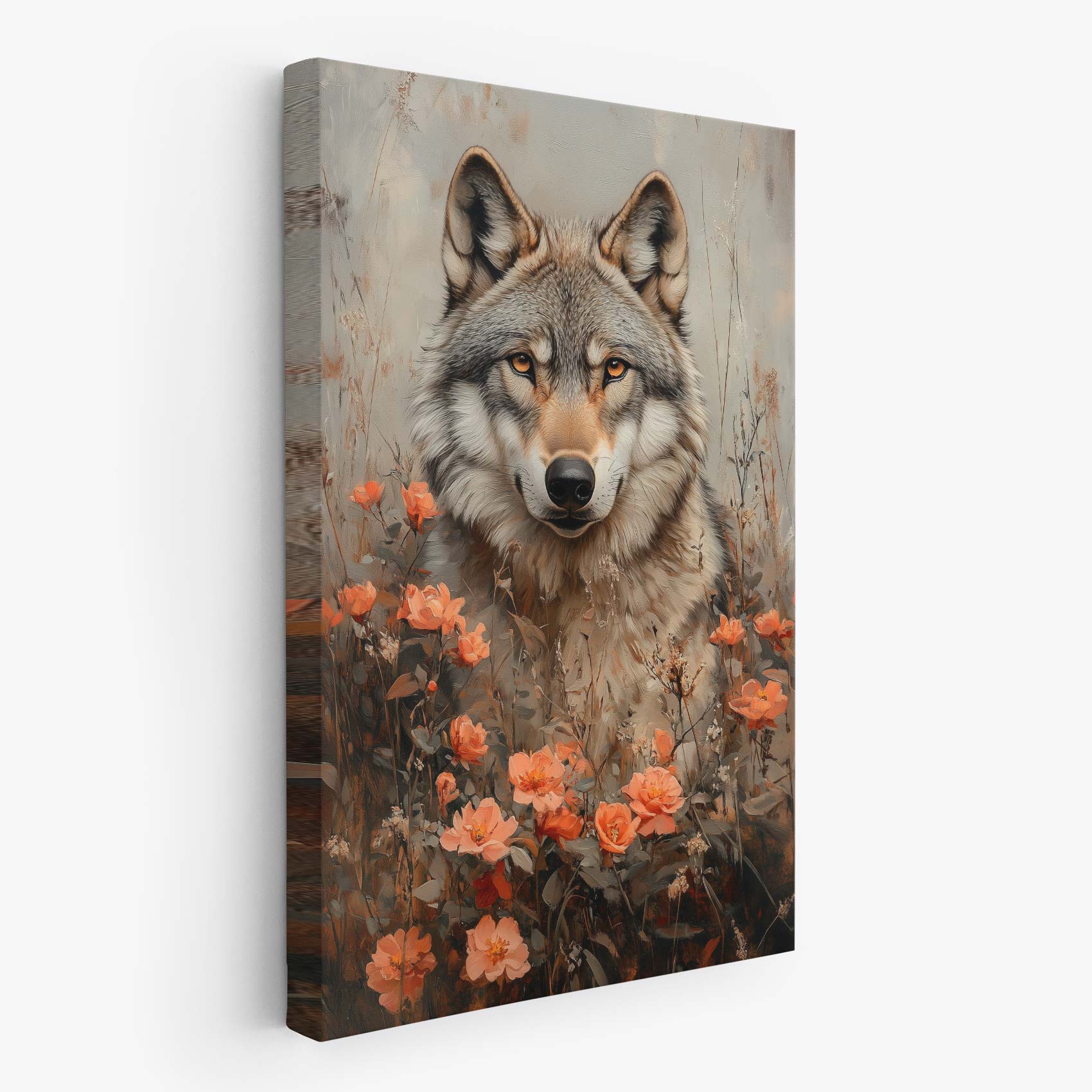 Wolf tussen oranje bloemen