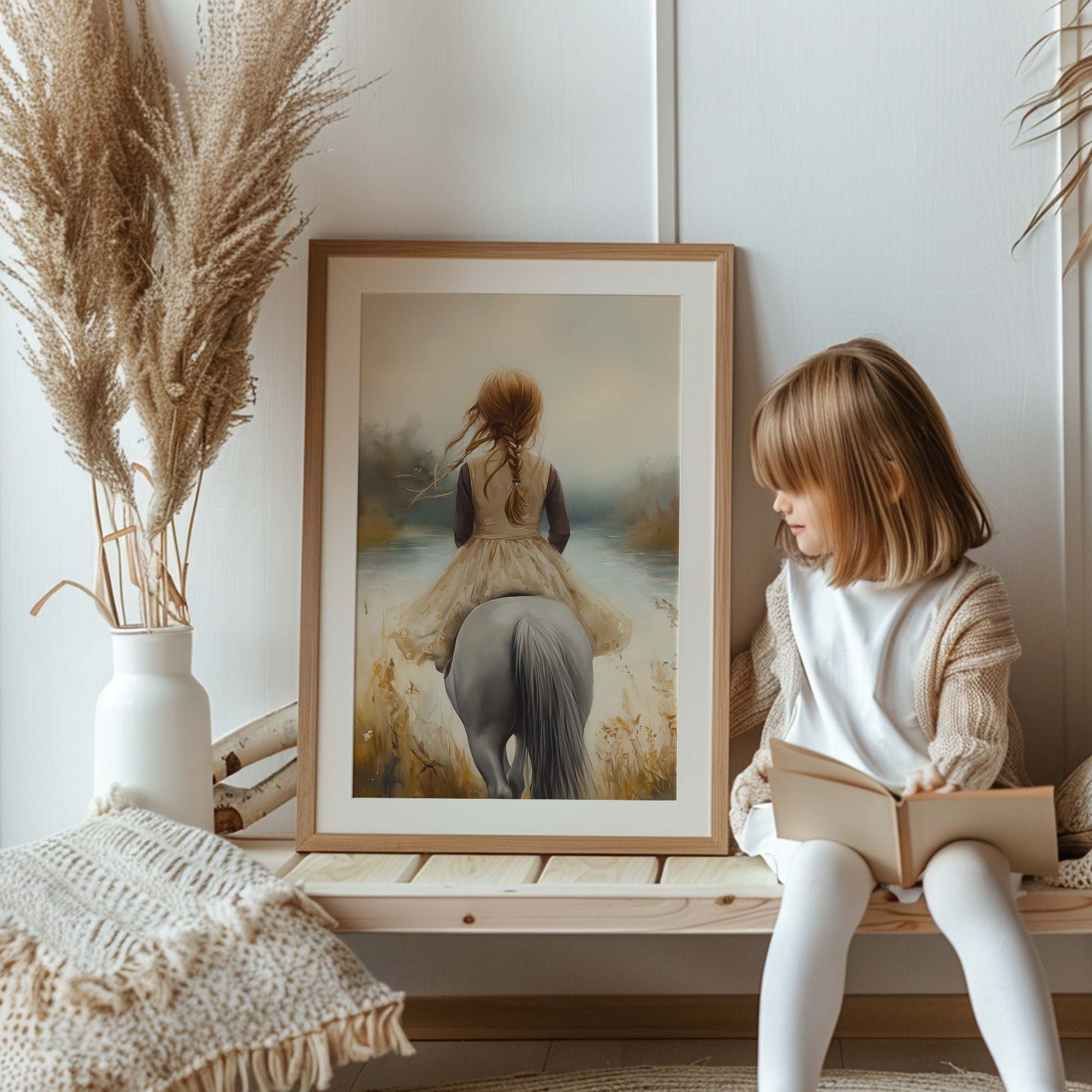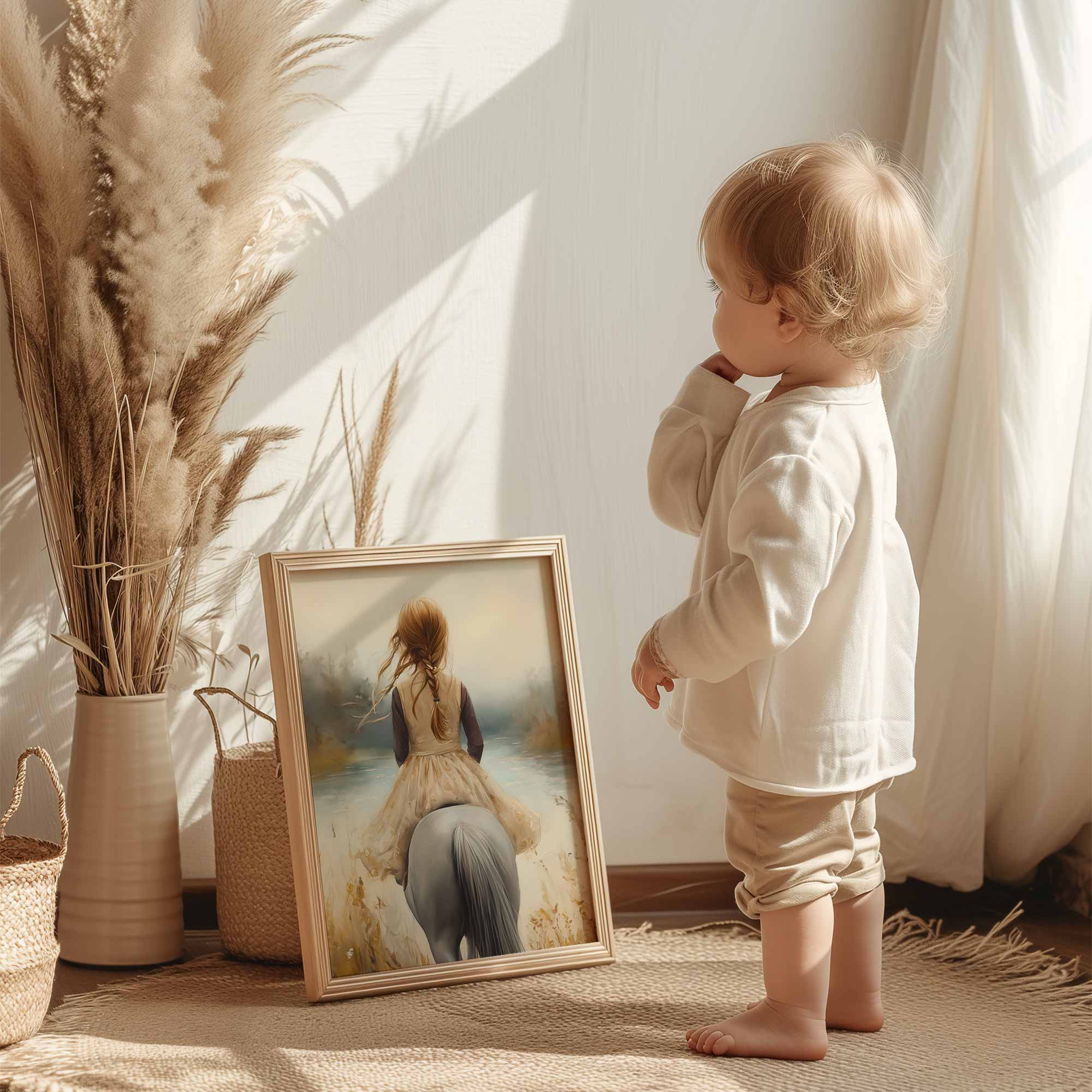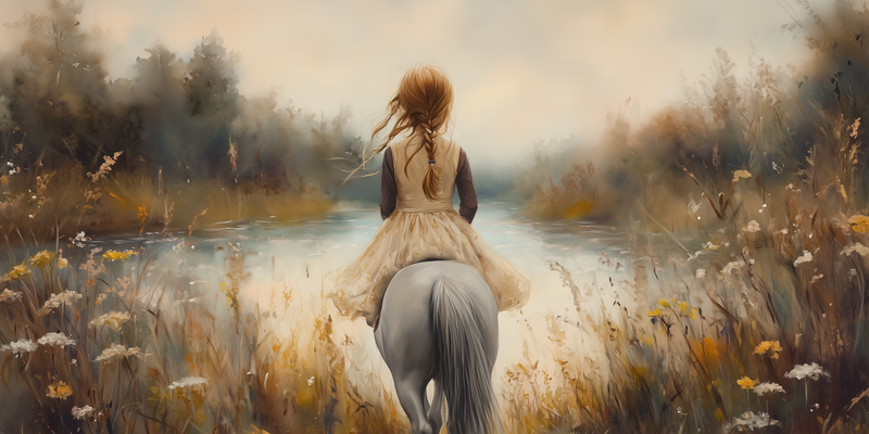 Zacht avontuur: Meisje te paard in bloemenveld