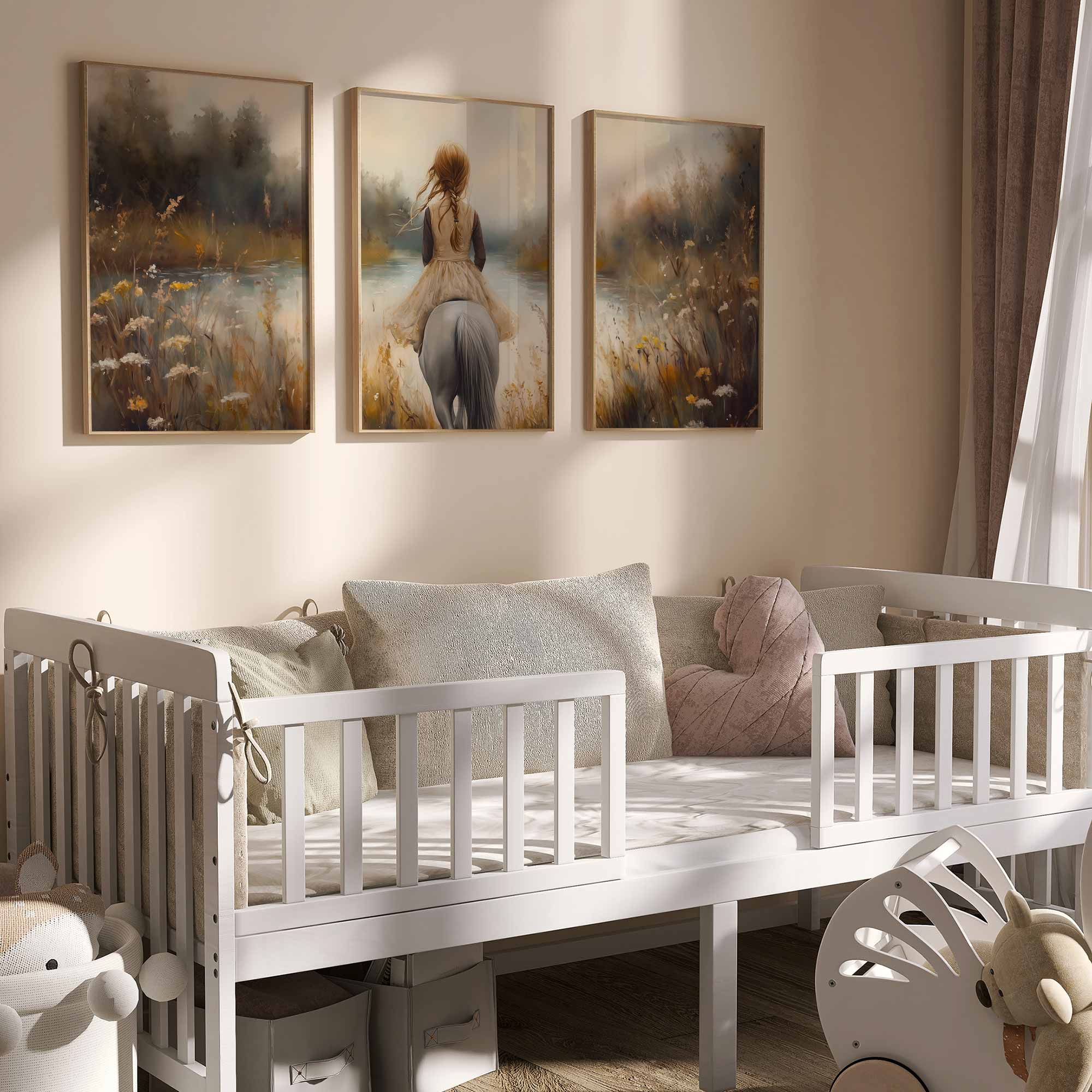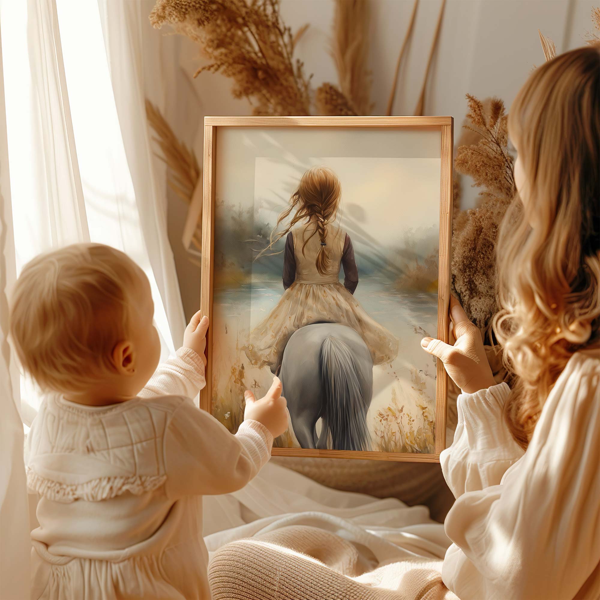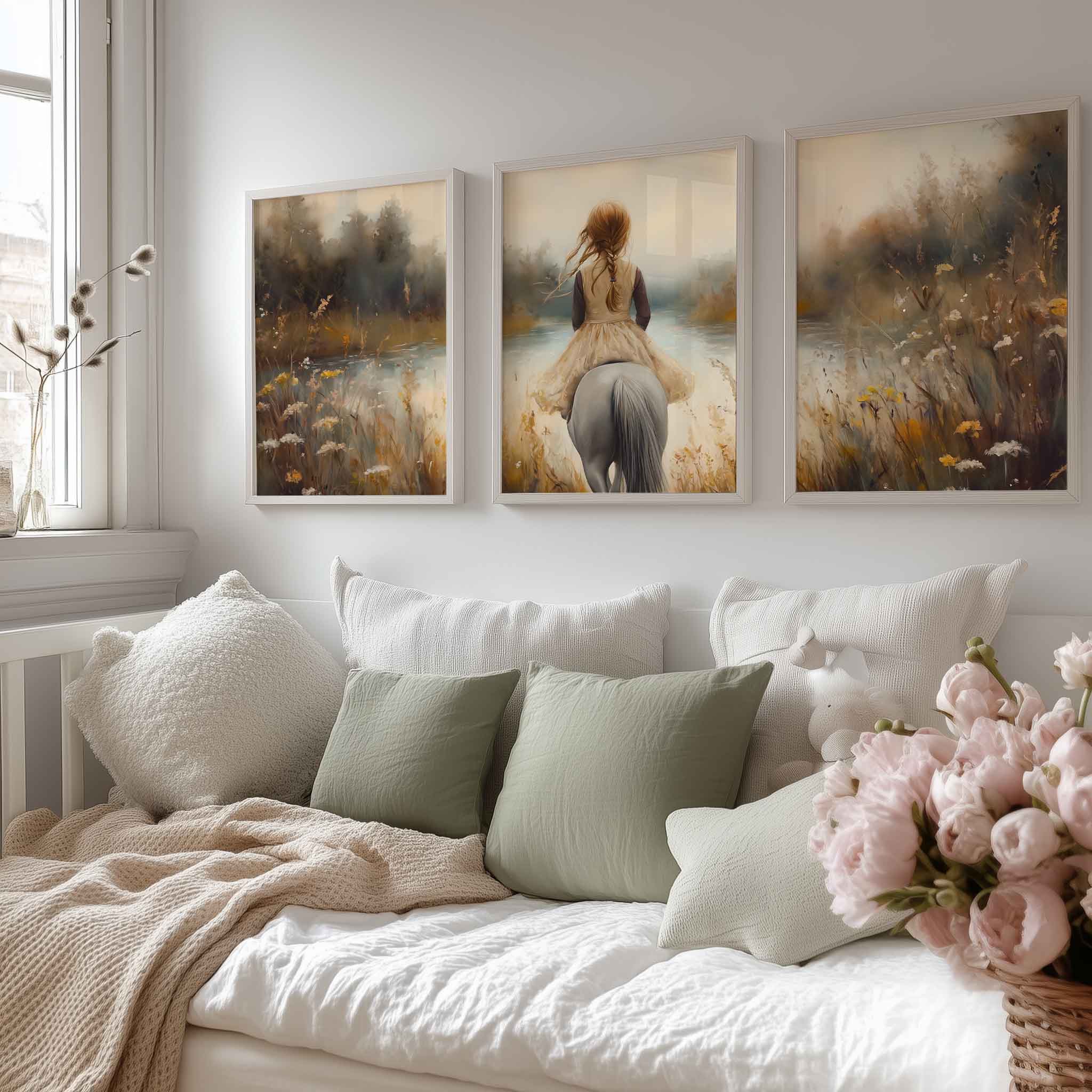 Zacht avontuur: Meisje te paard in bloemenveld