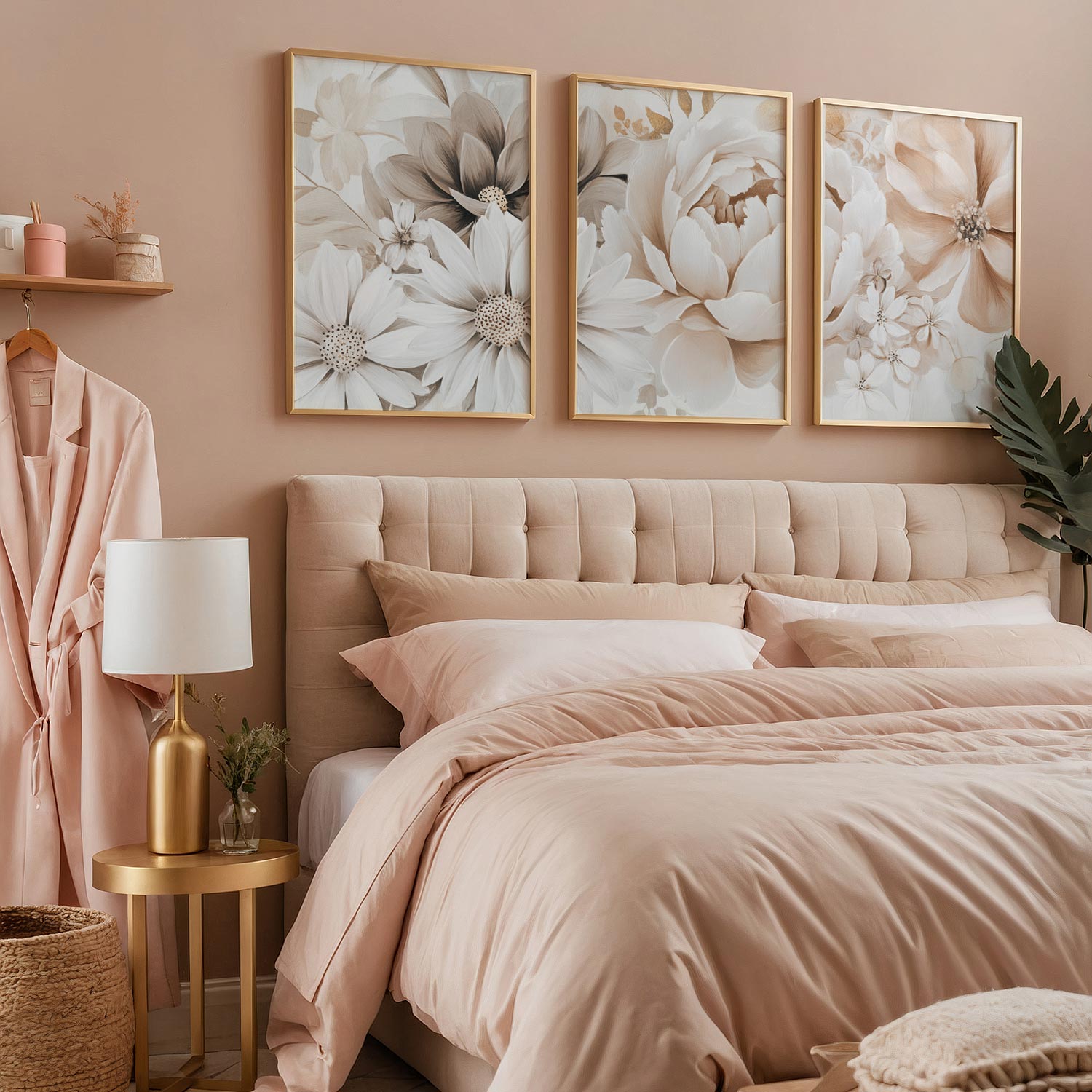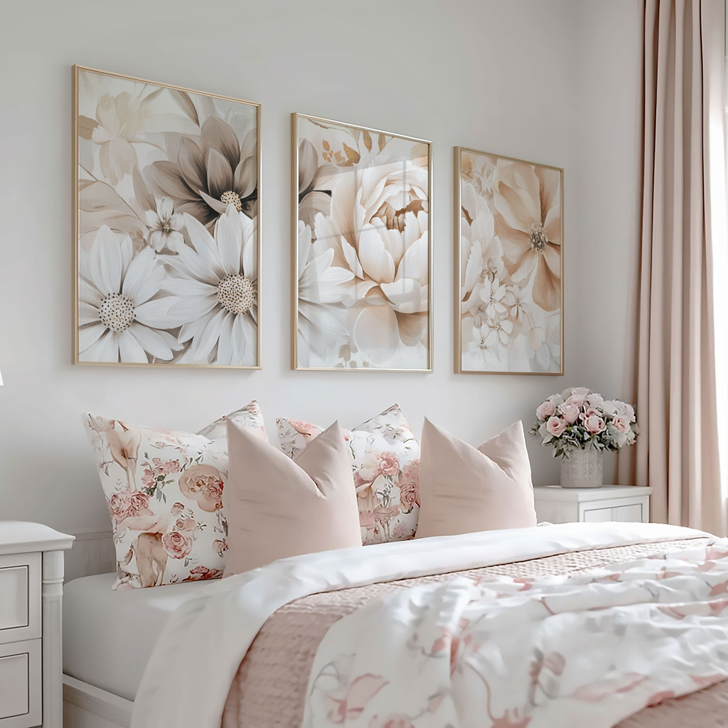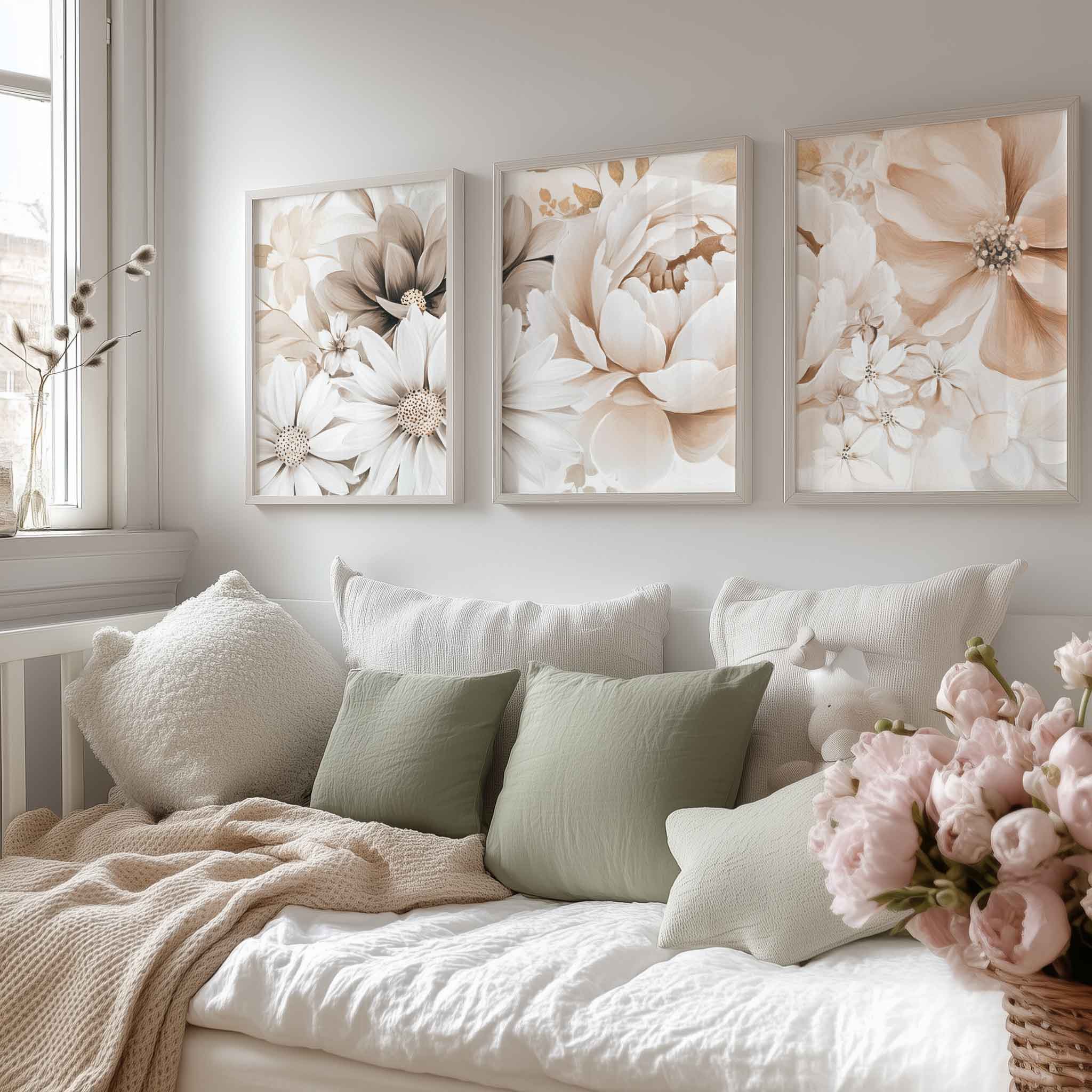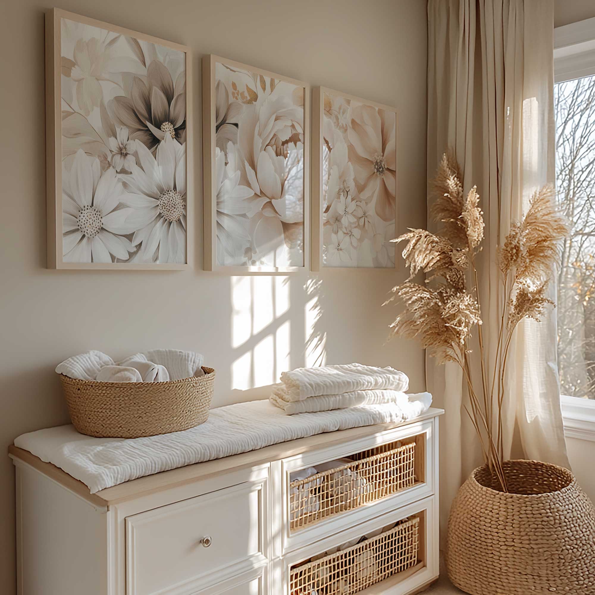 Zacht Bloemenballet: Stijlvolle Wanddecoratie in Neutrale Tinten