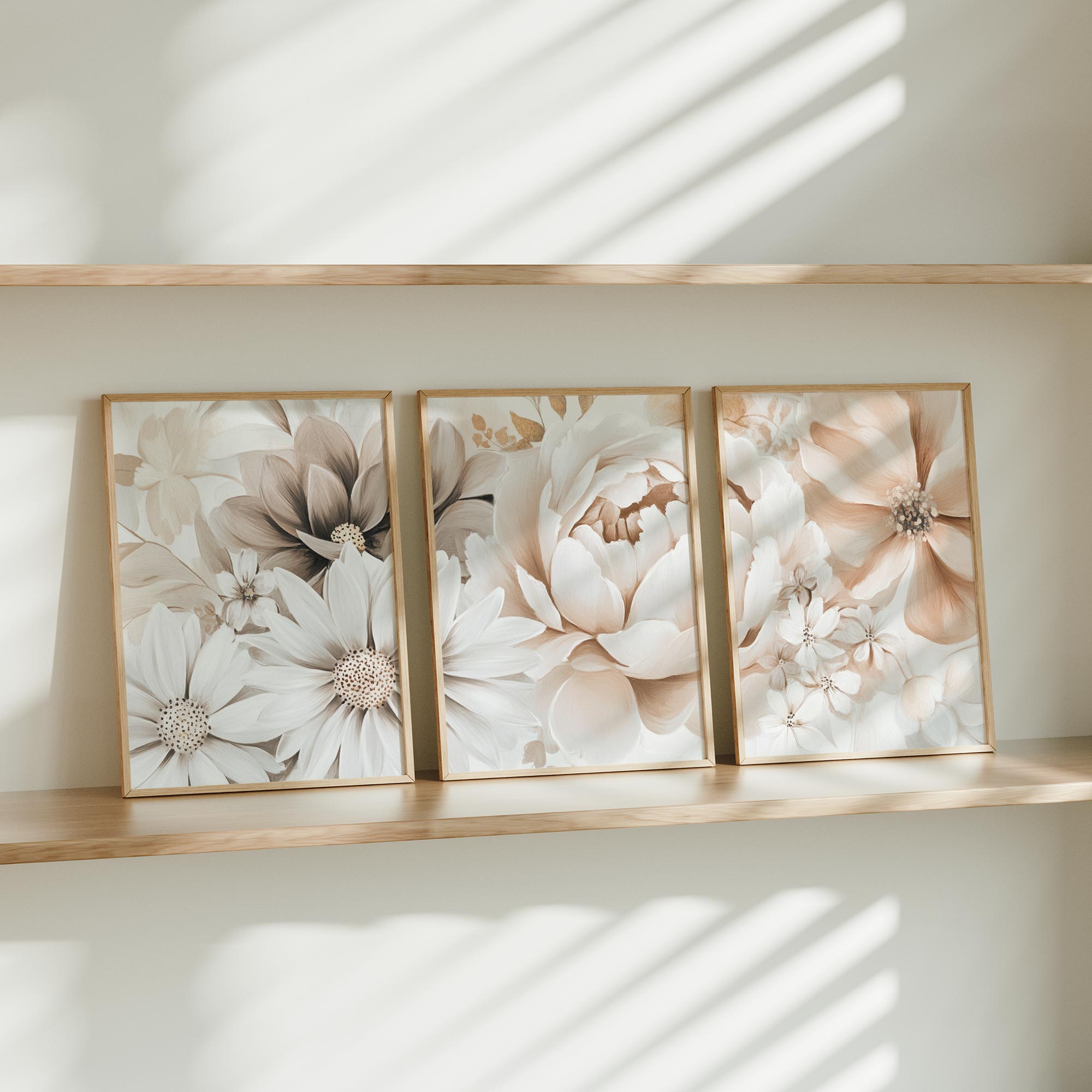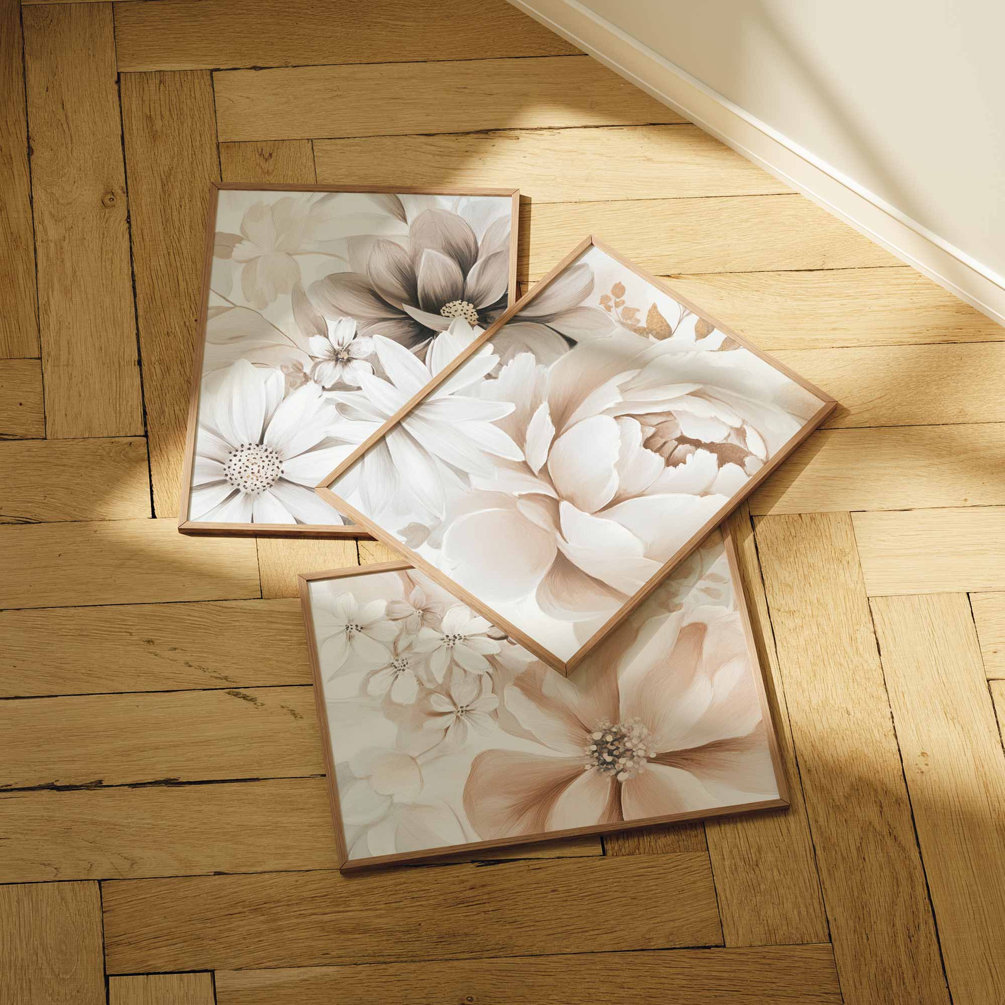 Terug naar collectie Posters Zacht Bloemenballet: Stijlvolle Wanddecoratie in Neutrale Tinten