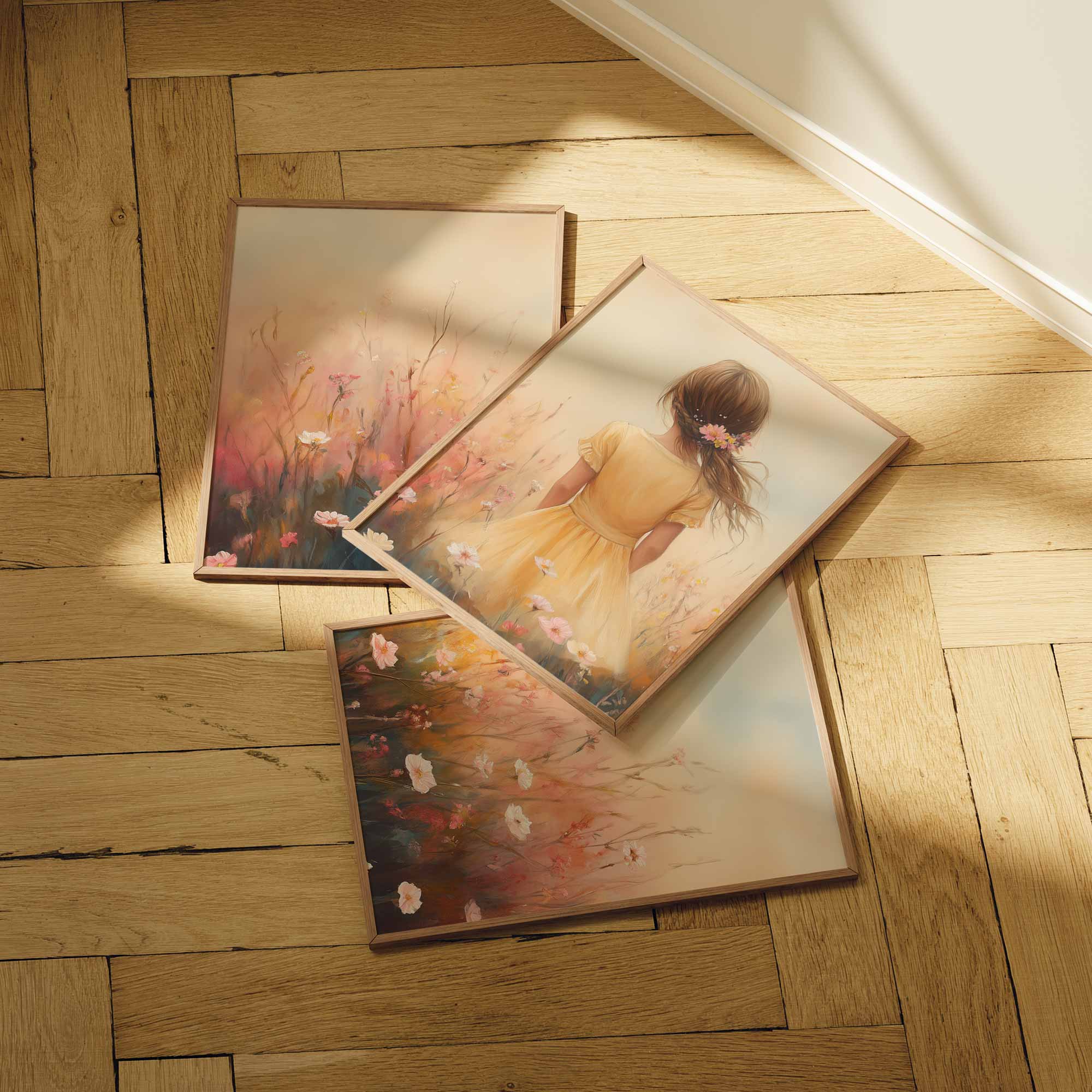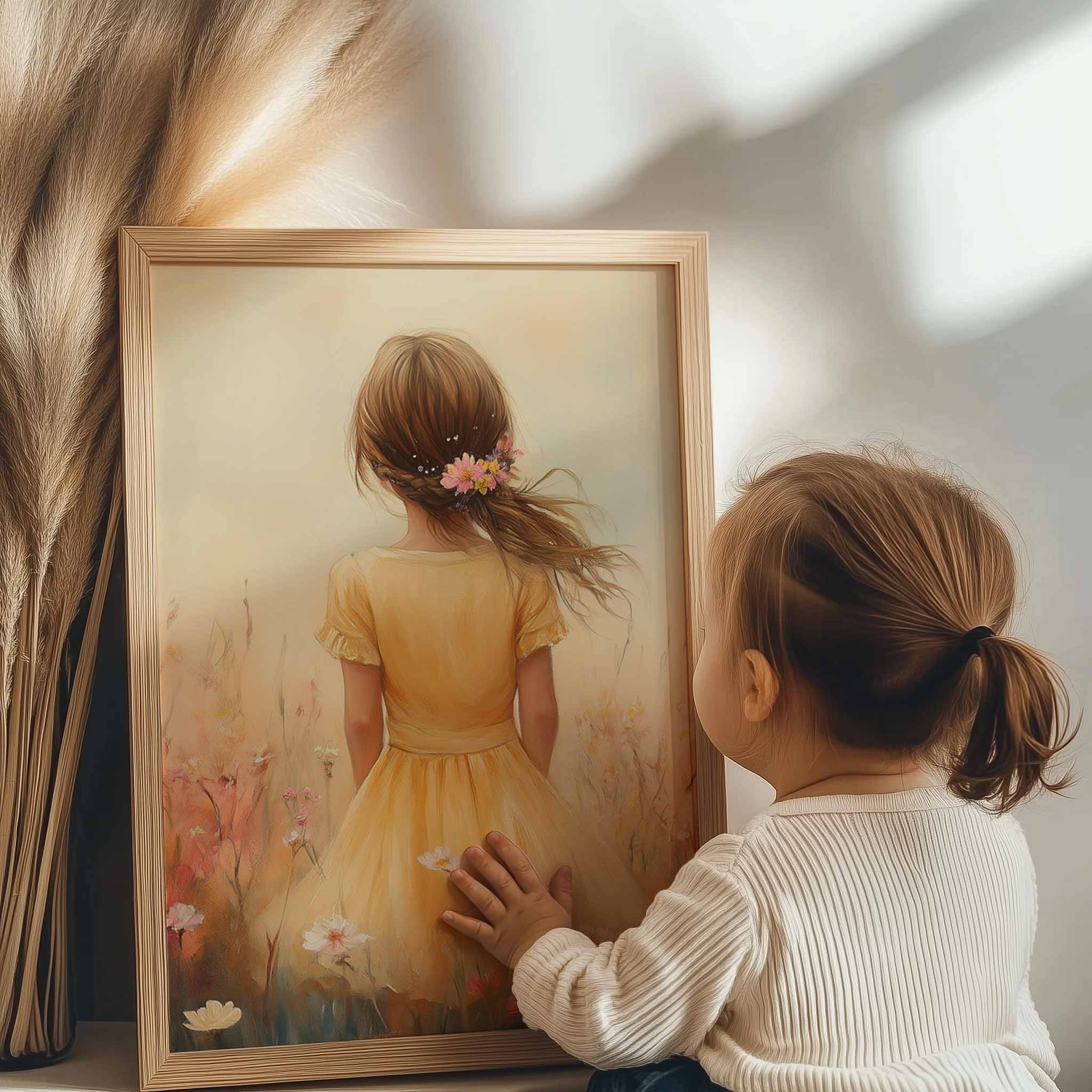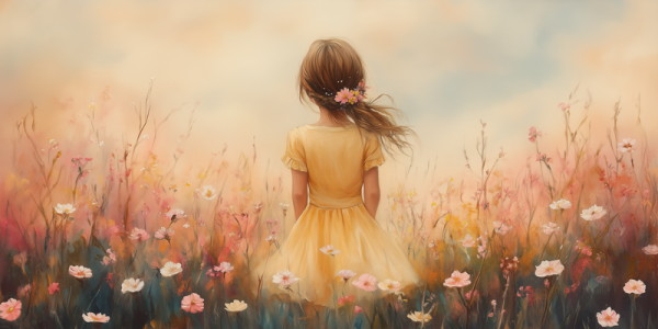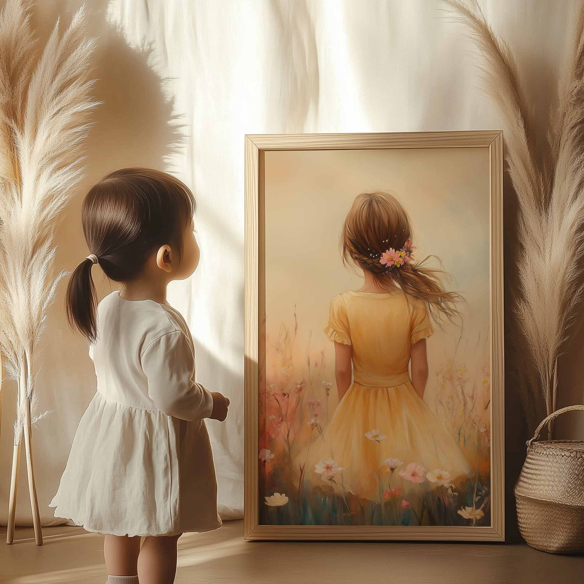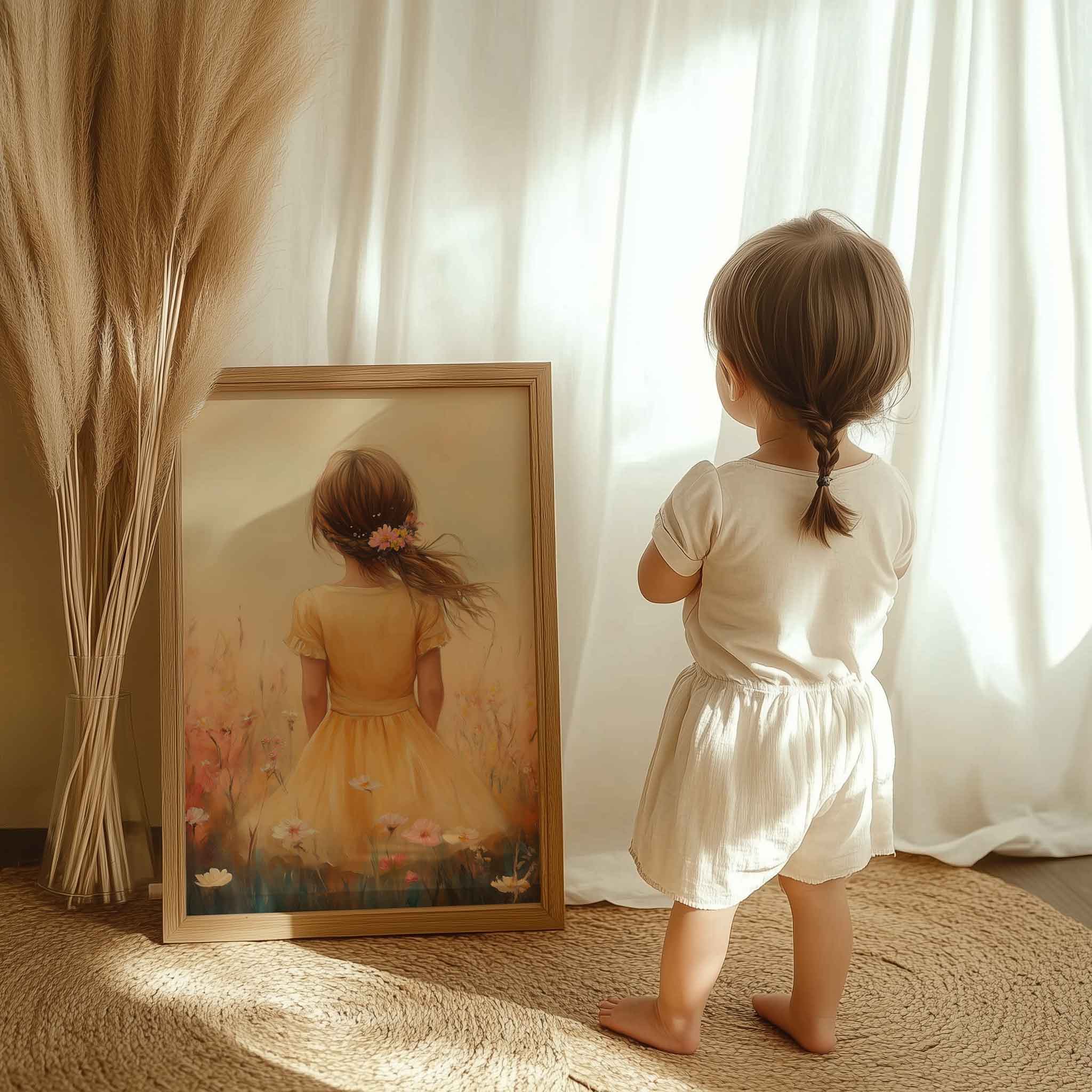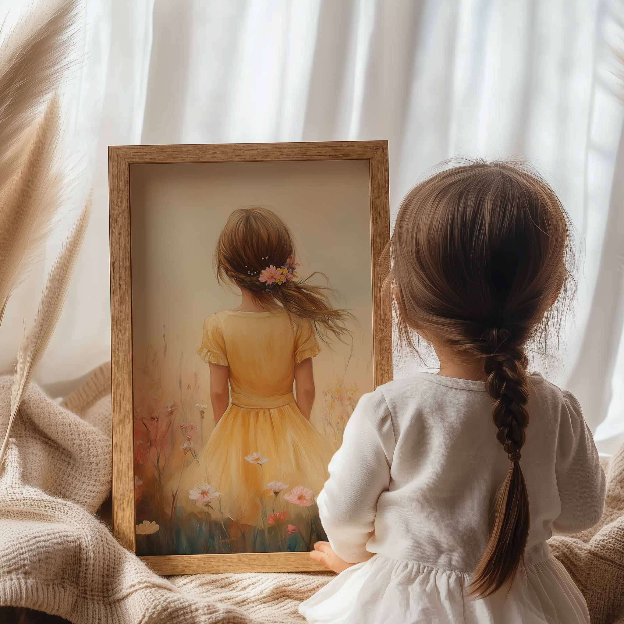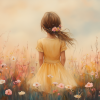 Zacht bloemenmeisje in pastelgeel jurkje
