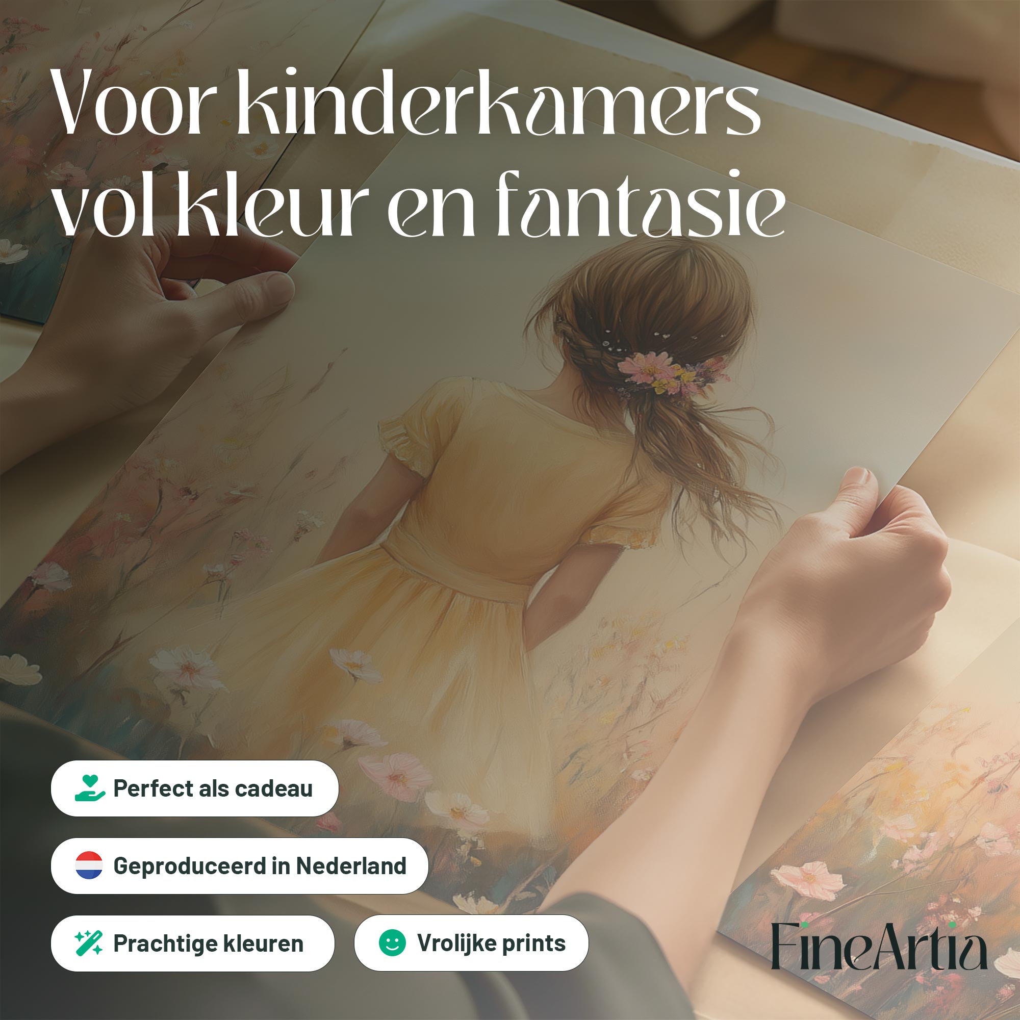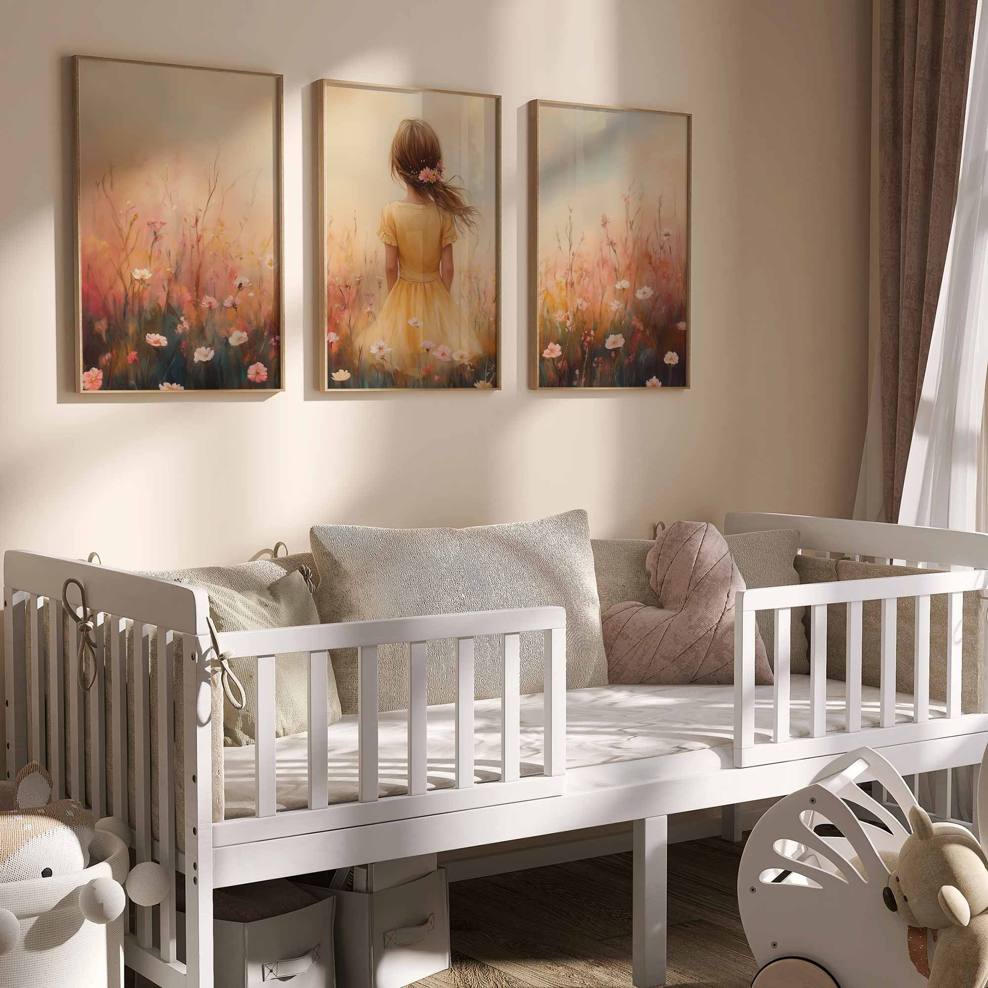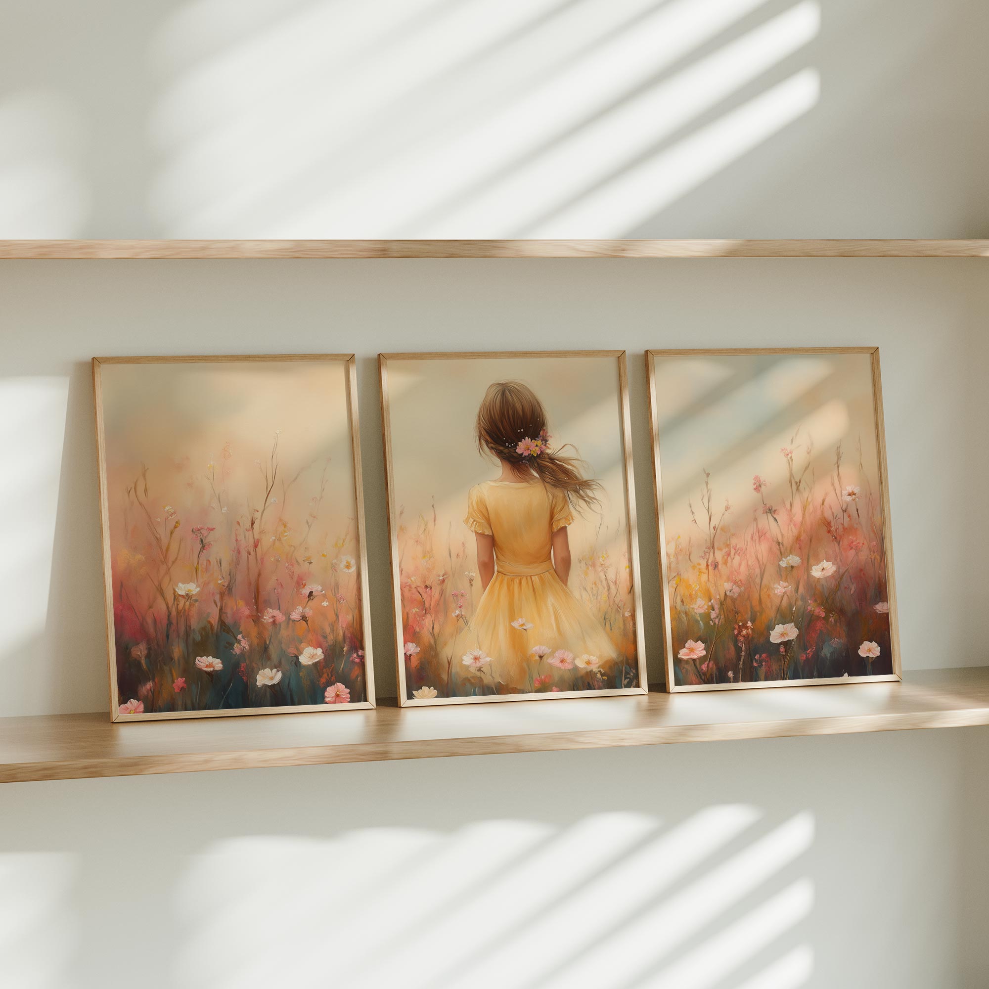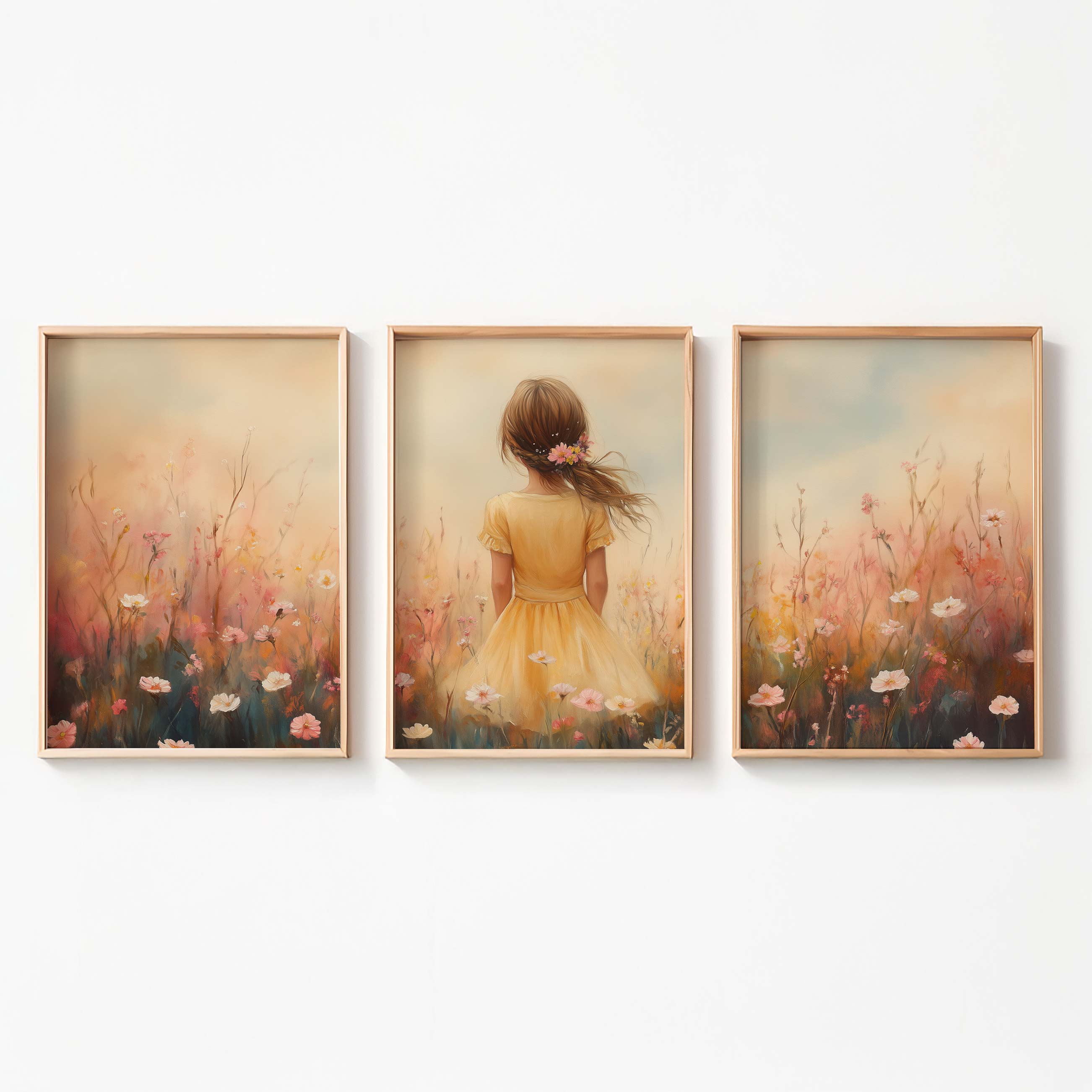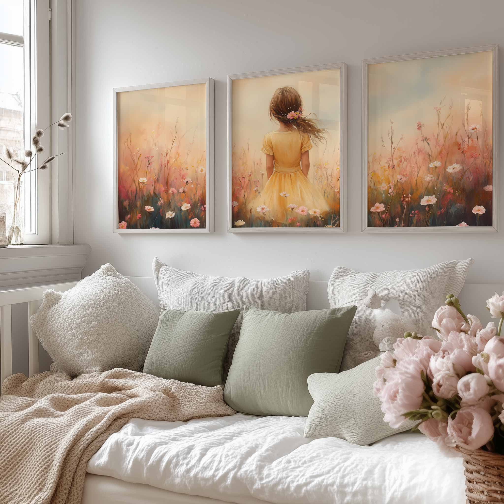 Zacht bloemenmeisje in pastelgeel jurkje