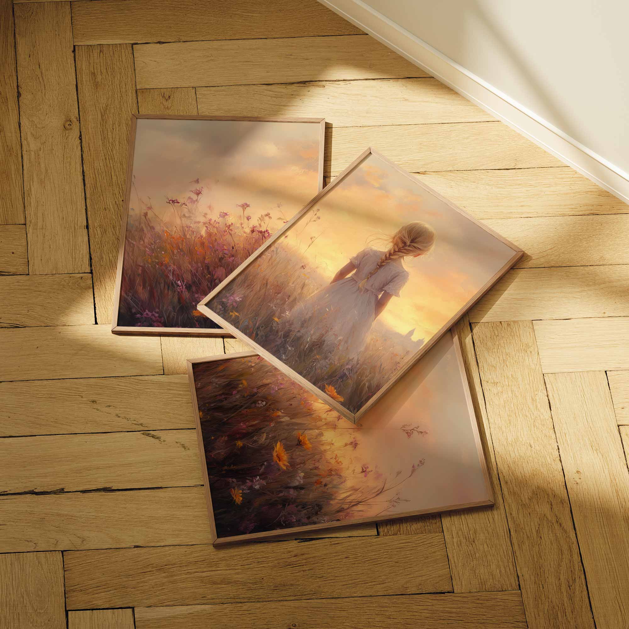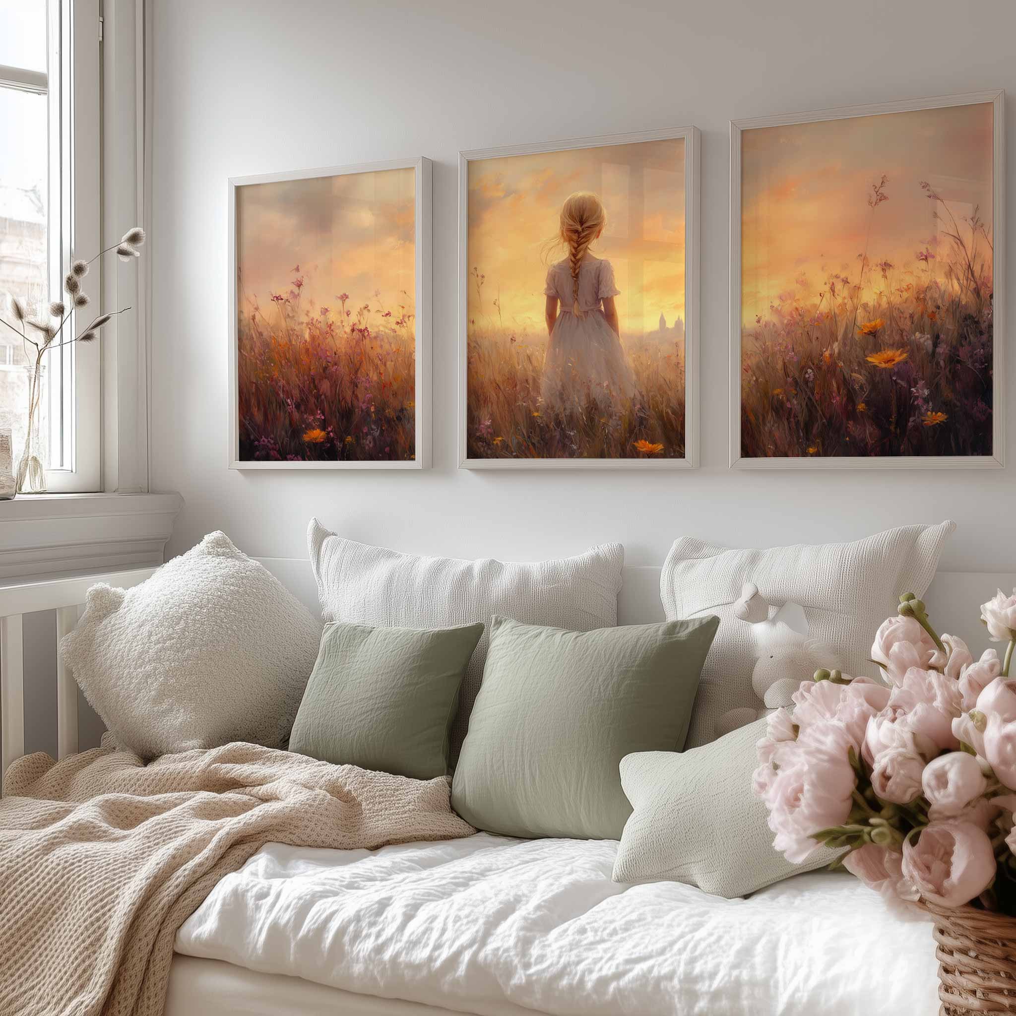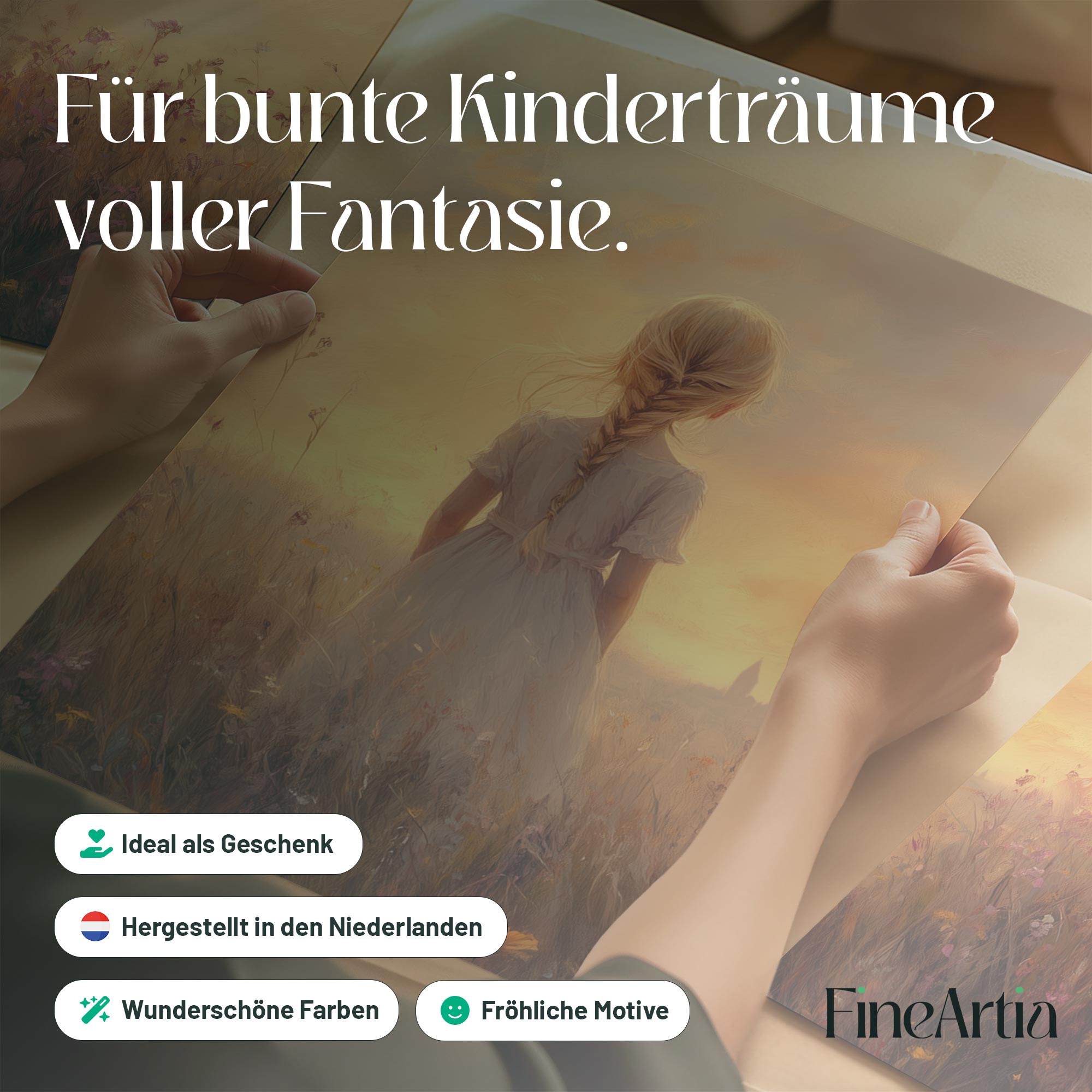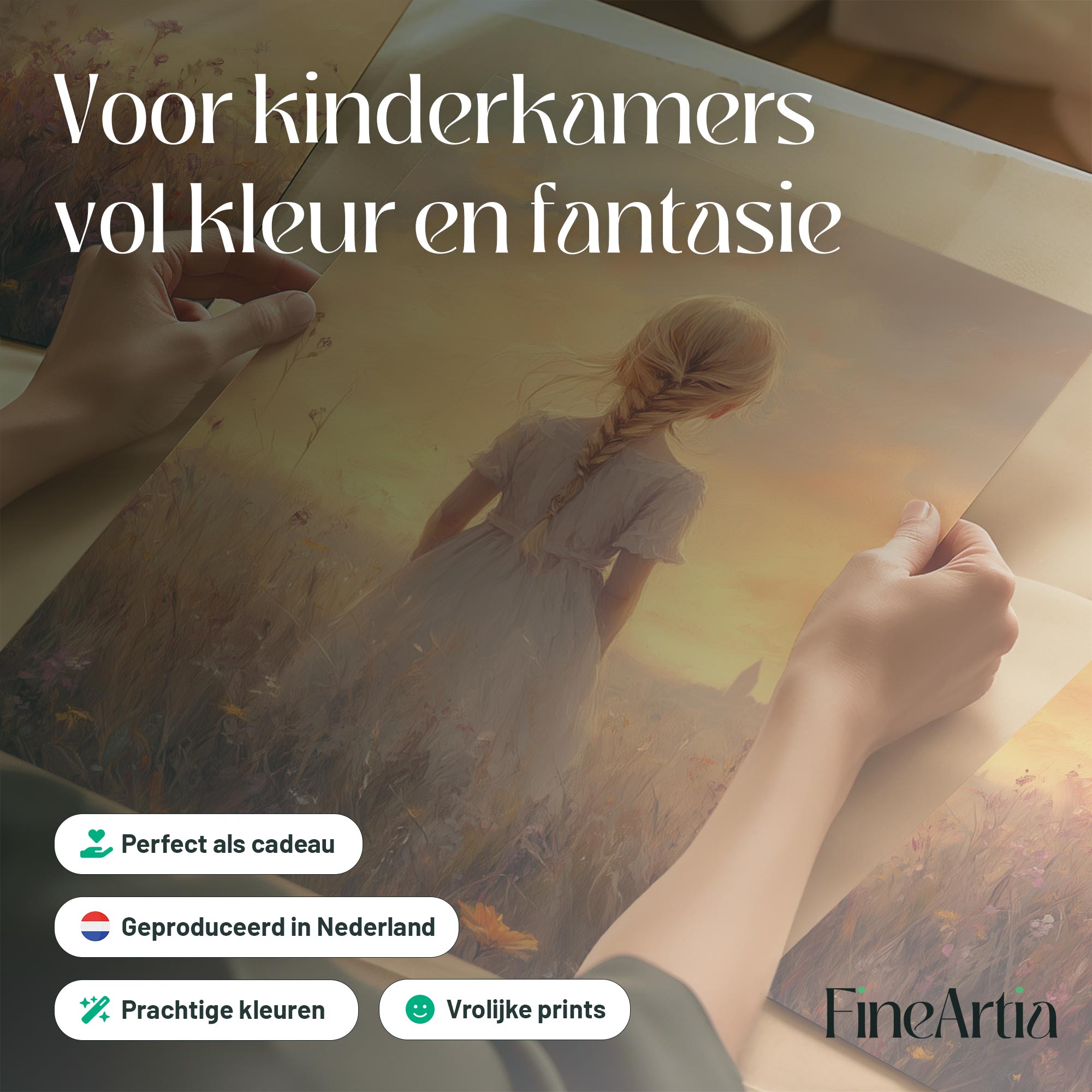 Terug naar collectie Posters Zacht bloemenveld met dromend meisje in wit