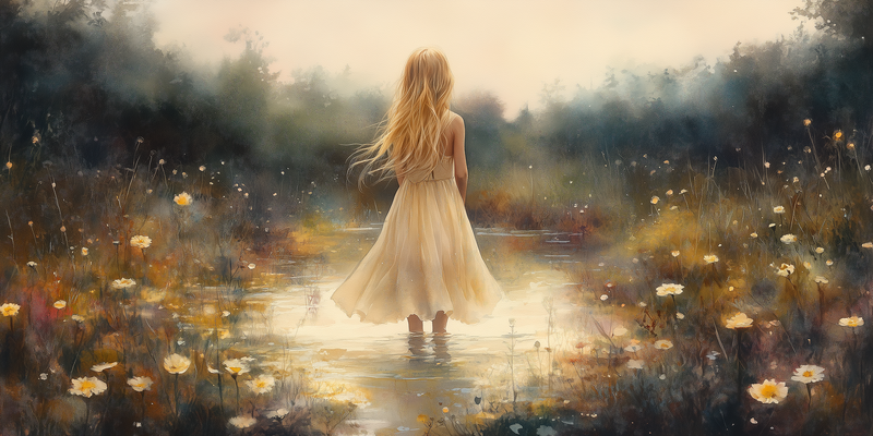 Zacht Dromen in Bloemenveld – Meisje in Pastel