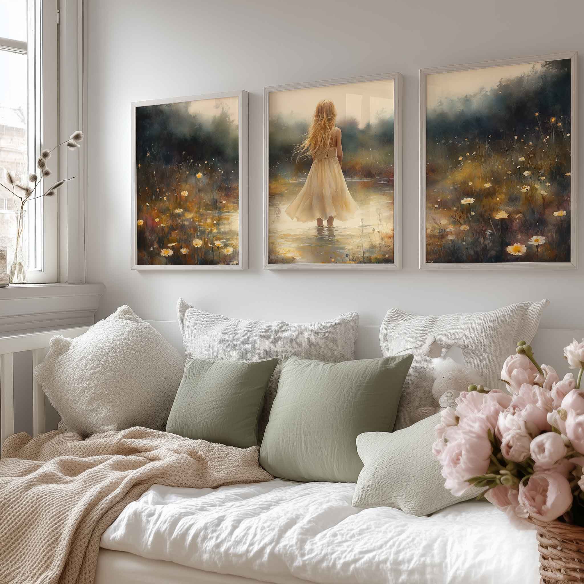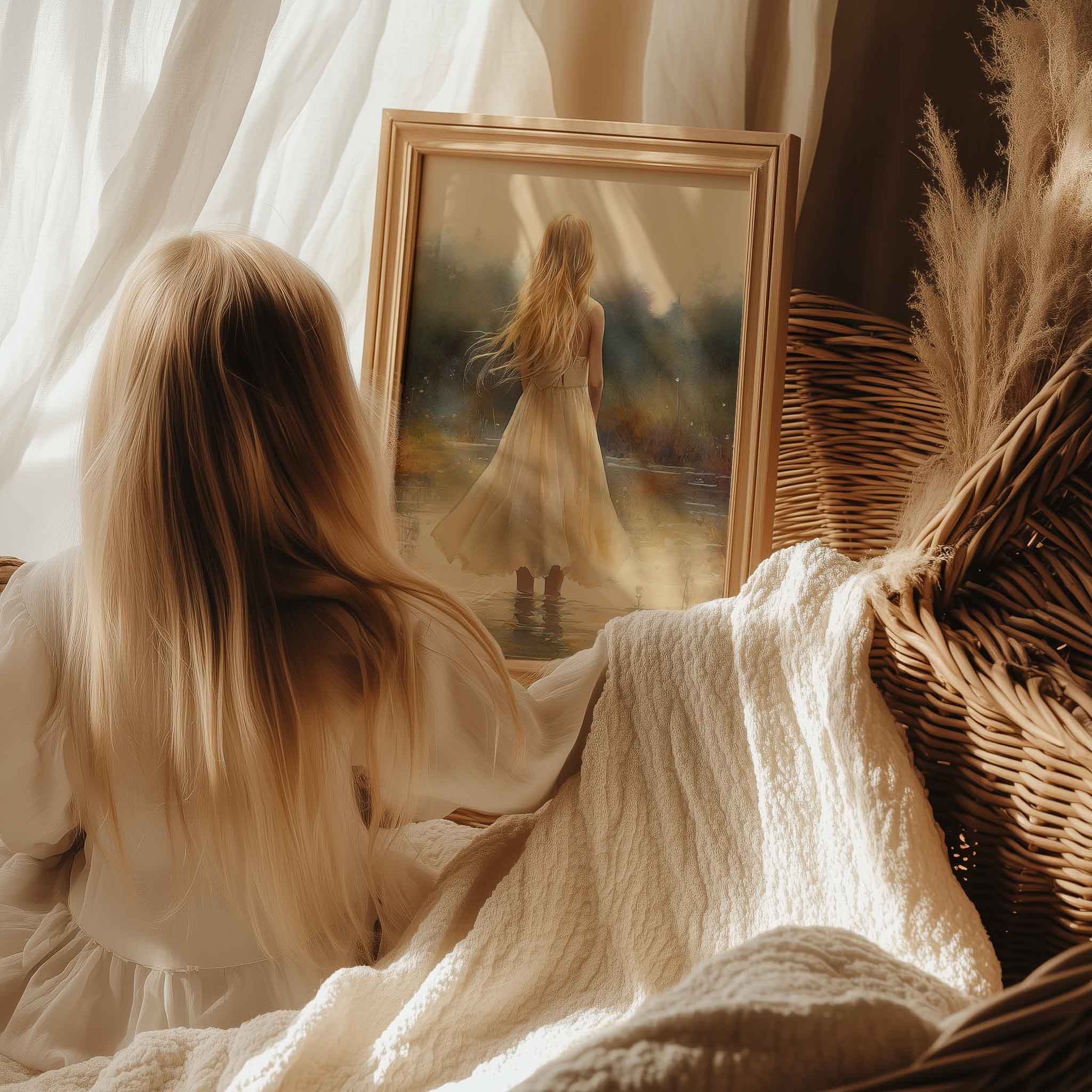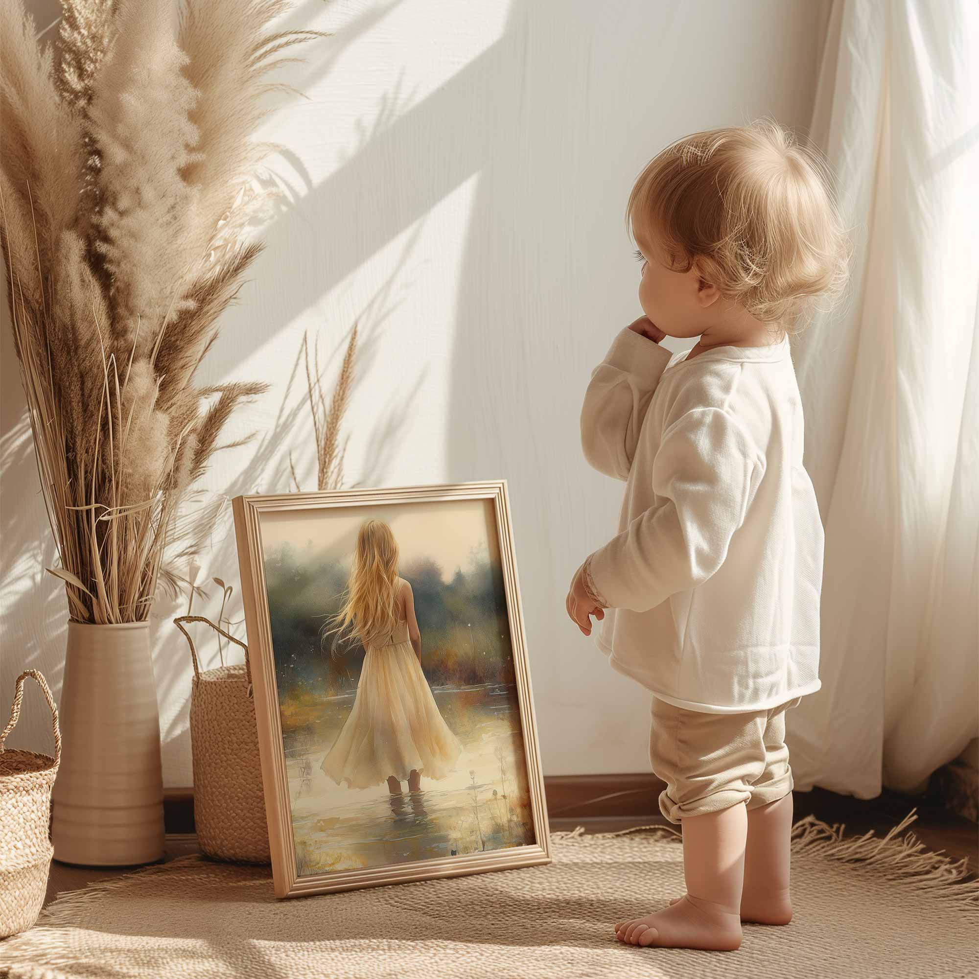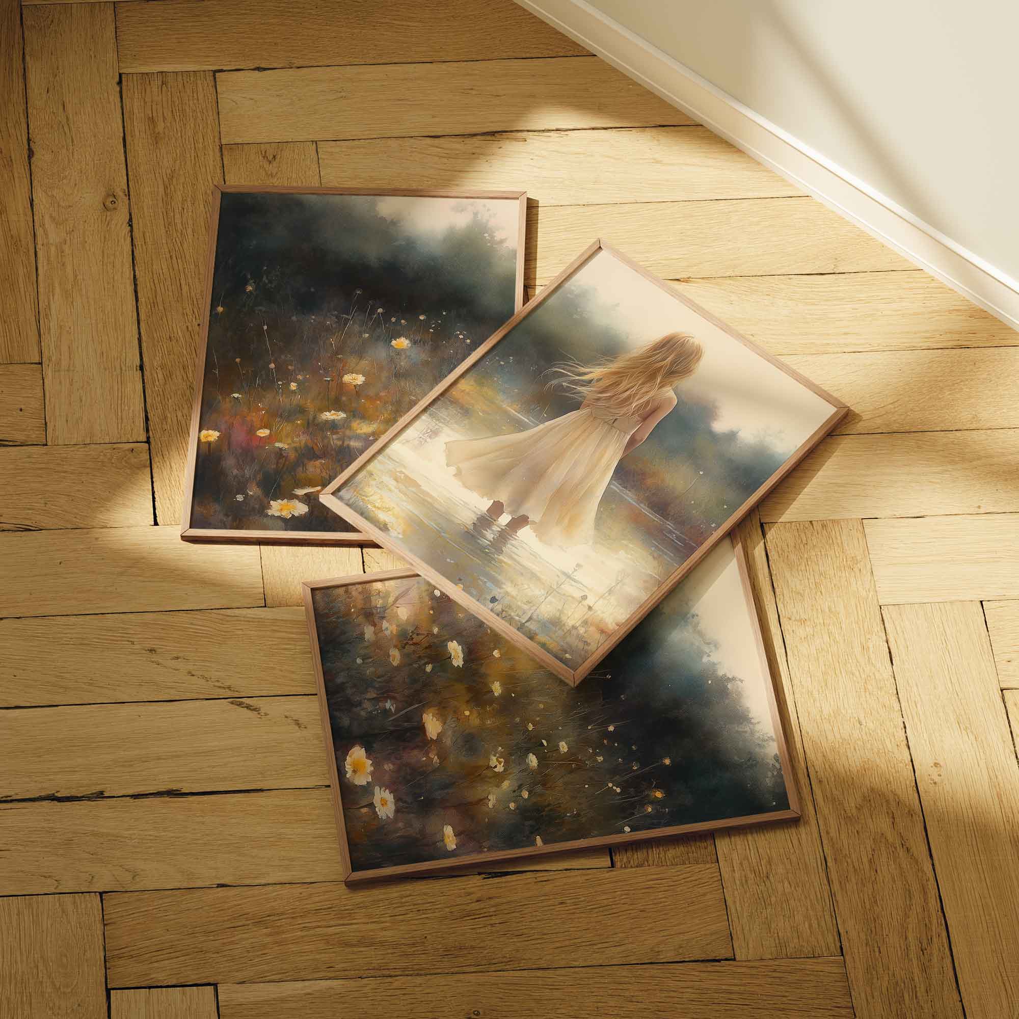Terug naar collectie Posters Zacht Dromen in Bloemenveld – Meisje in Pastel