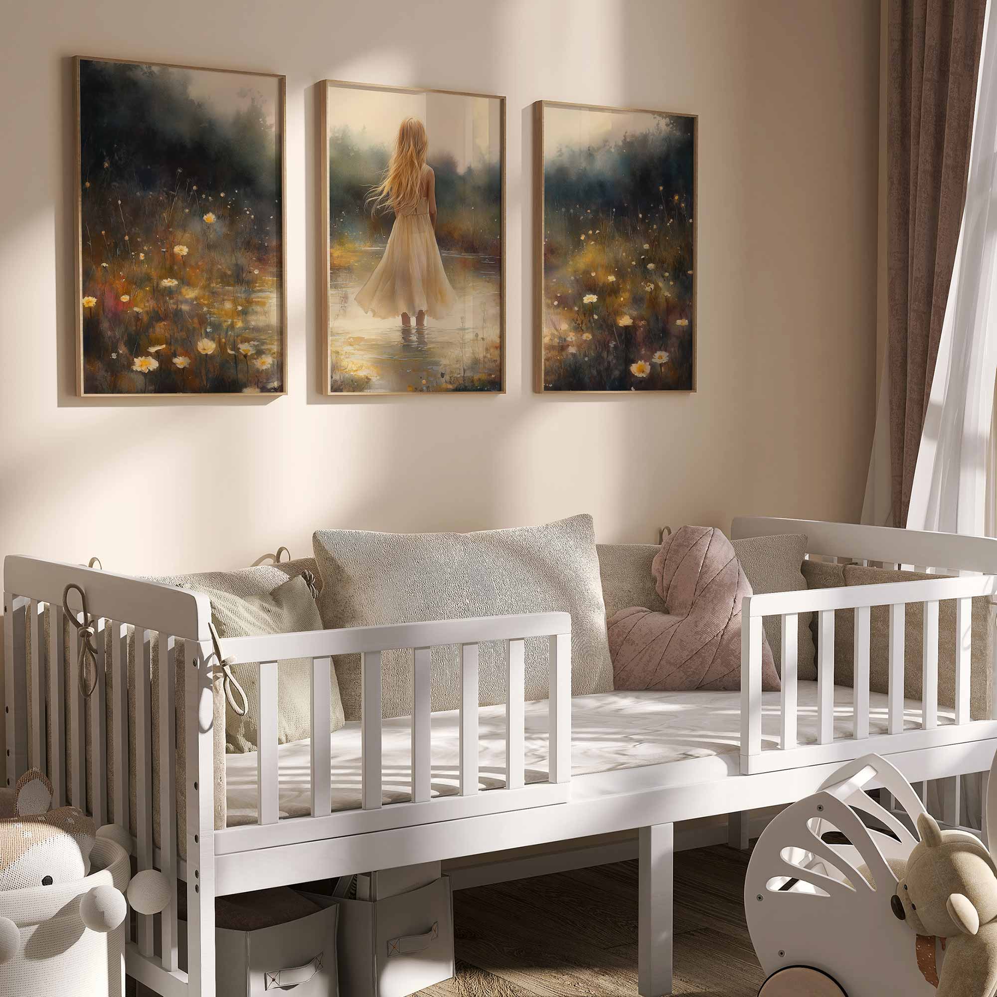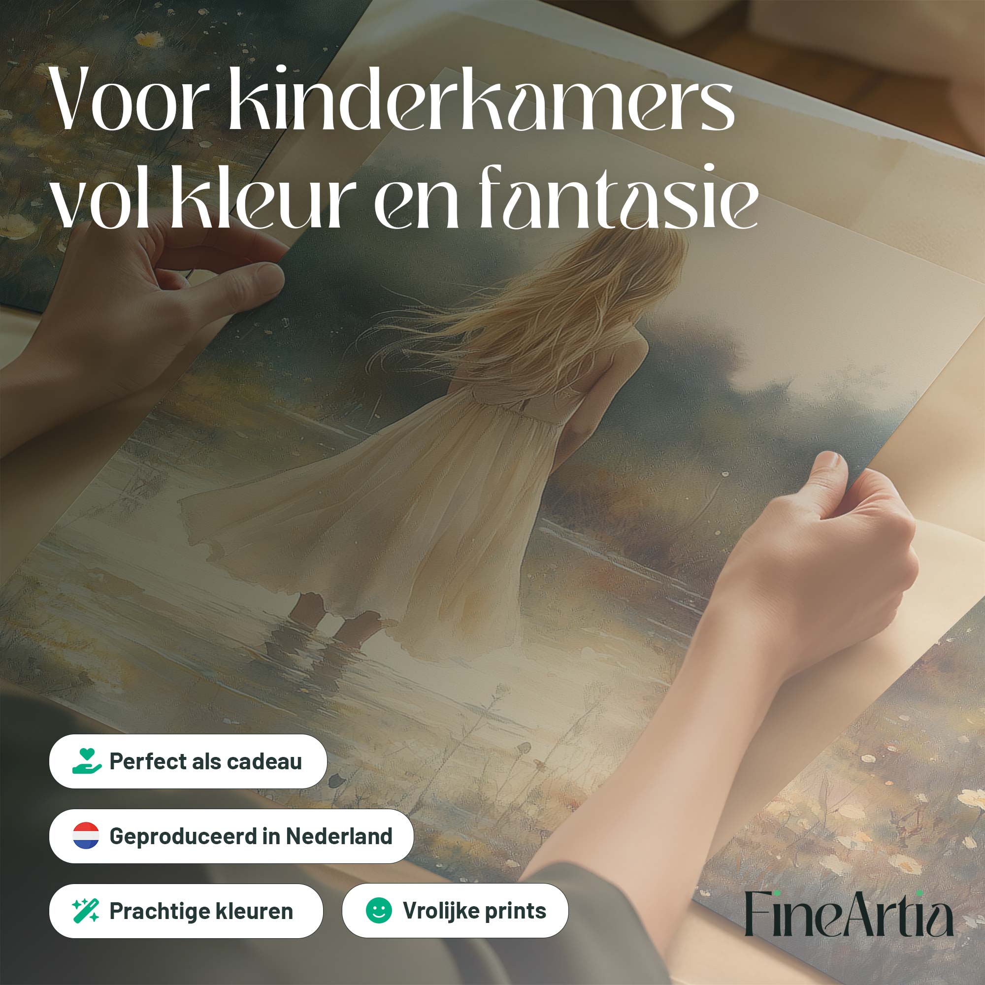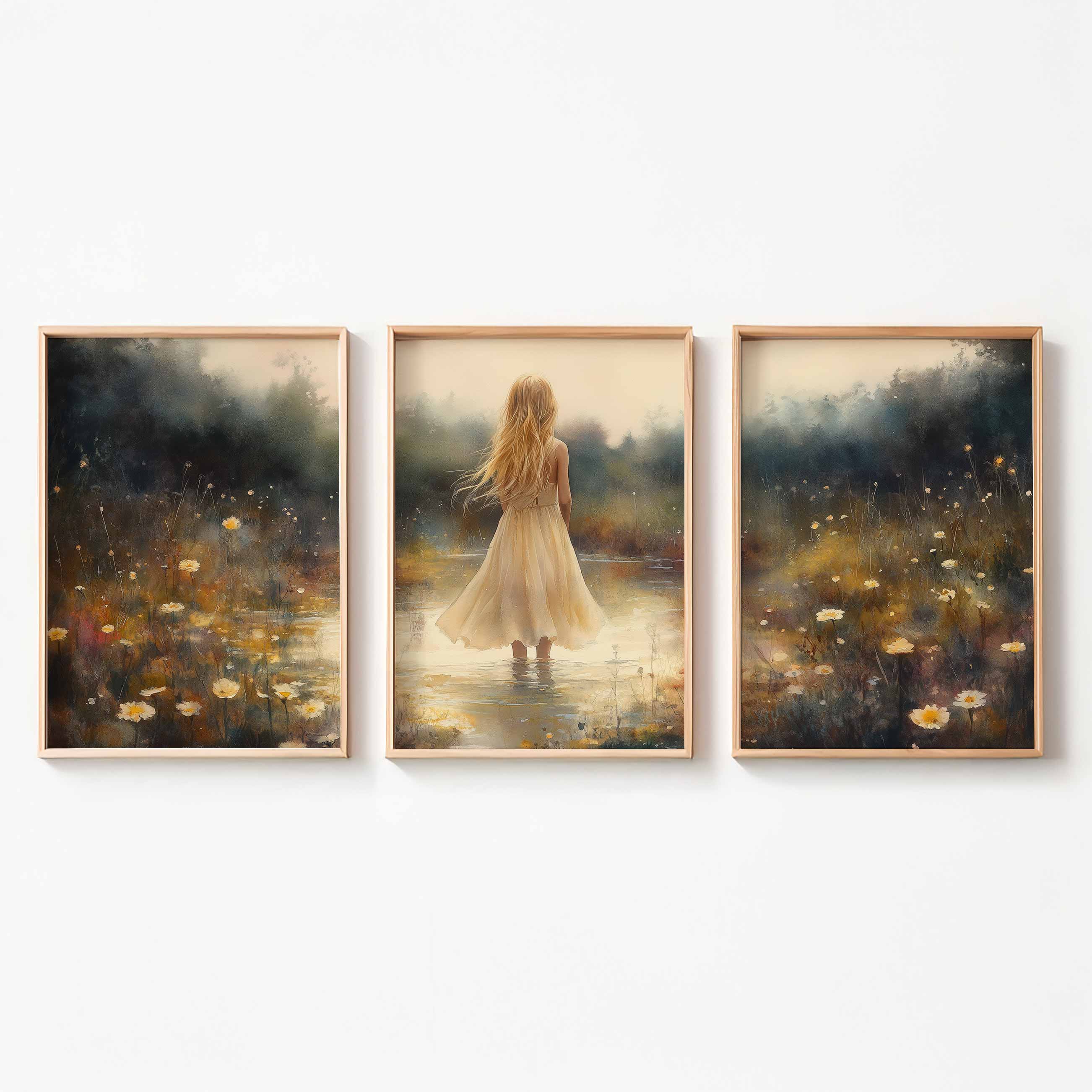 Terug naar collectie Posters Zacht Dromen in Bloemenveld – Meisje in Pastel