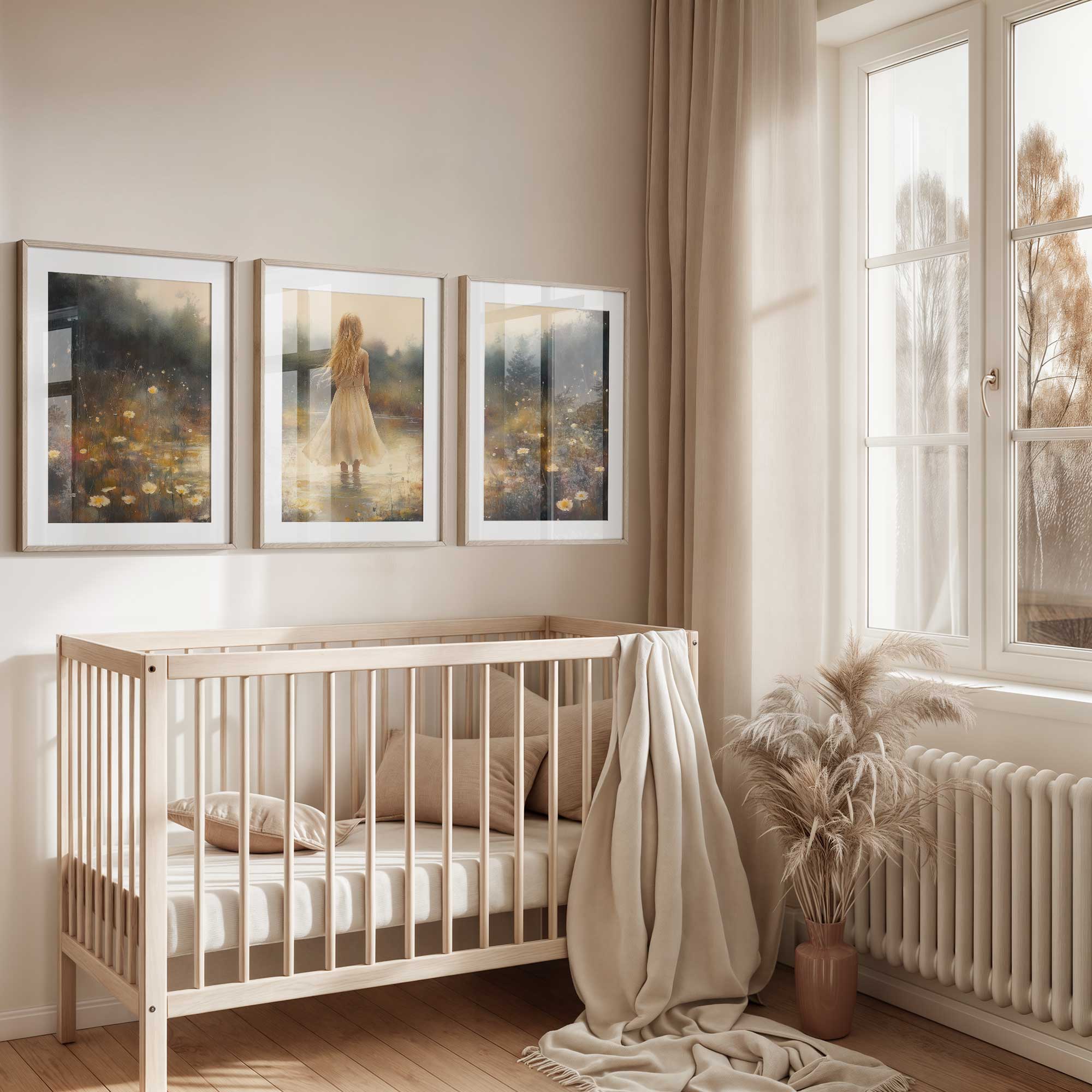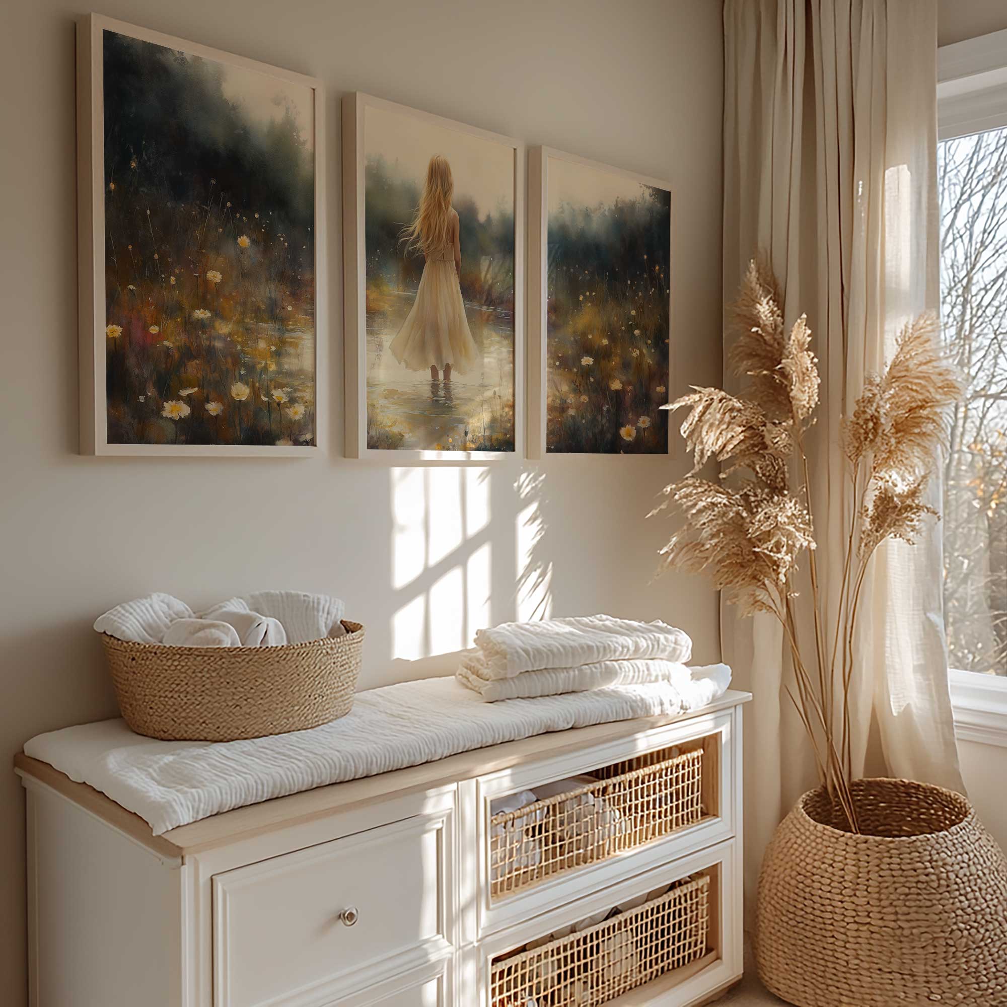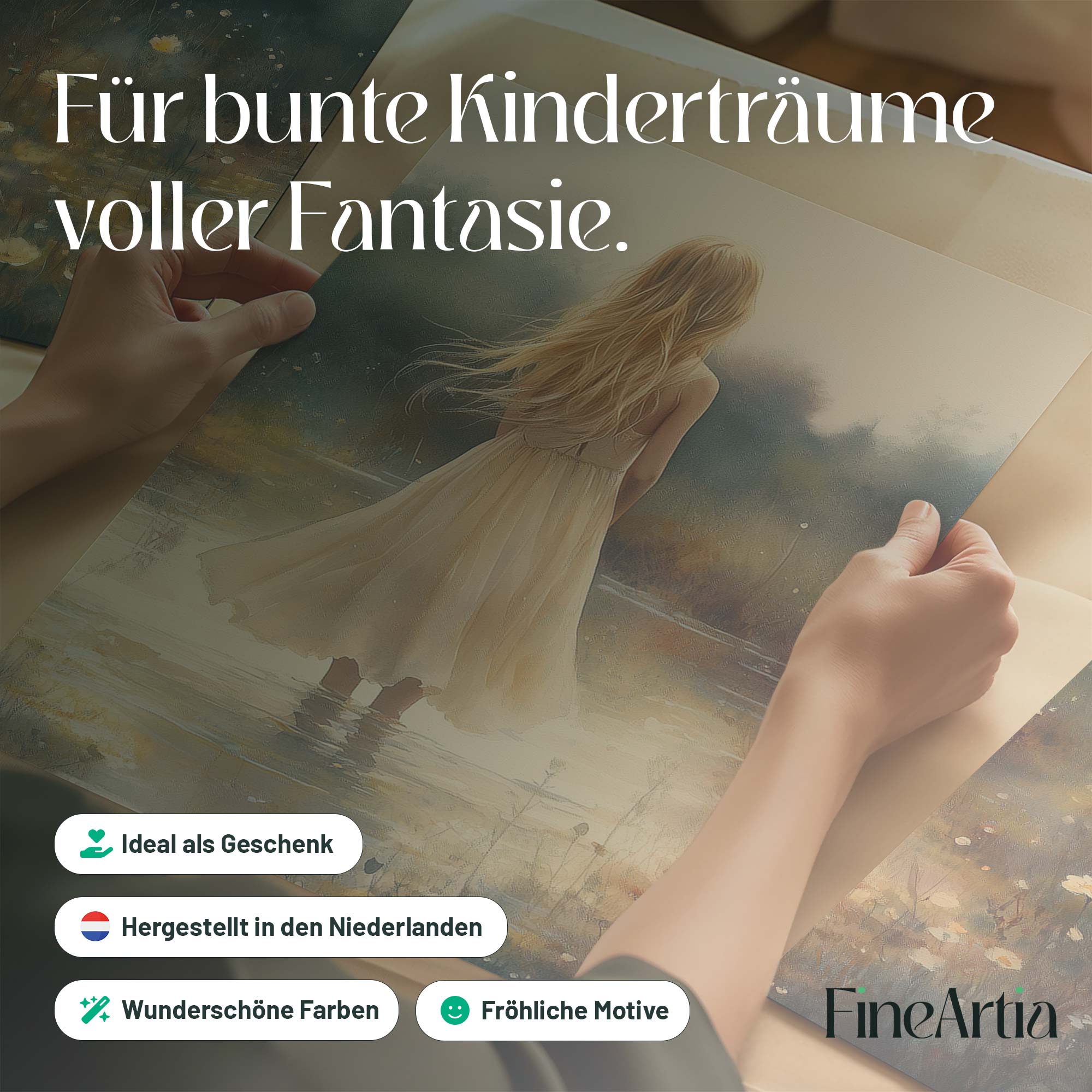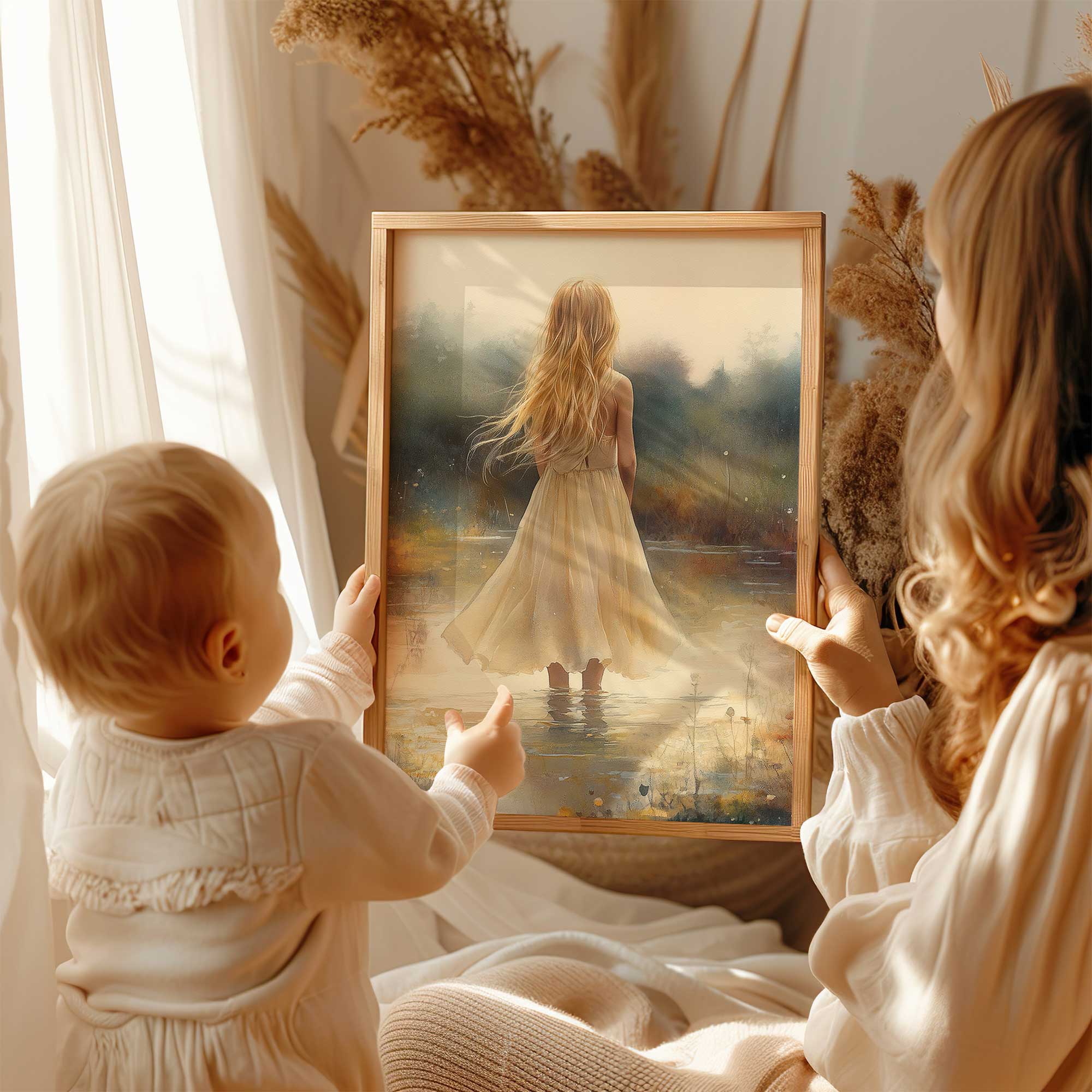 Terug naar collectie Posters Zacht Dromen in Bloemenveld – Meisje in Pastel