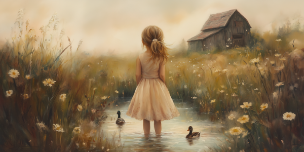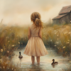 Zacht Dromen: Meisje bij Vrolijke Eenden en Bloemen