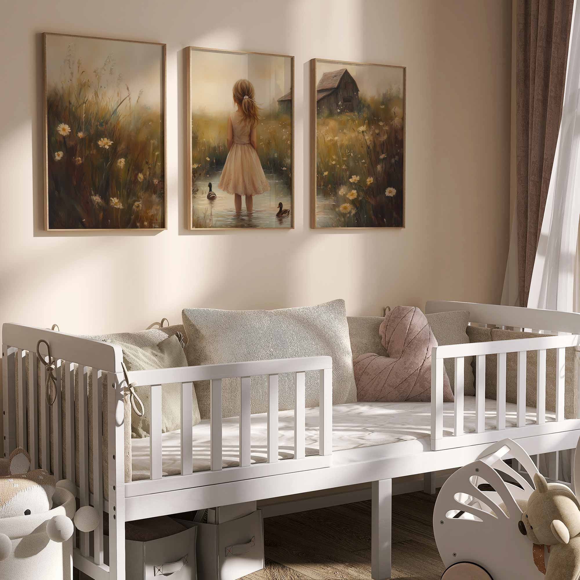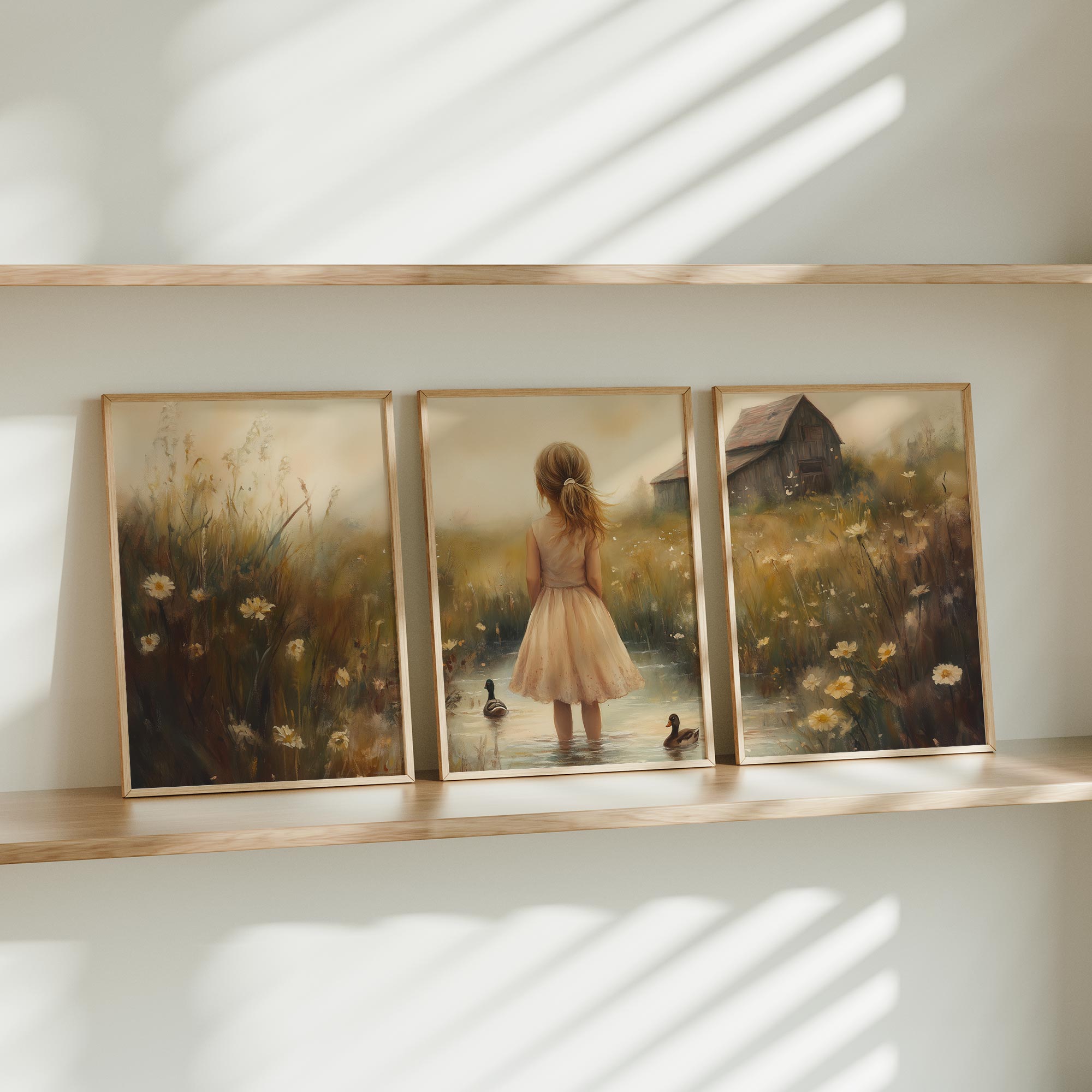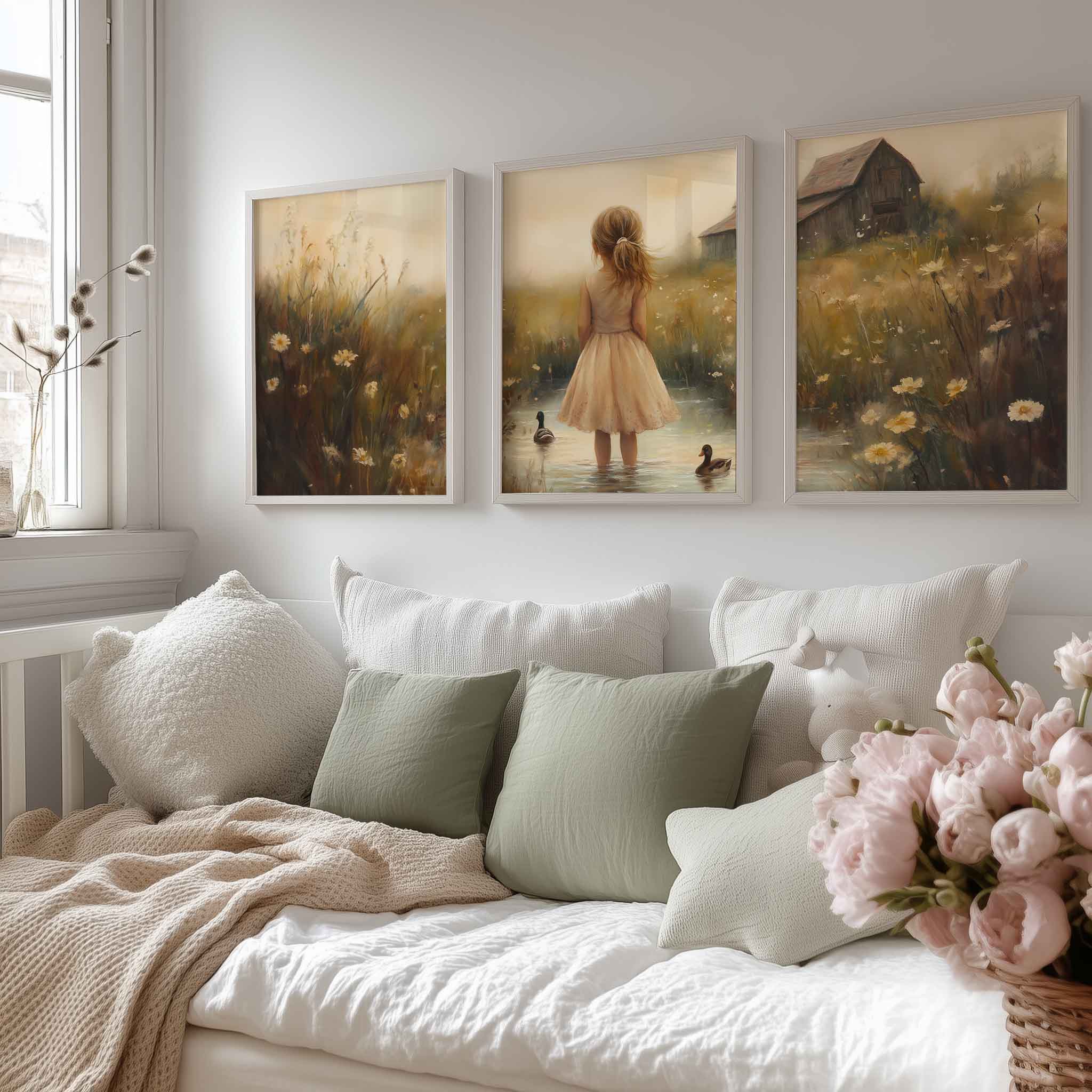 Terug naar collectie Posters Zacht Dromen: Meisje bij Vrolijke Eenden en Bloemen