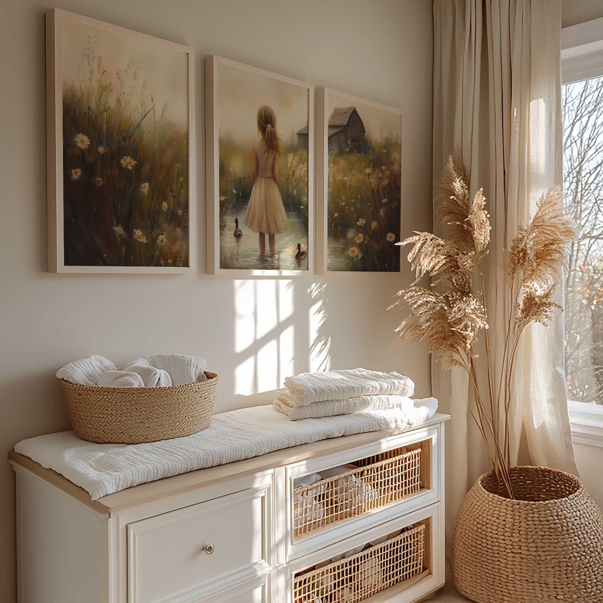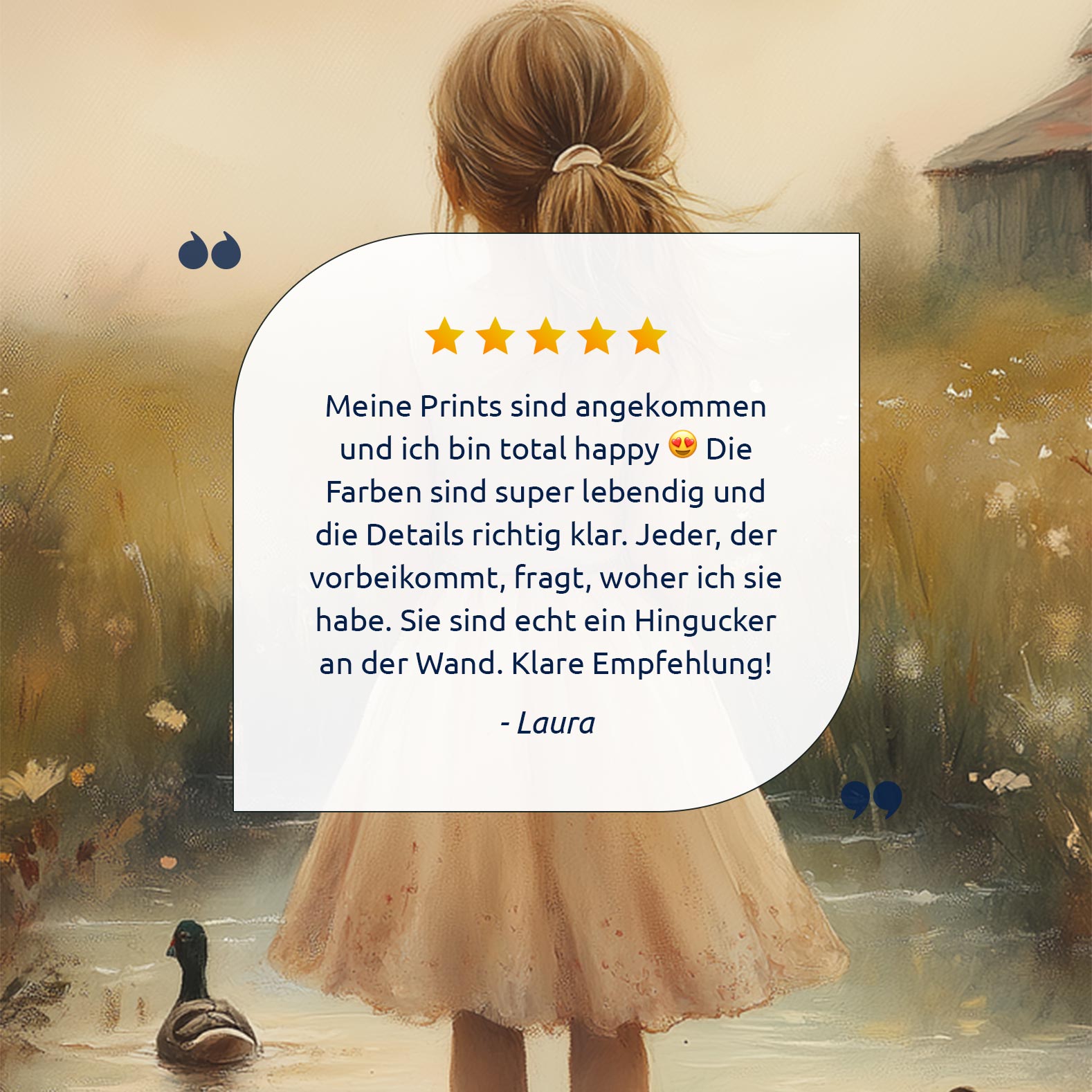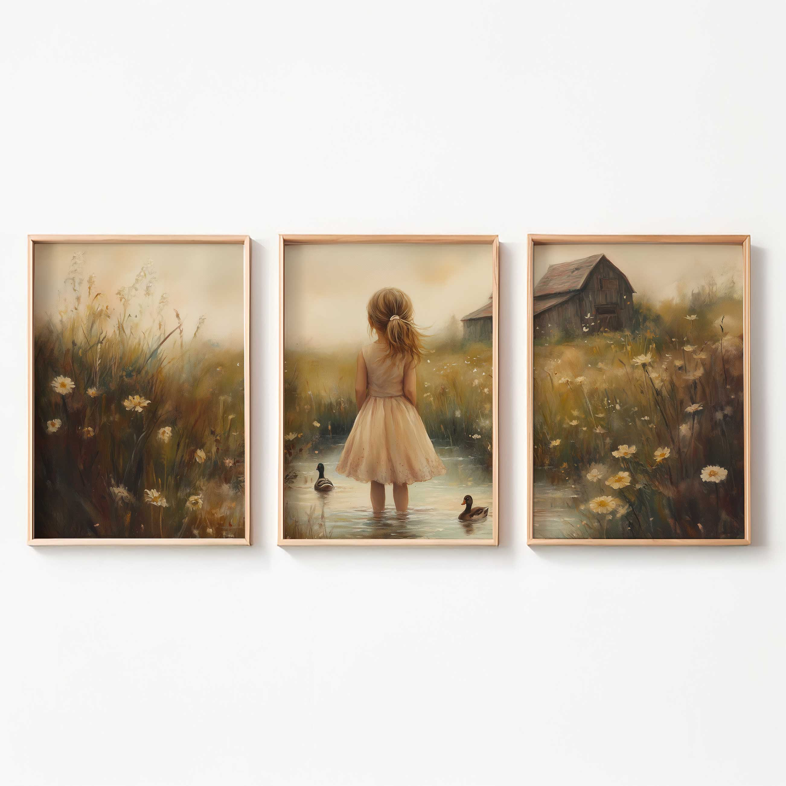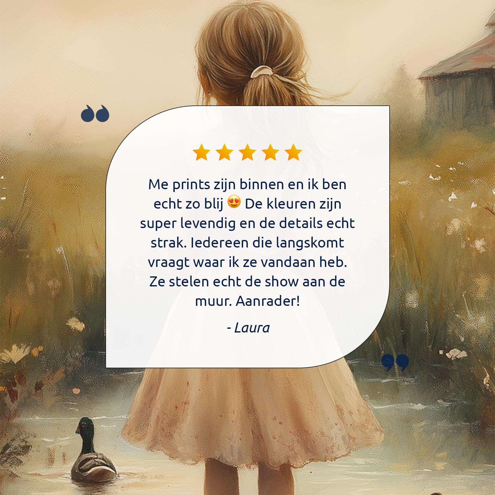 Terug naar collectie Posters Zacht Dromen: Meisje bij Vrolijke Eenden en Bloemen