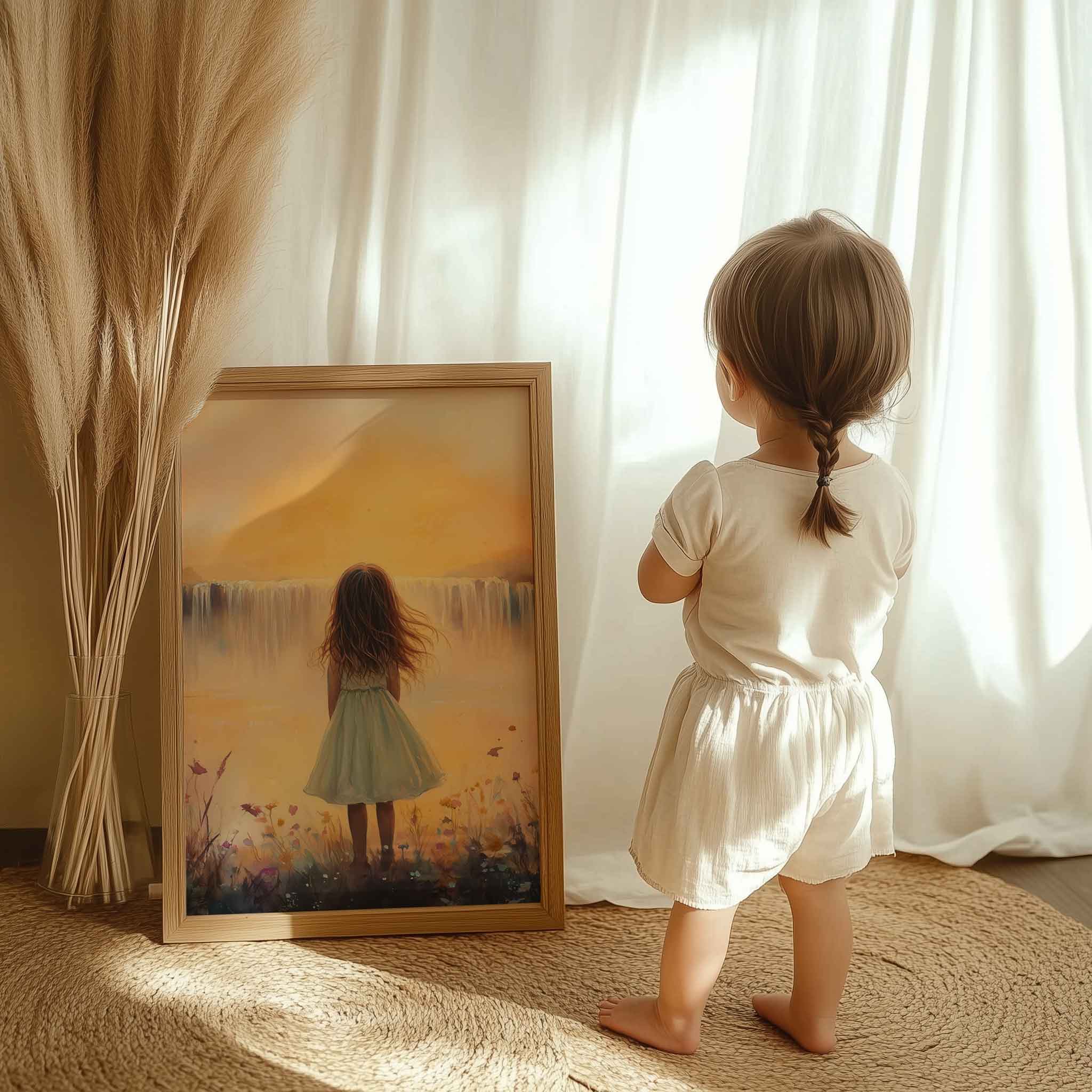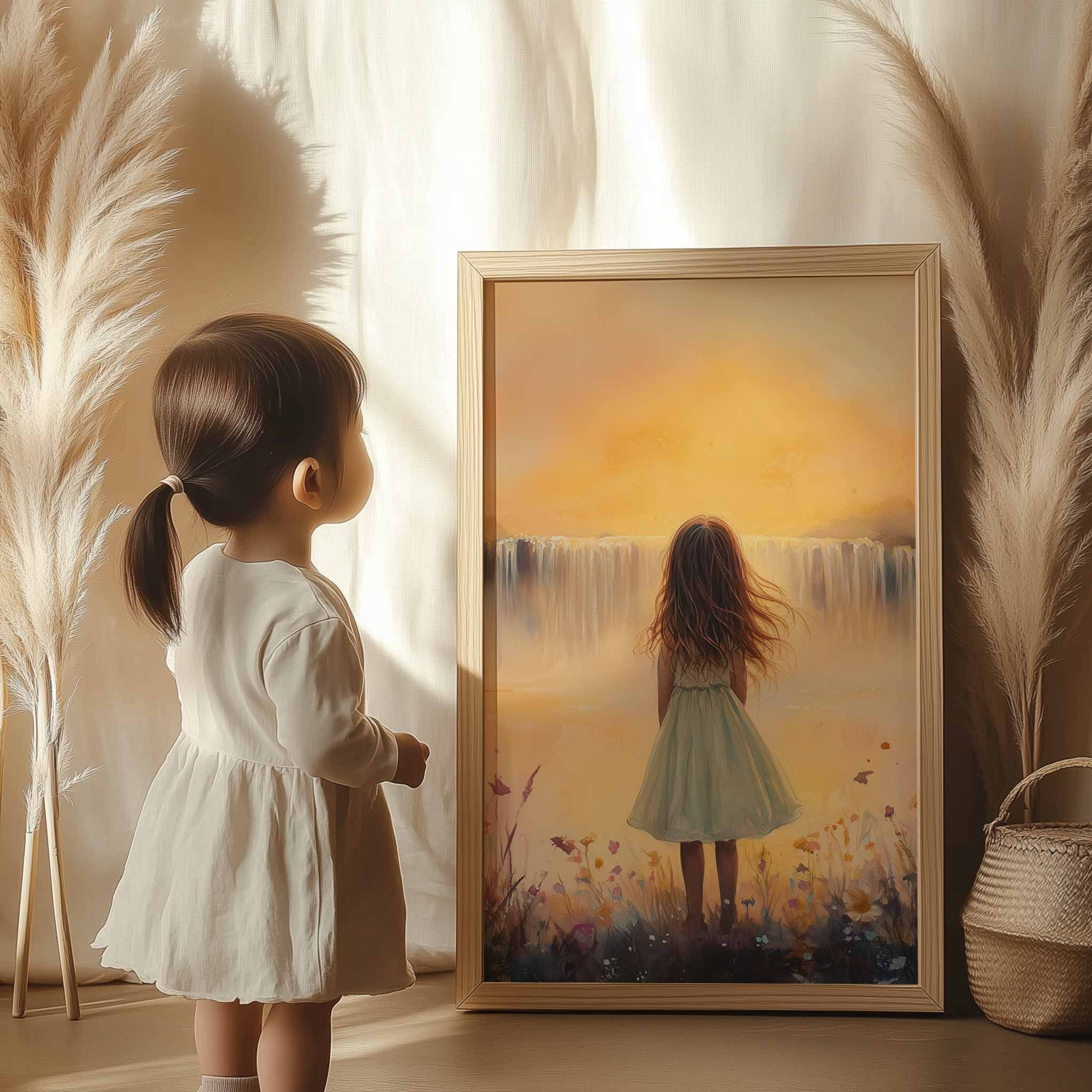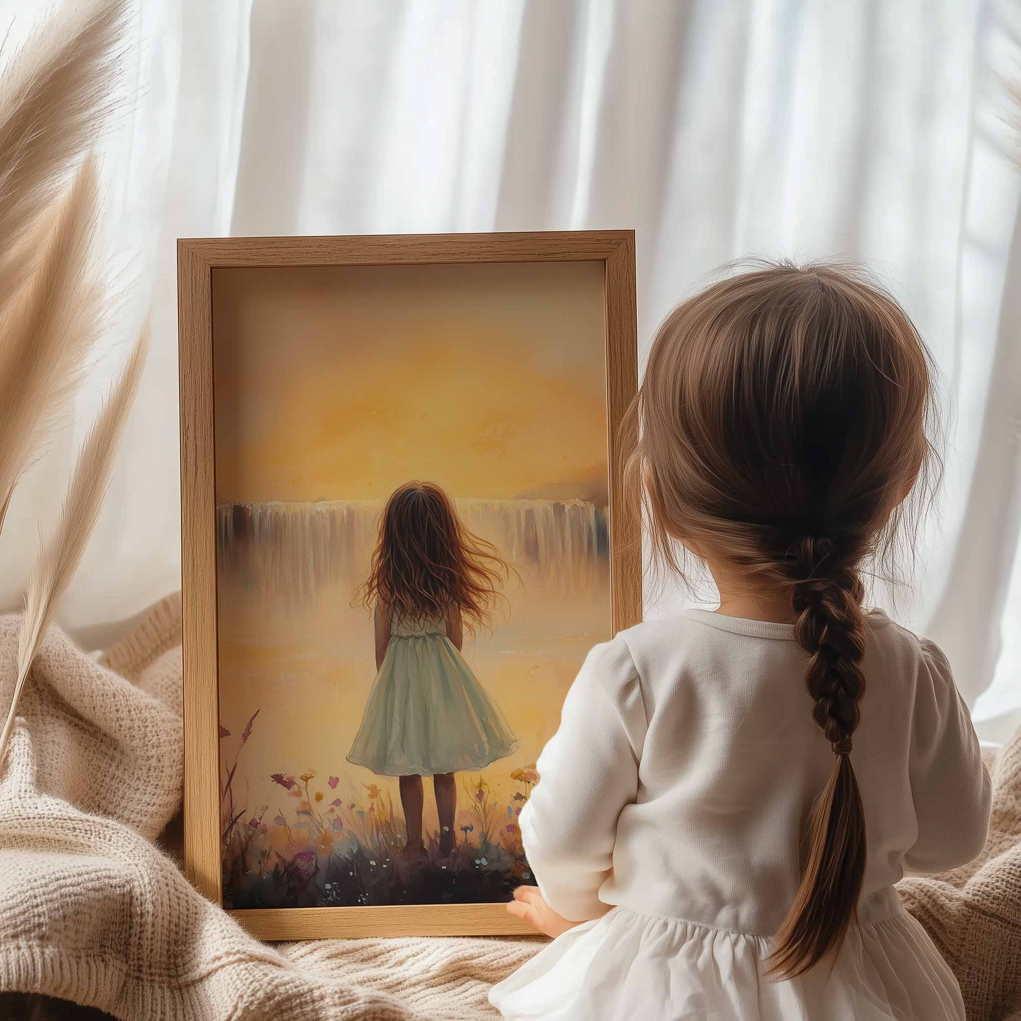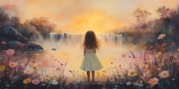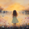 Zacht Dromen: Meisje bij Waterval in Bloemenveld
