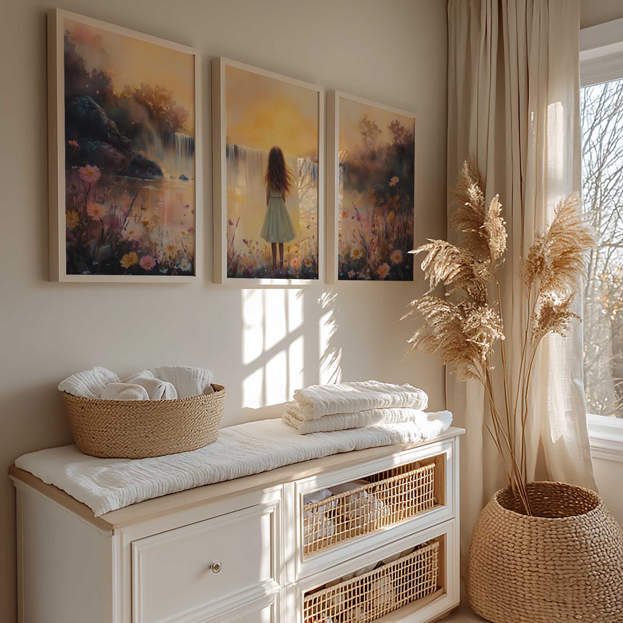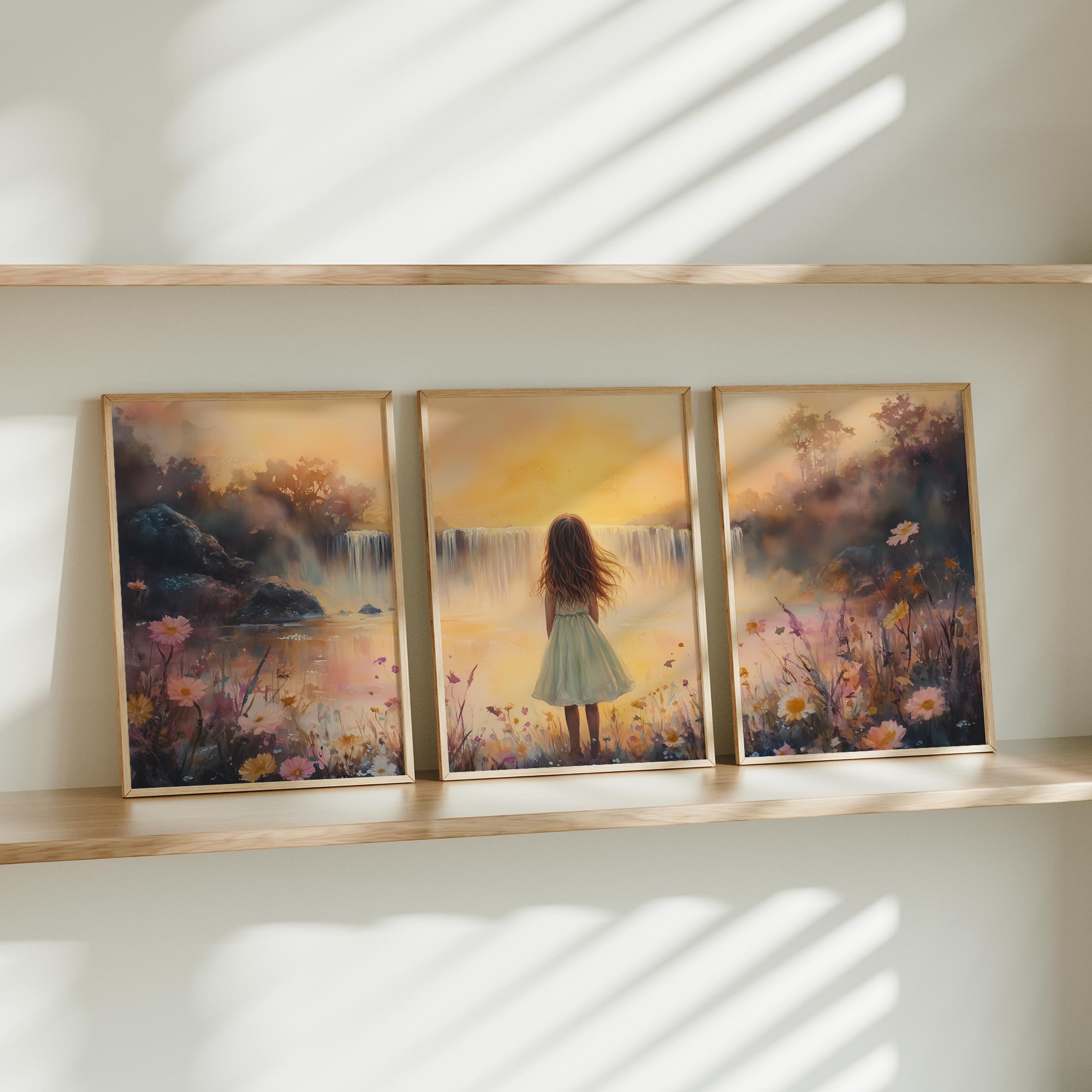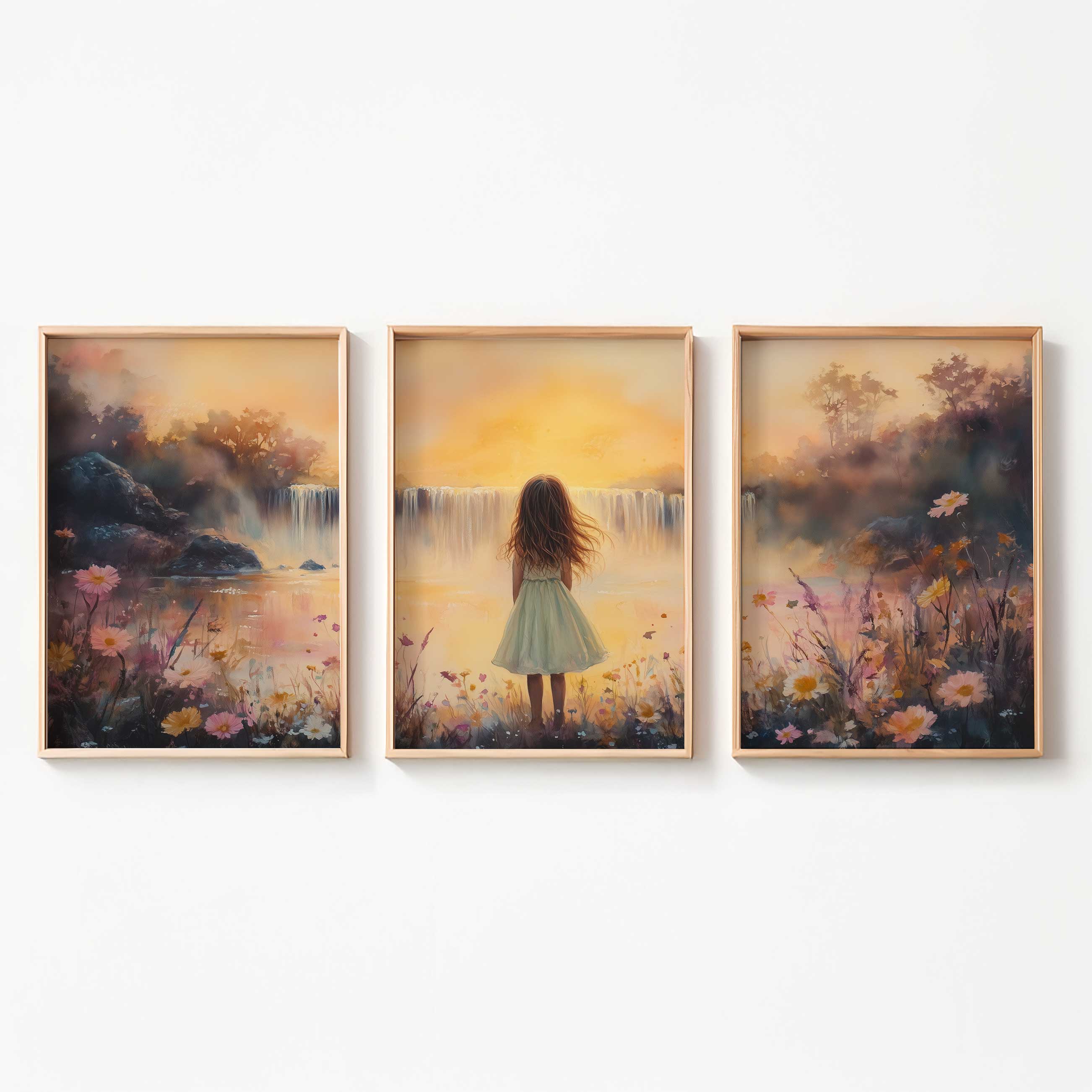 Zacht Dromen: Meisje bij Waterval in Bloemenveld