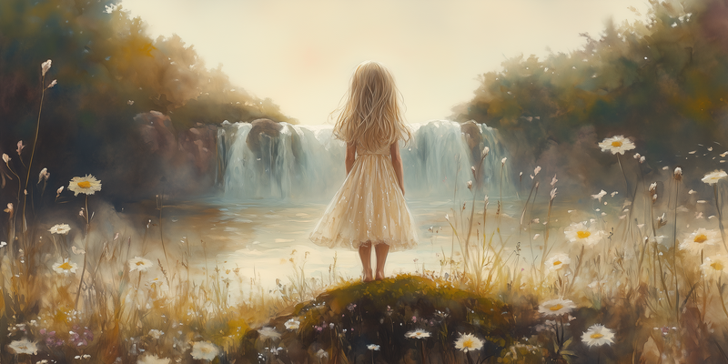 Zacht Dromen: Meisje bij Waterval in Pastel