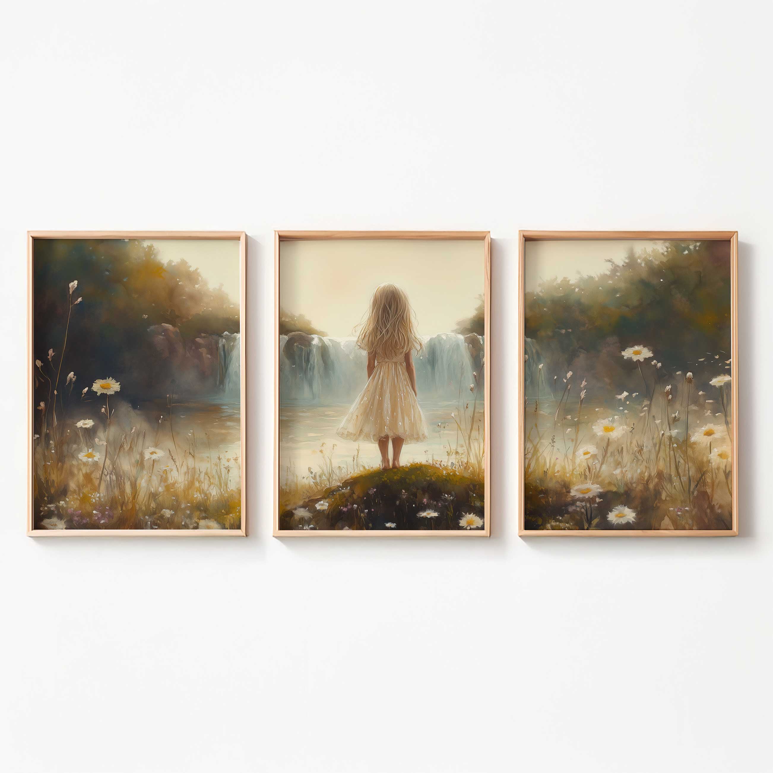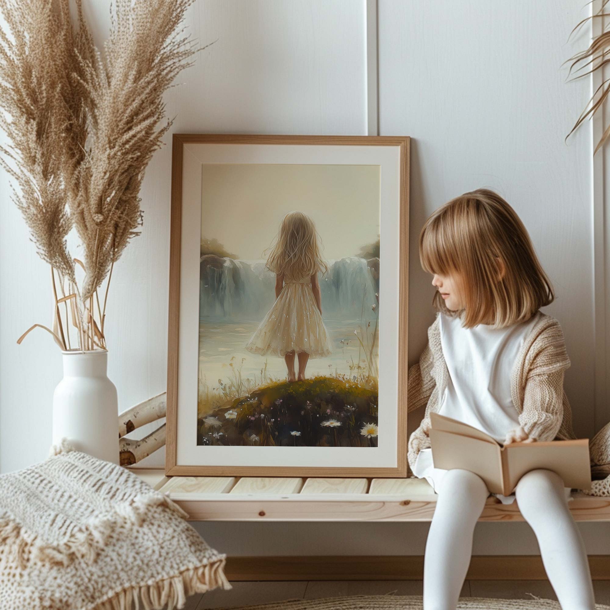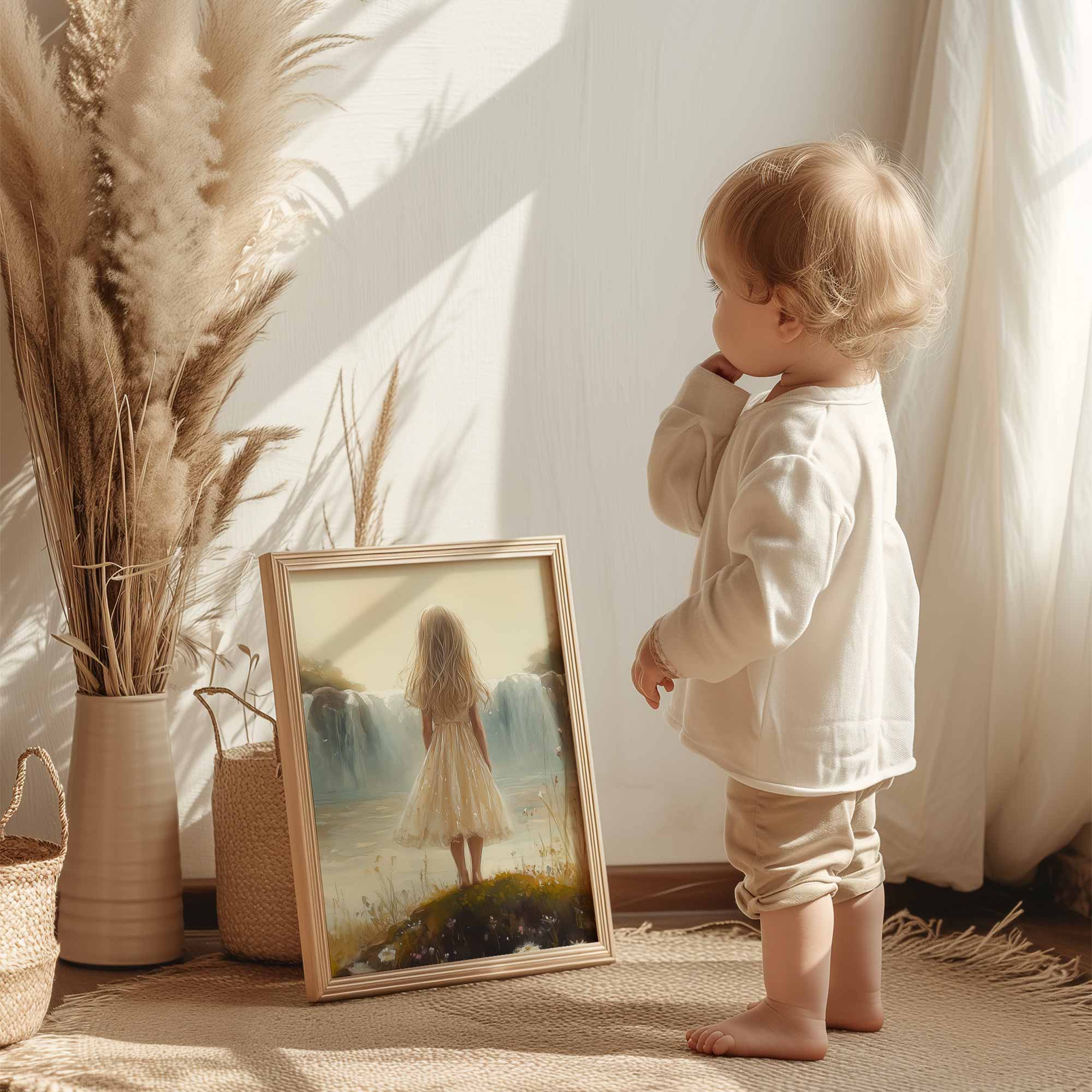 Terug naar collectie Posters Zacht Dromen: Meisje bij Waterval in Pastel
