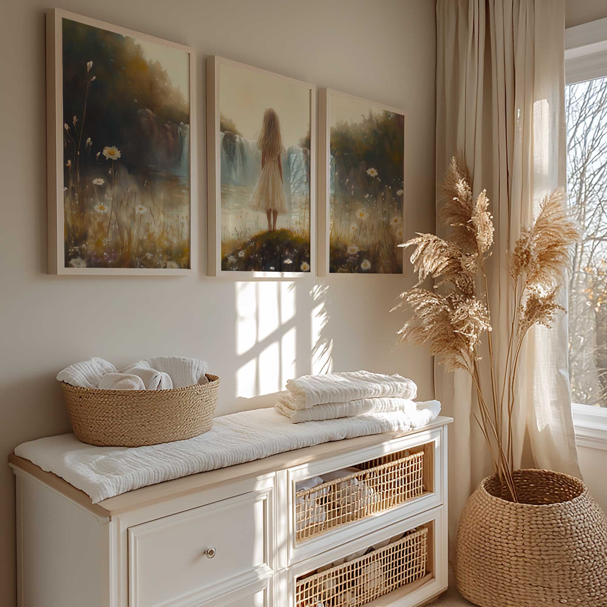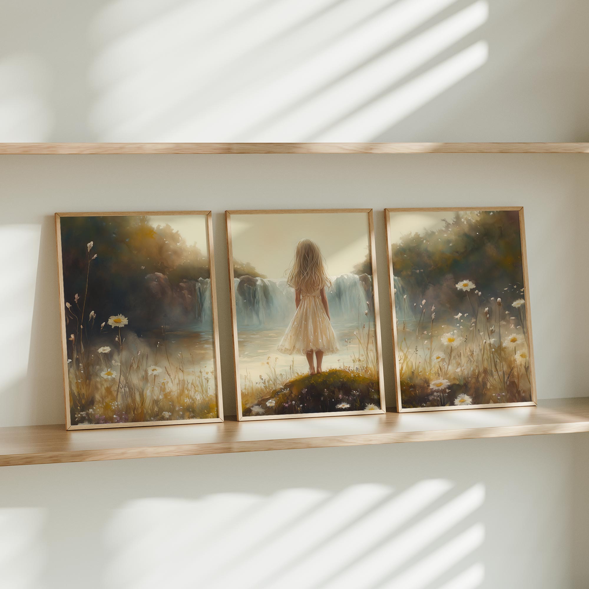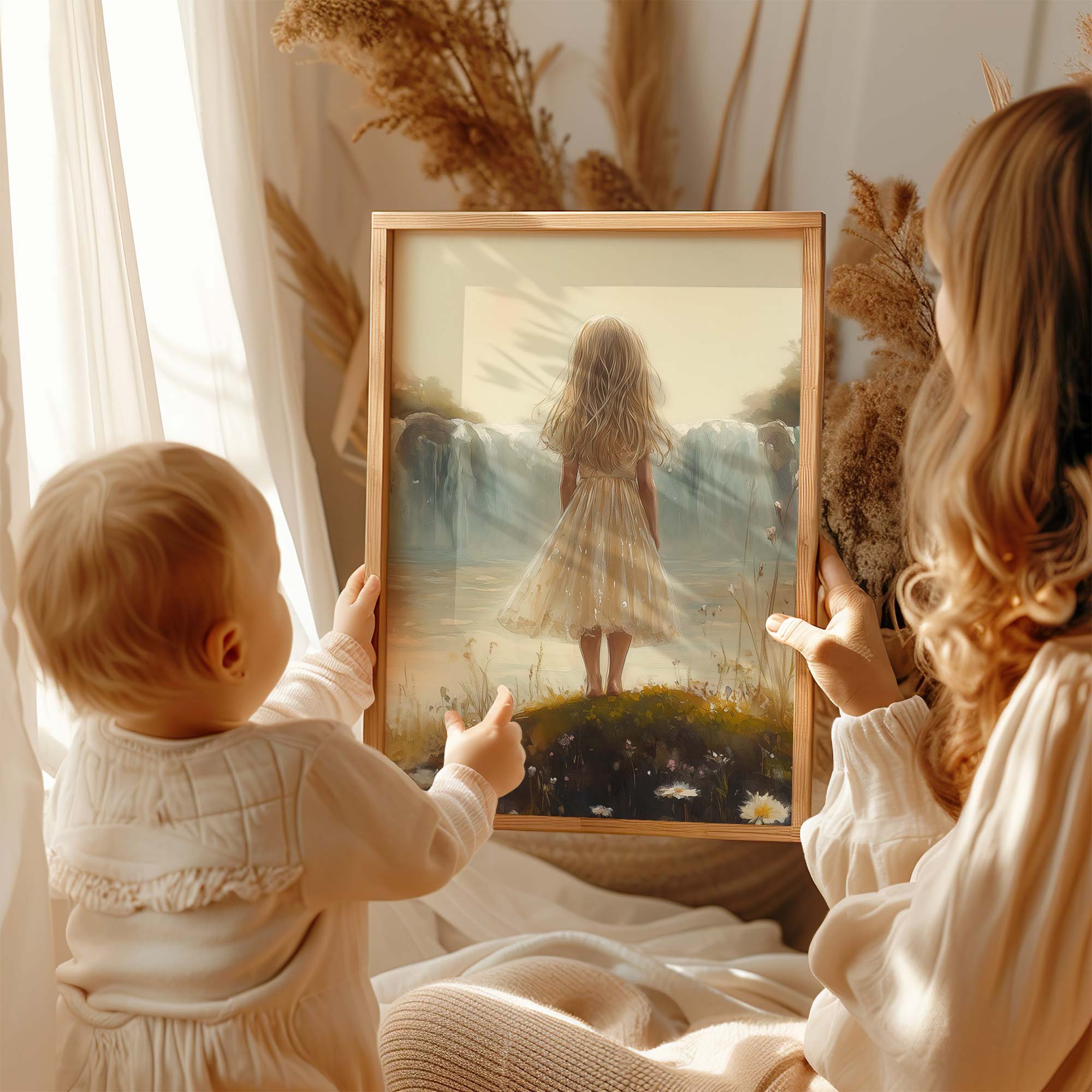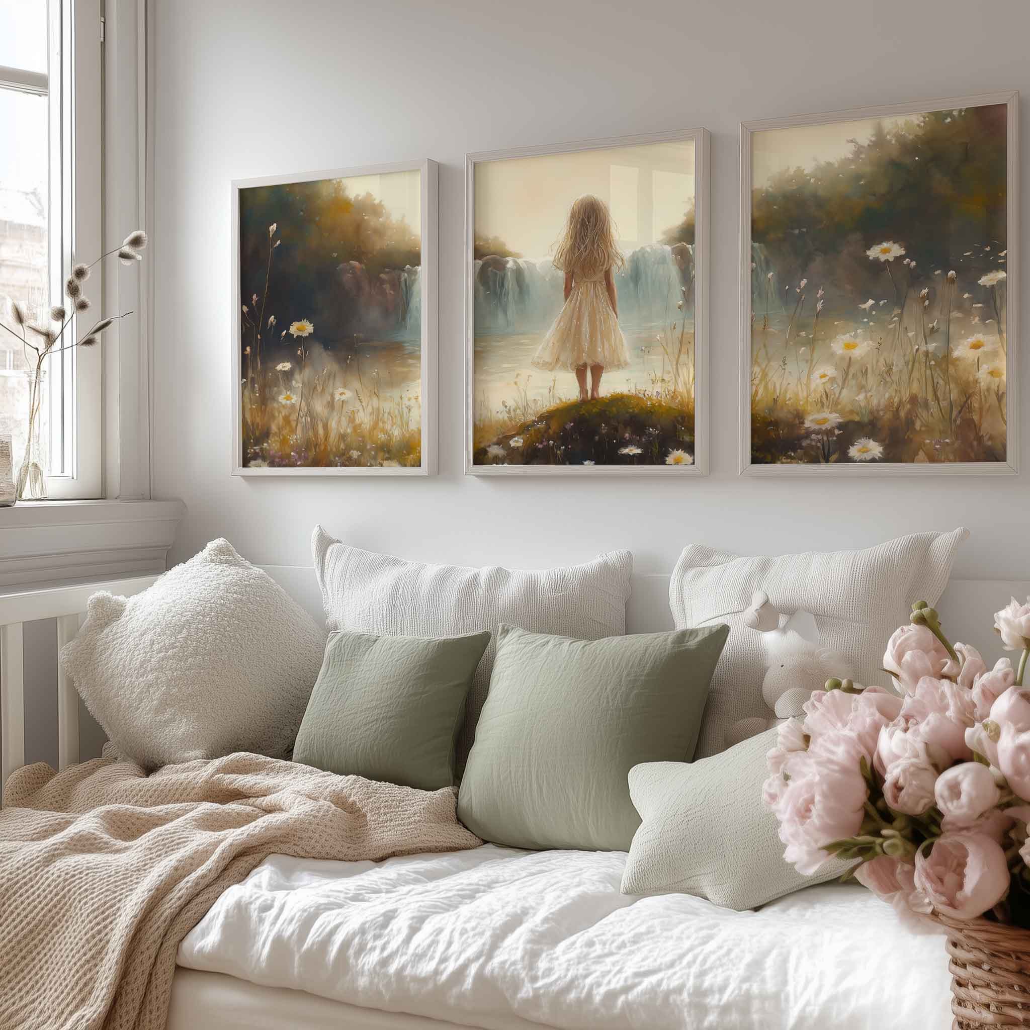 Terug naar collectie Posters Zacht Dromen: Meisje bij Waterval in Pastel