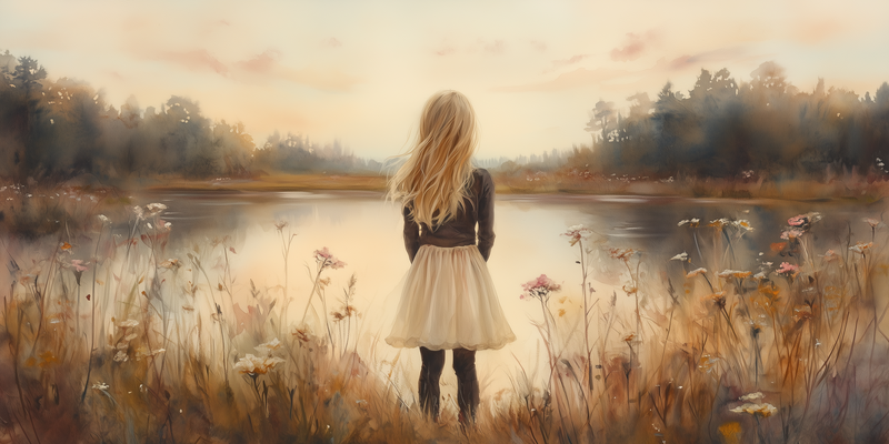 Zacht Dromen: Meisje in Bloeiend Landschap