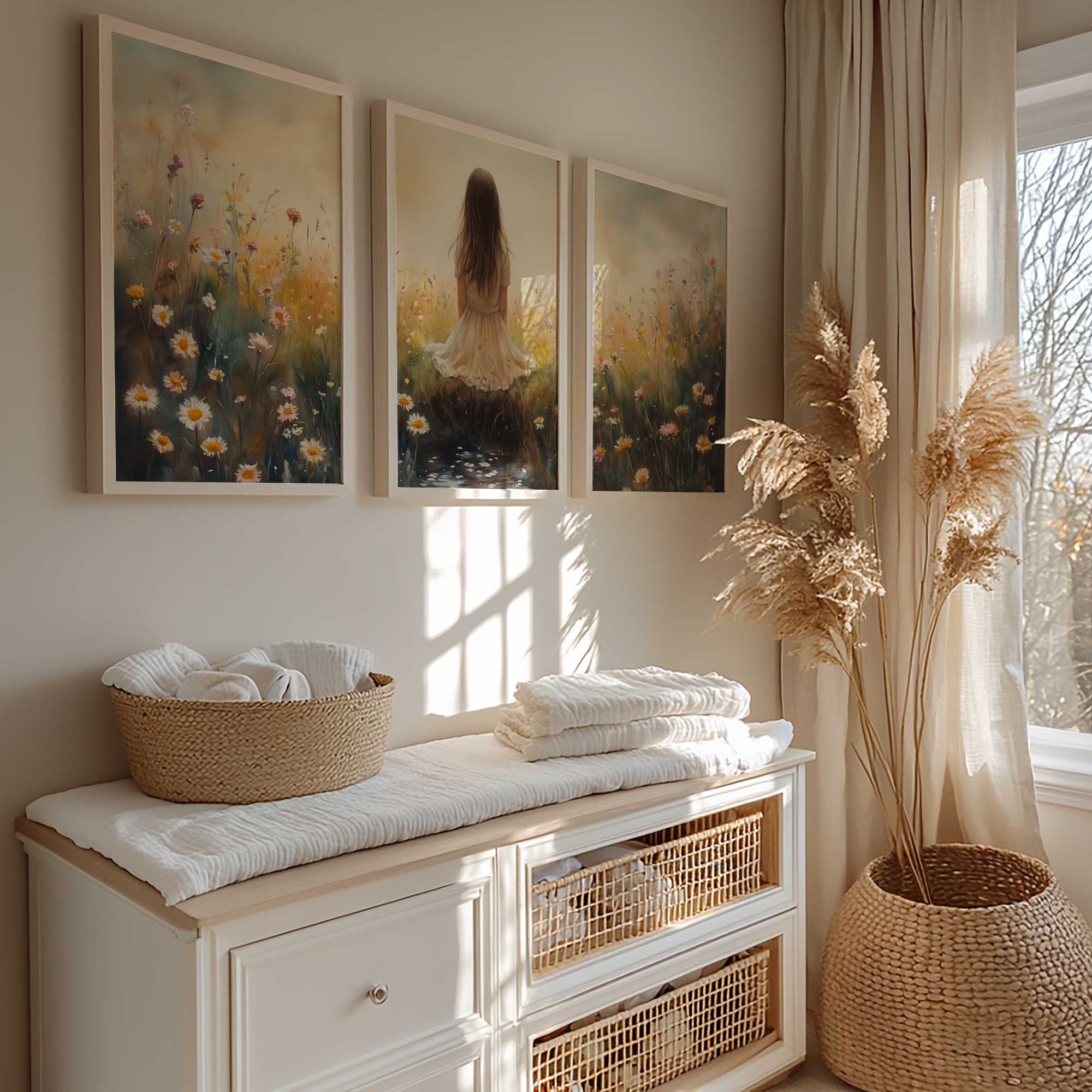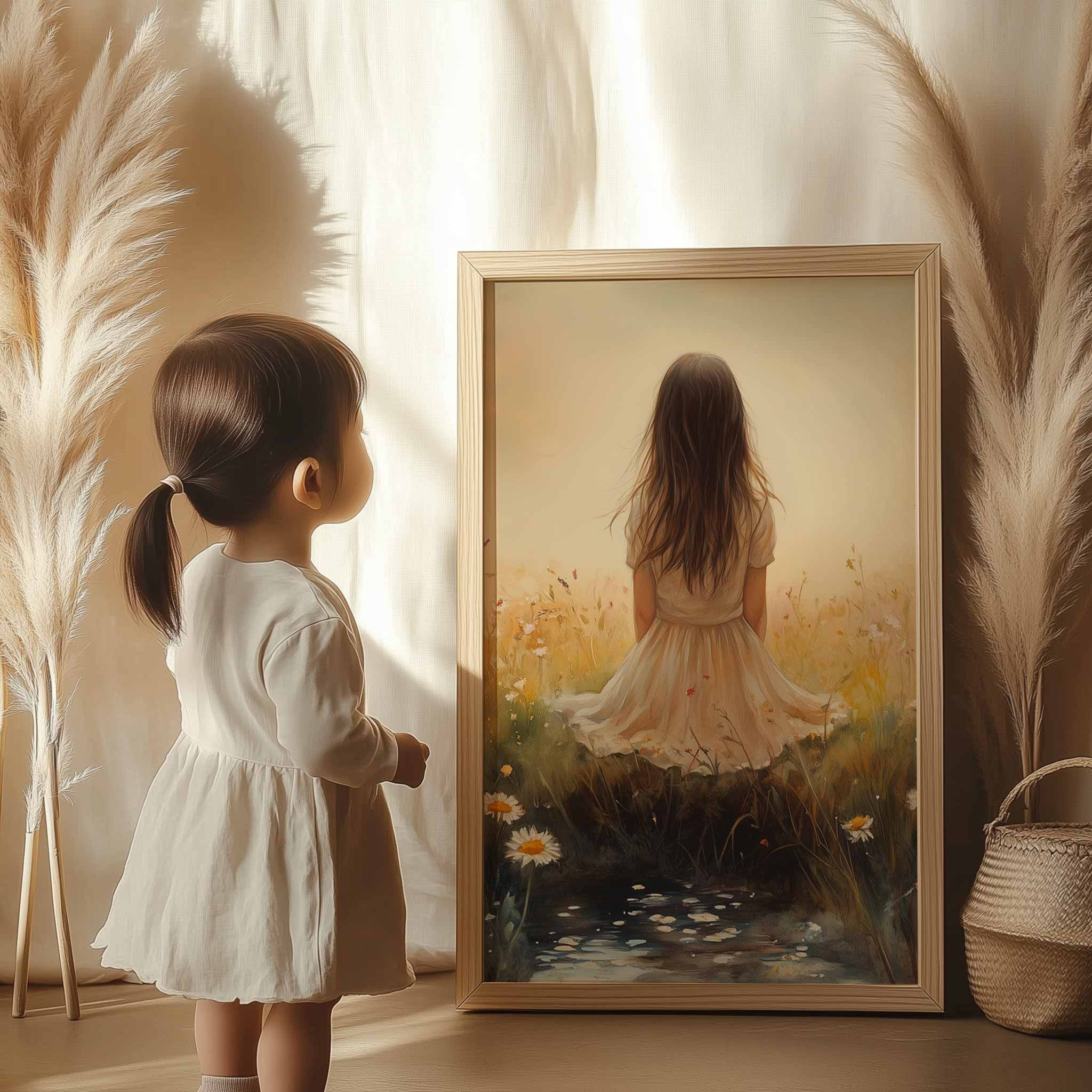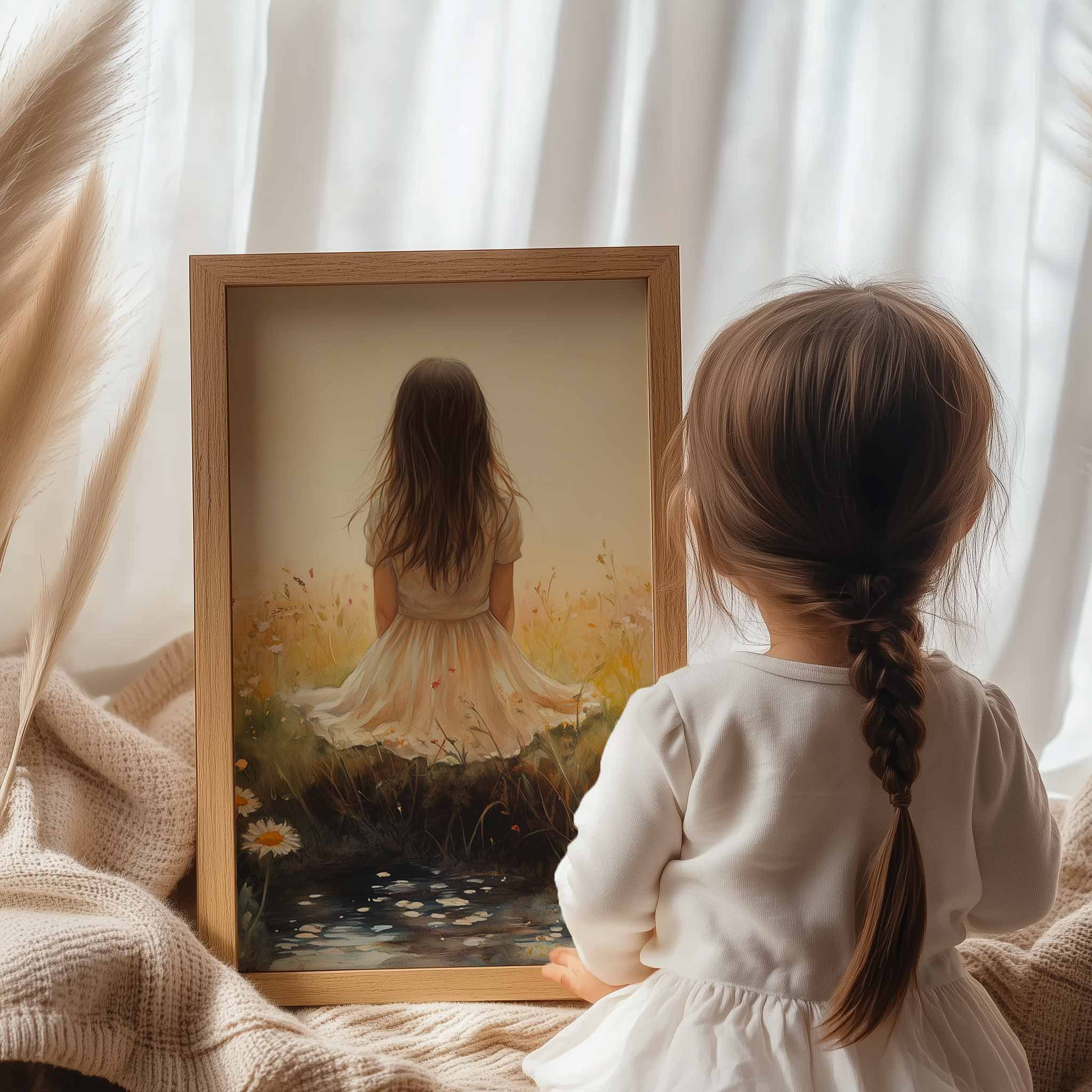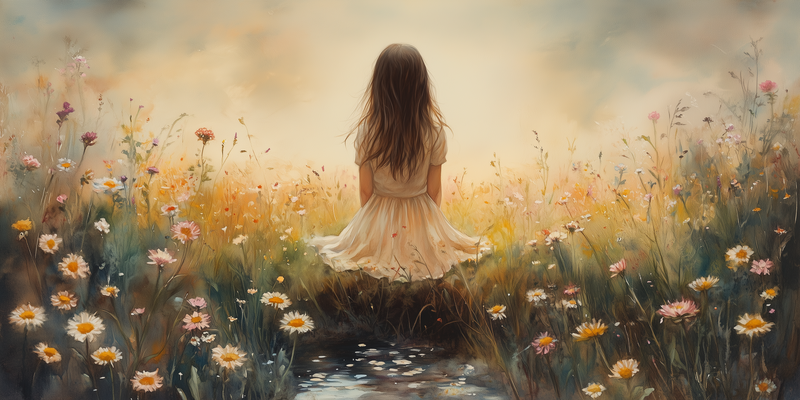 Zacht Dromen: Vrouw in Bloemenveld bij Beekje