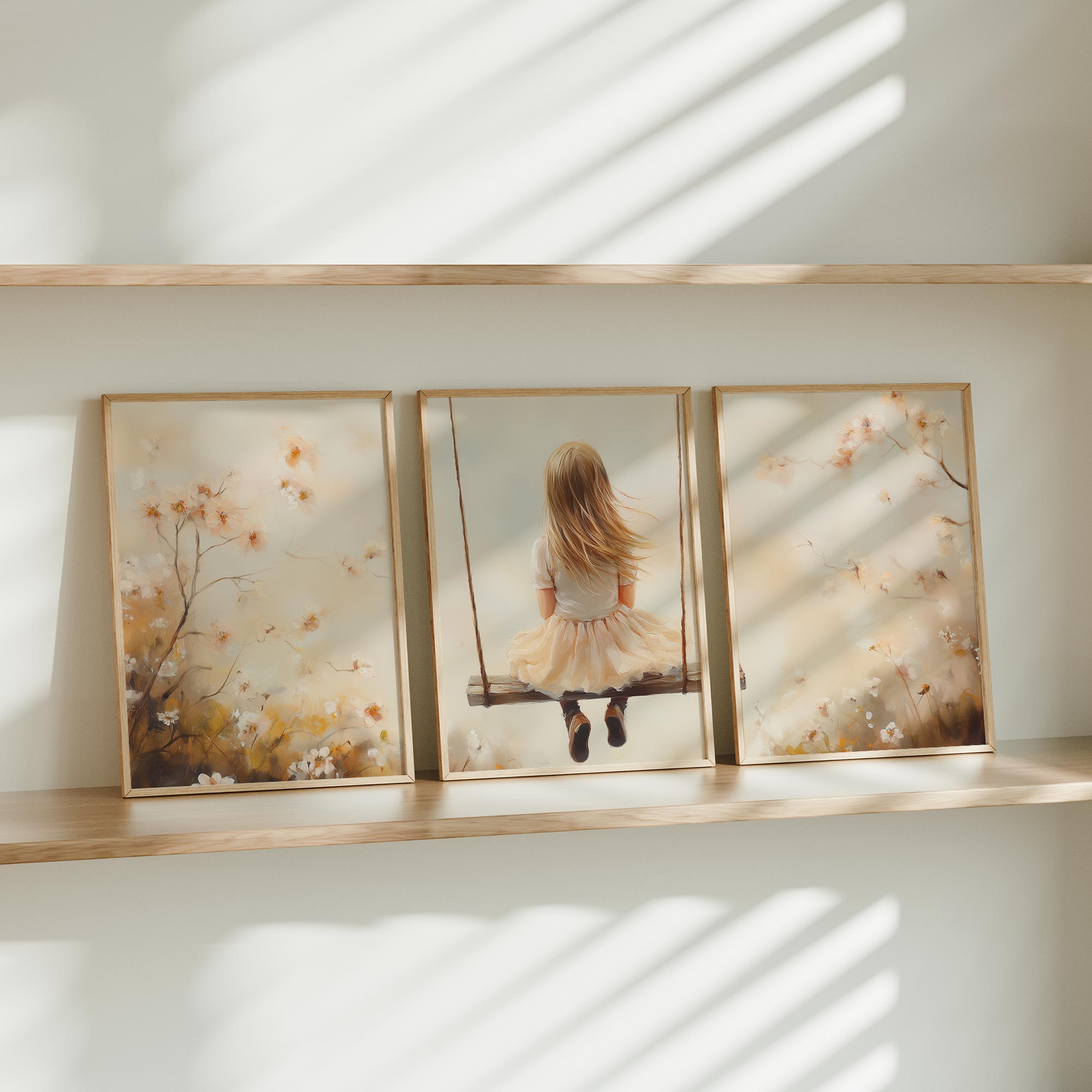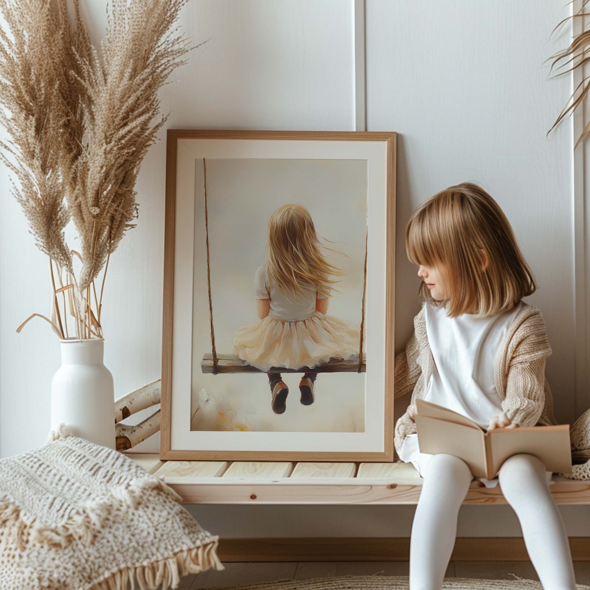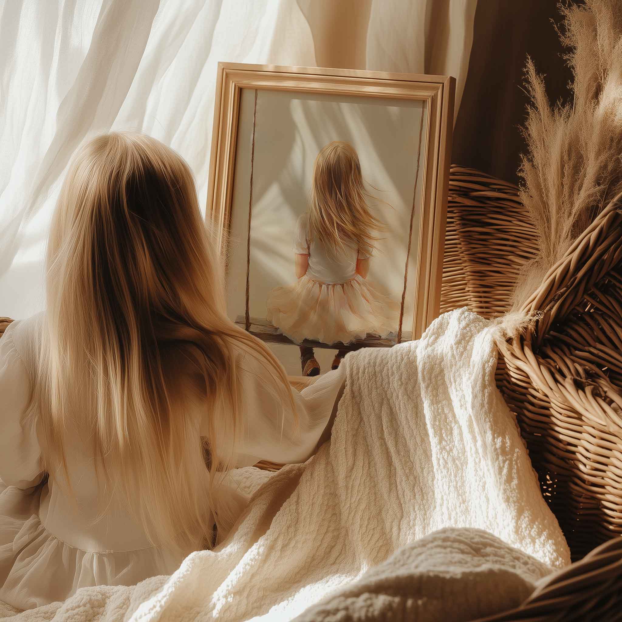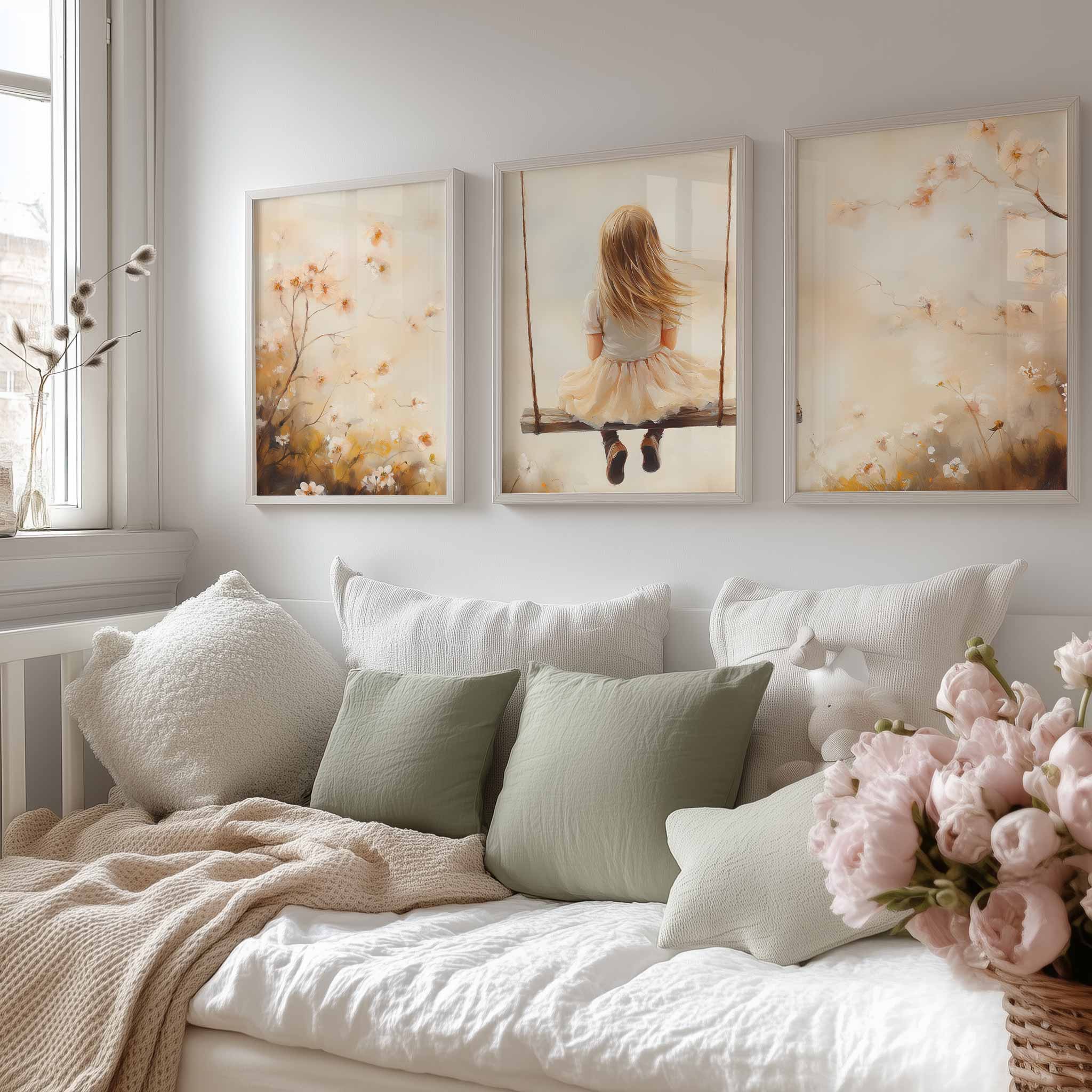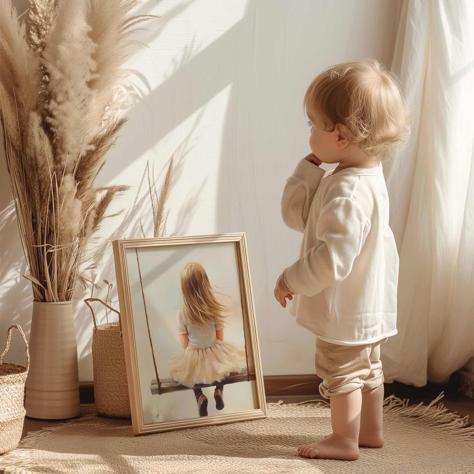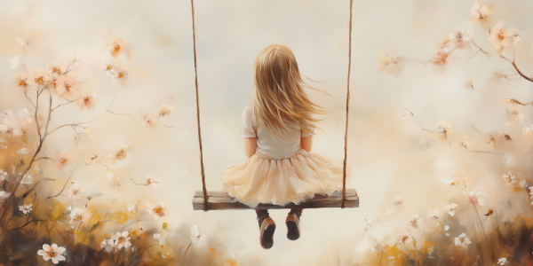 Zacht Dromend Meisje op Schommel tussen Bloemen