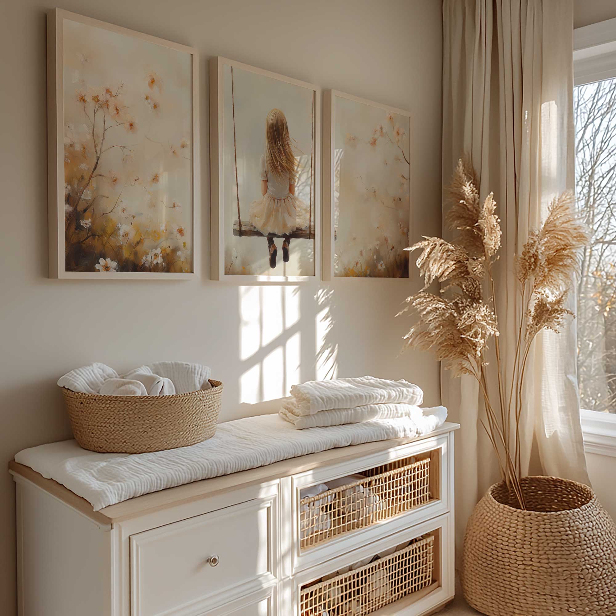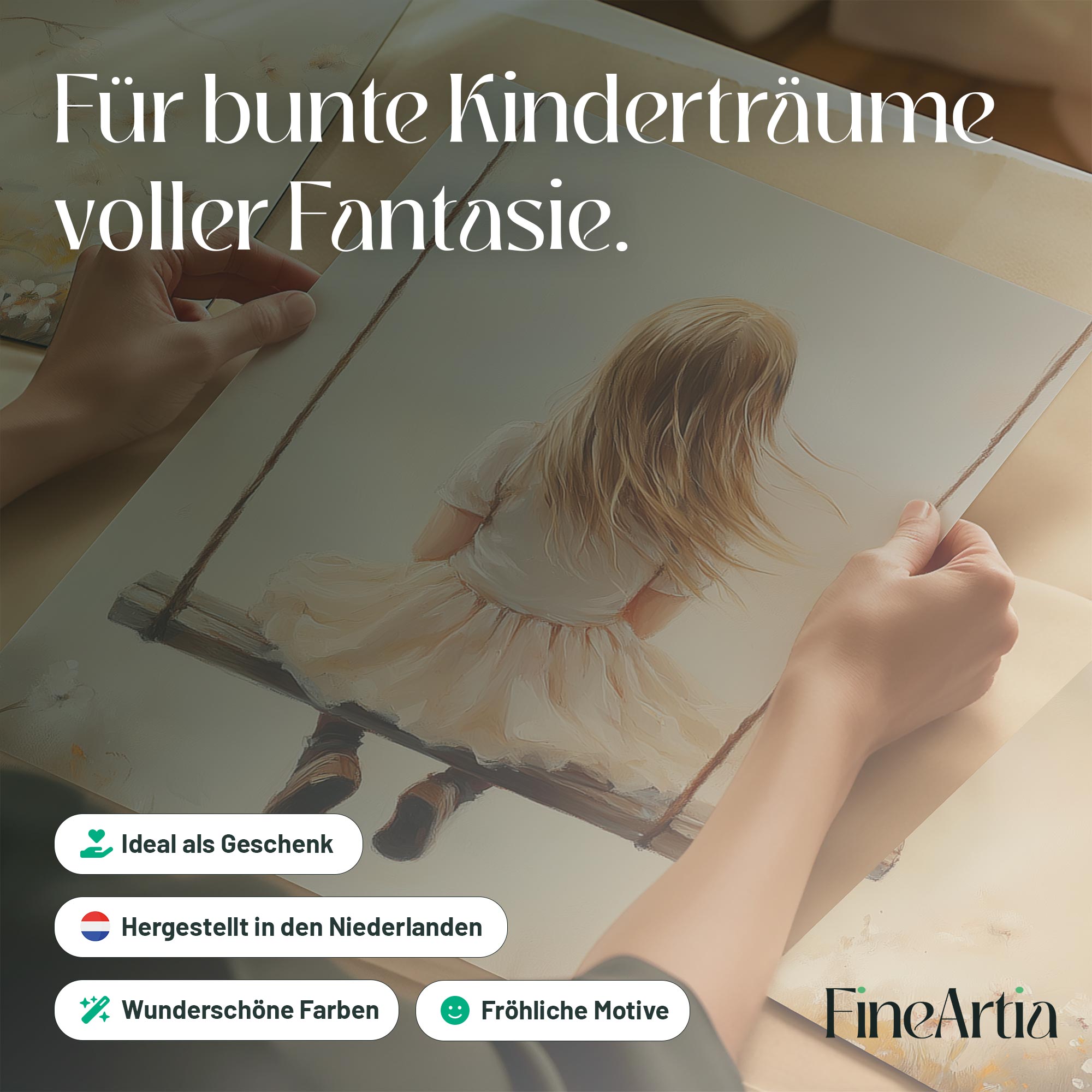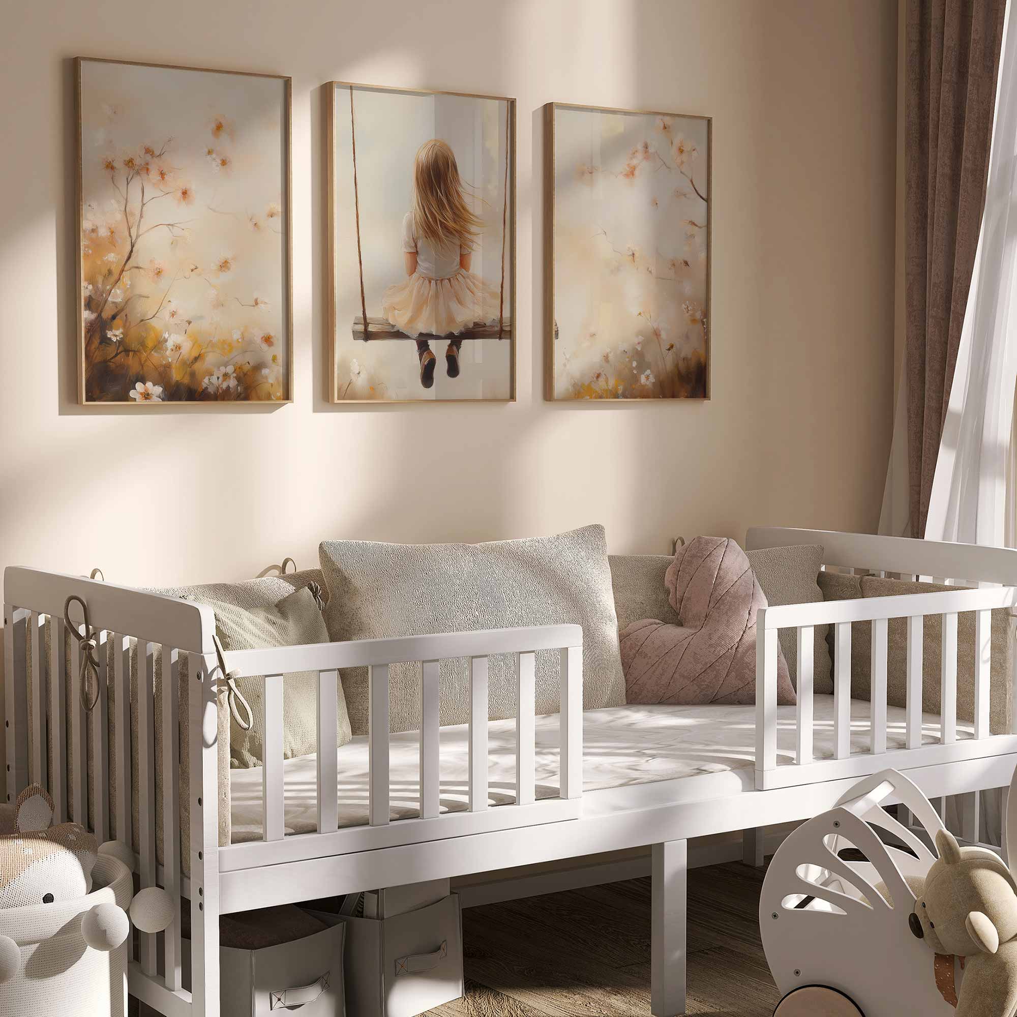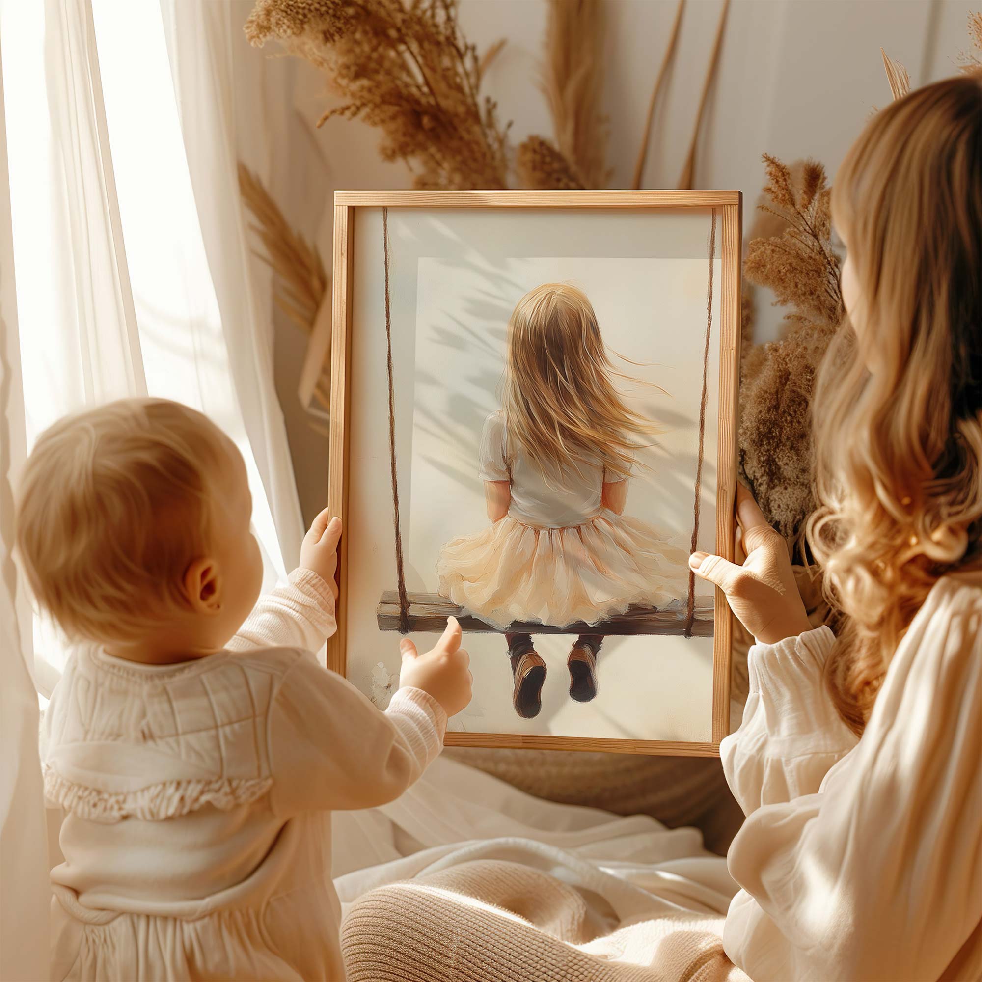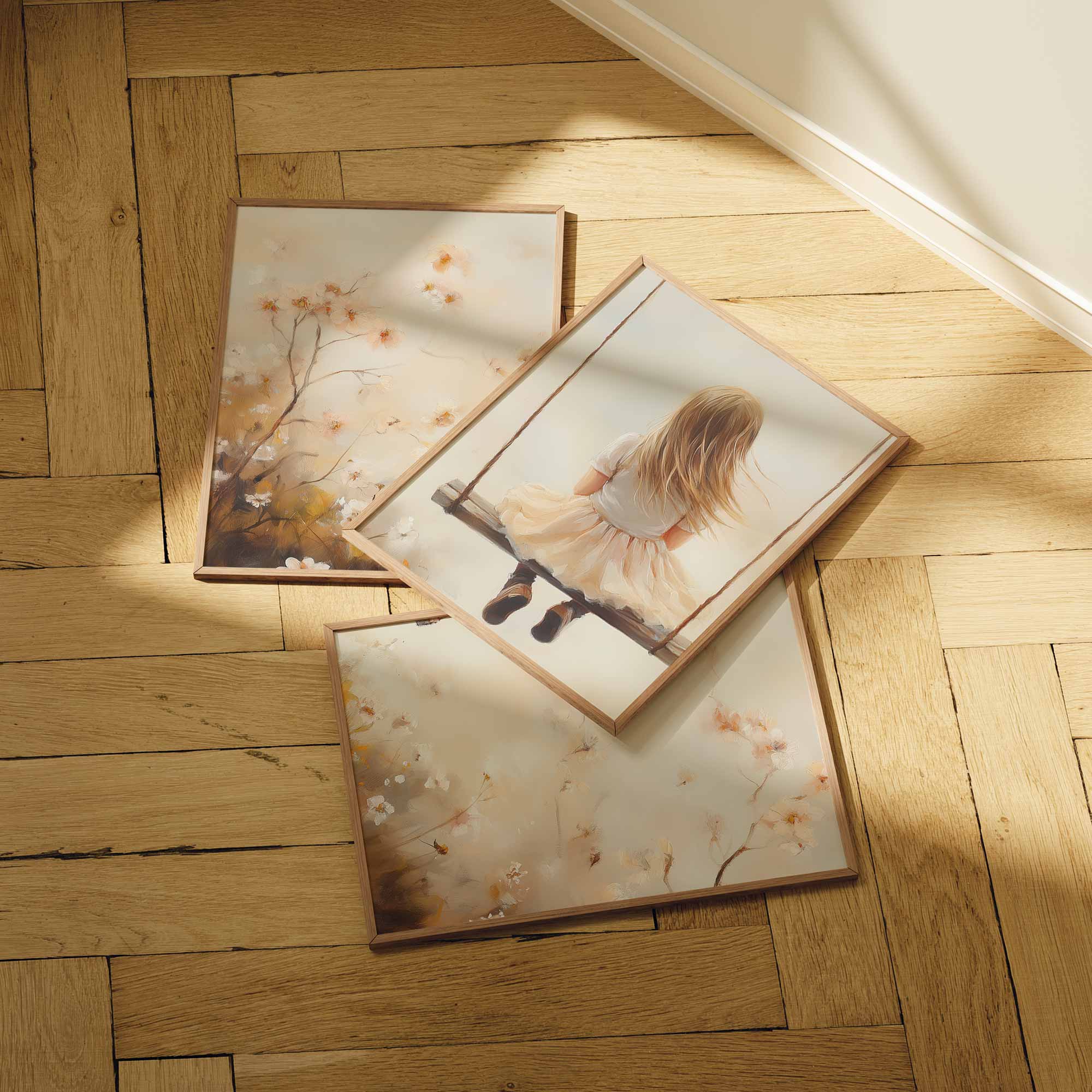 Zacht Dromend Meisje op Schommel tussen Bloemen
