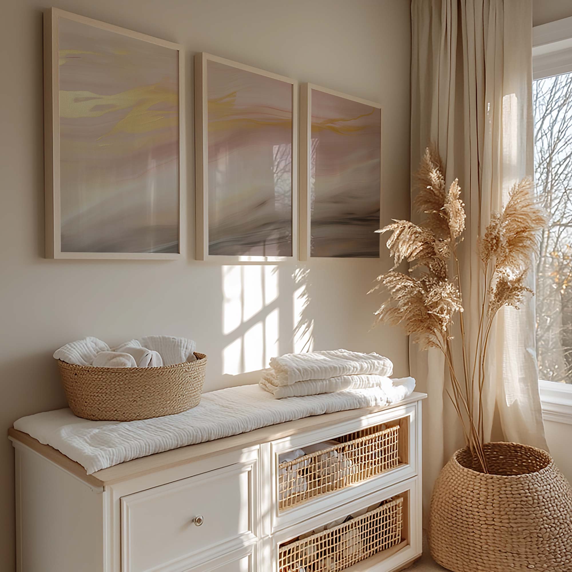 Zacht Dromerig Abstract in Roze, Geel & Wit
