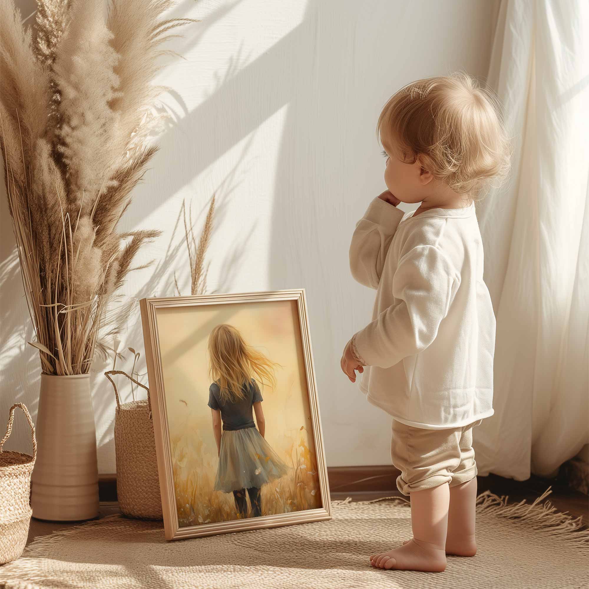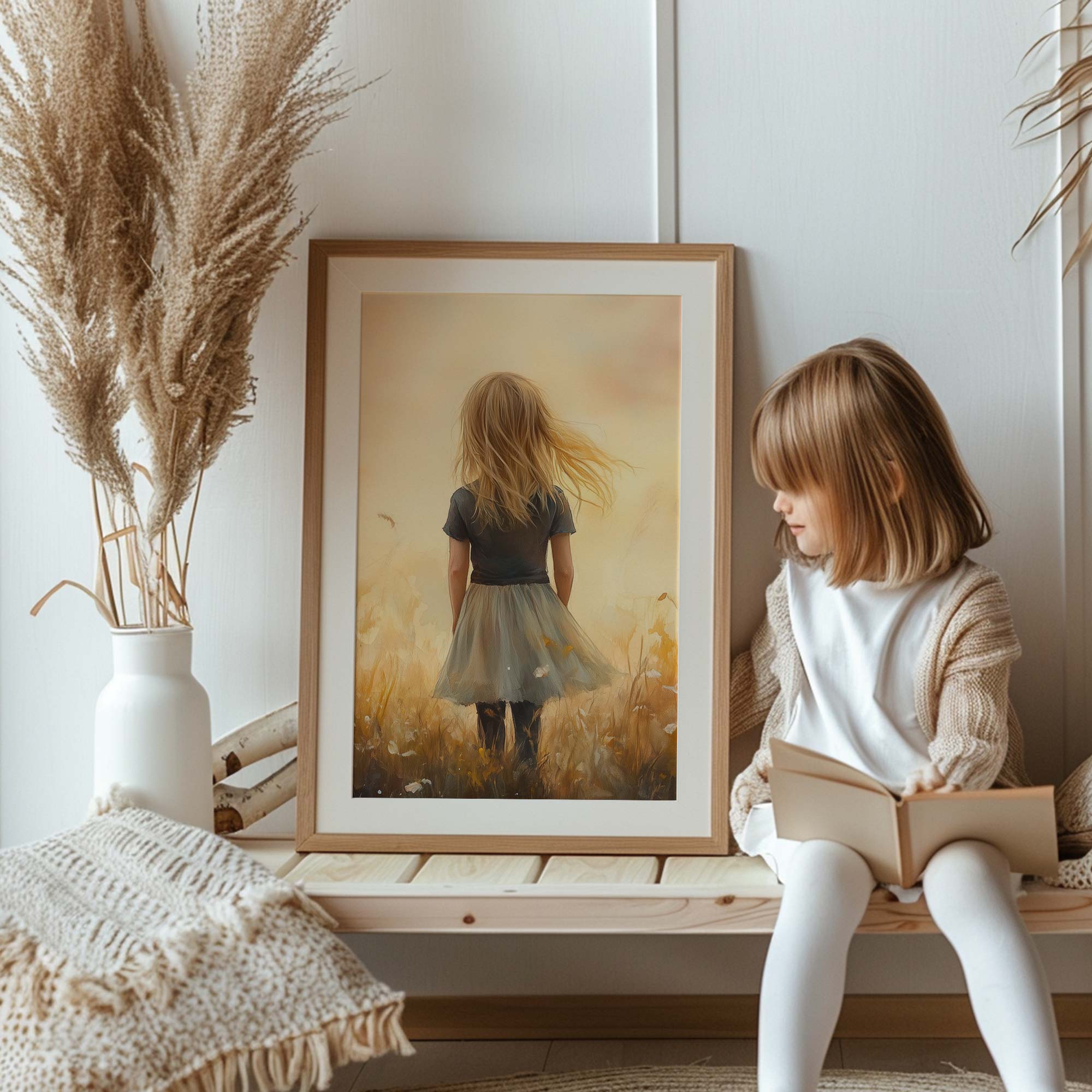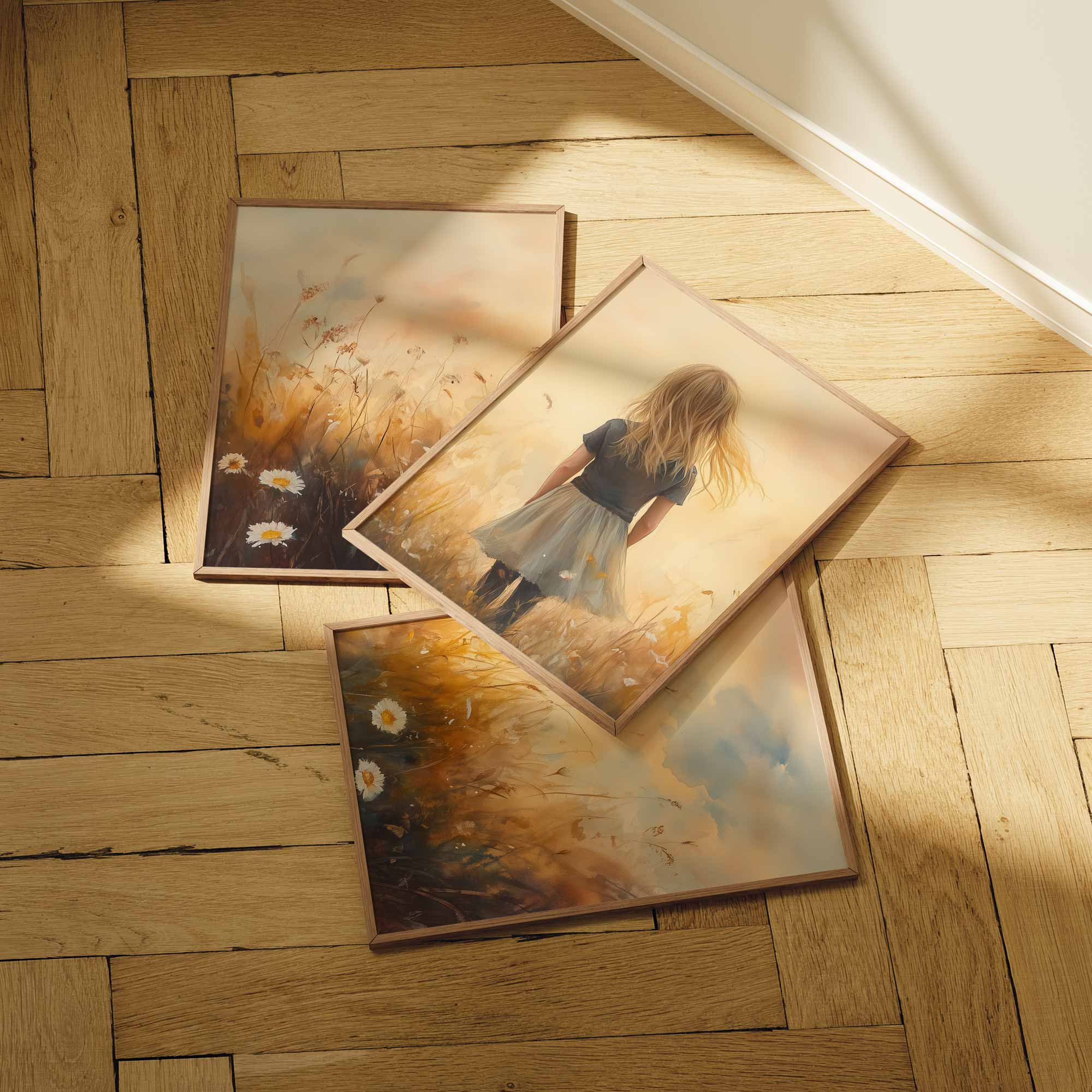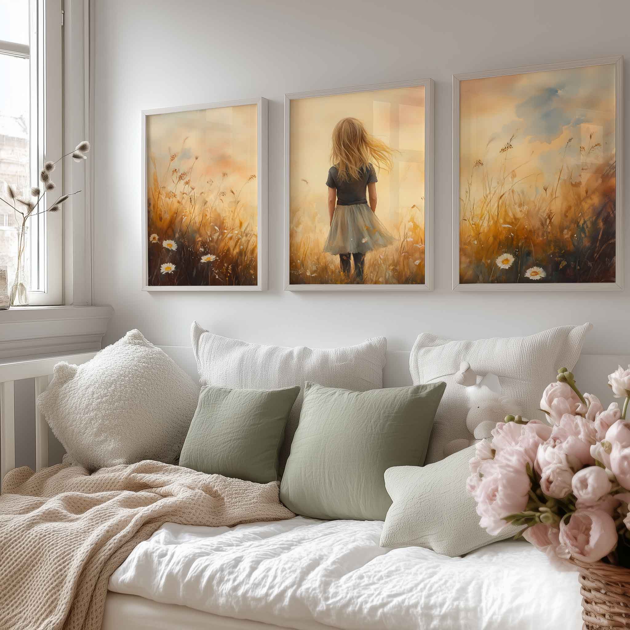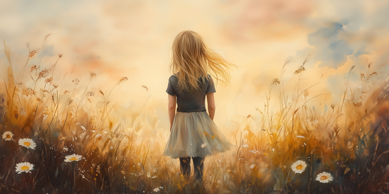 Terug naar collectie Posters Zacht Dromerig Meisje in Bloeiend Grasveld