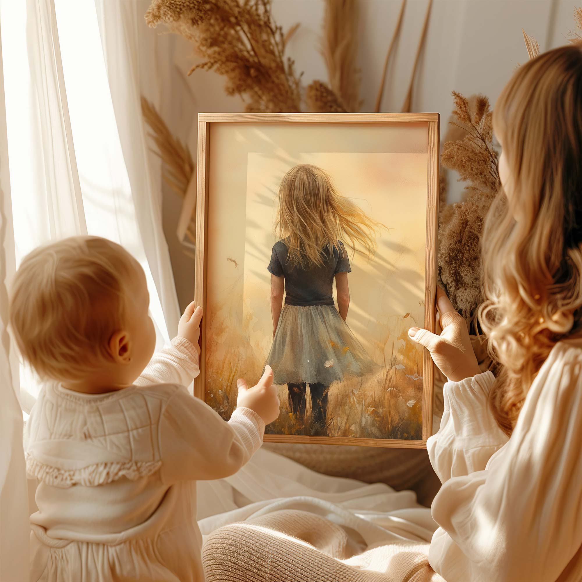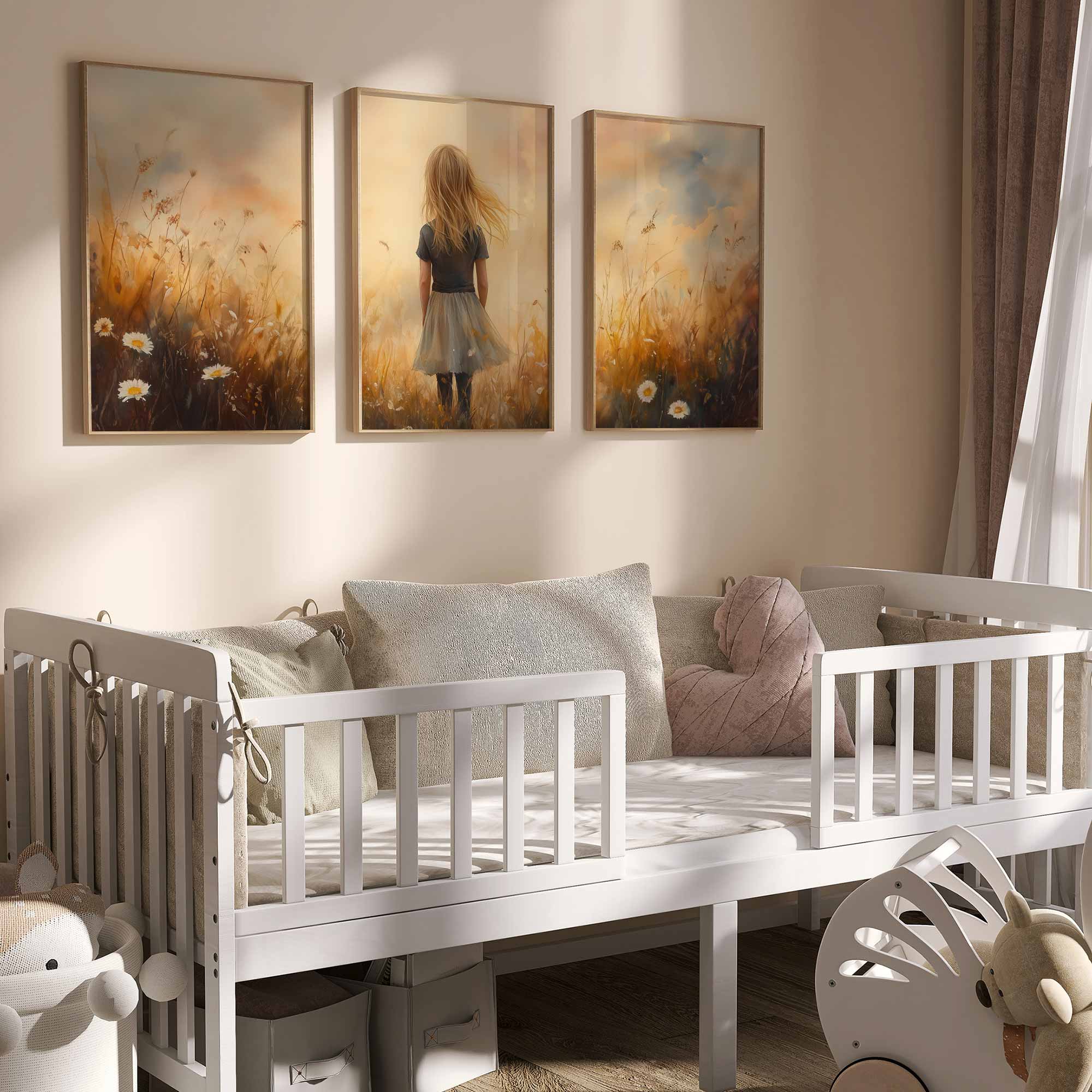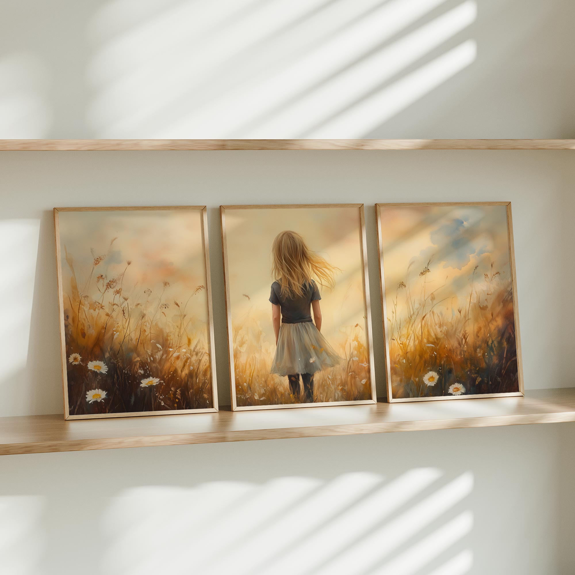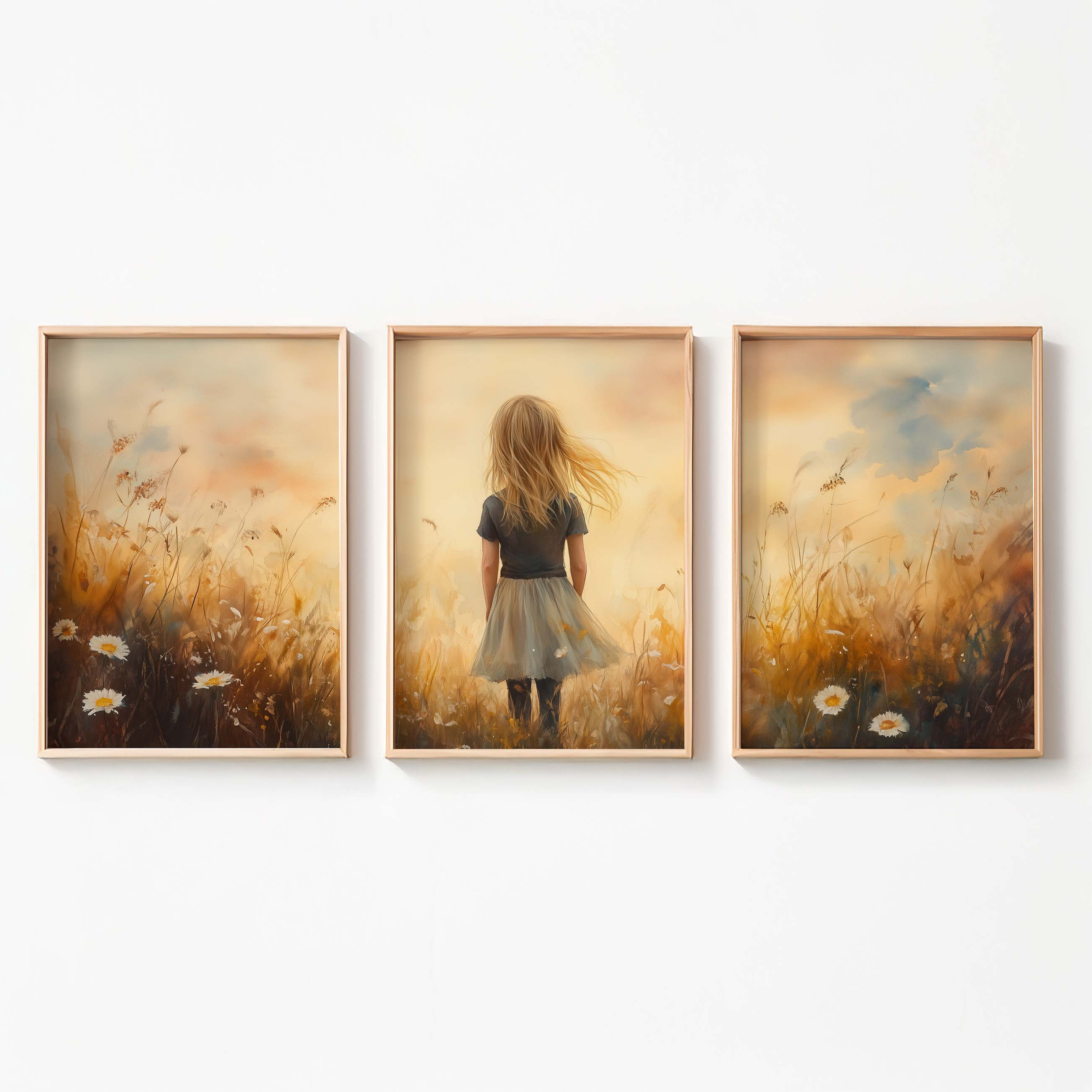 Terug naar collectie Posters Zacht Dromerig Meisje in Bloeiend Grasveld