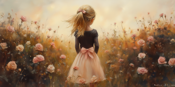 Terug naar collectie Posters Zacht Dromerig Meisje in Bloemenveld