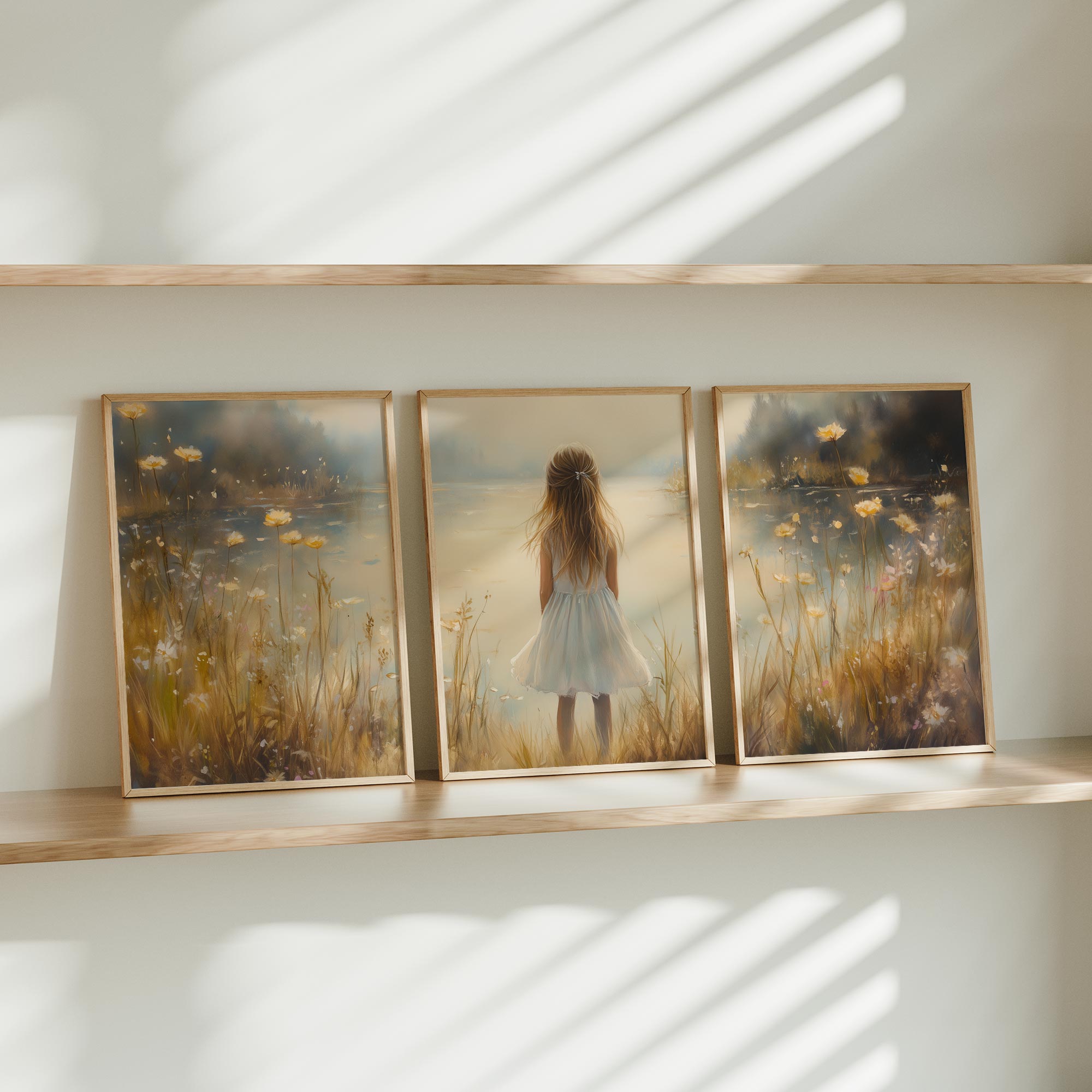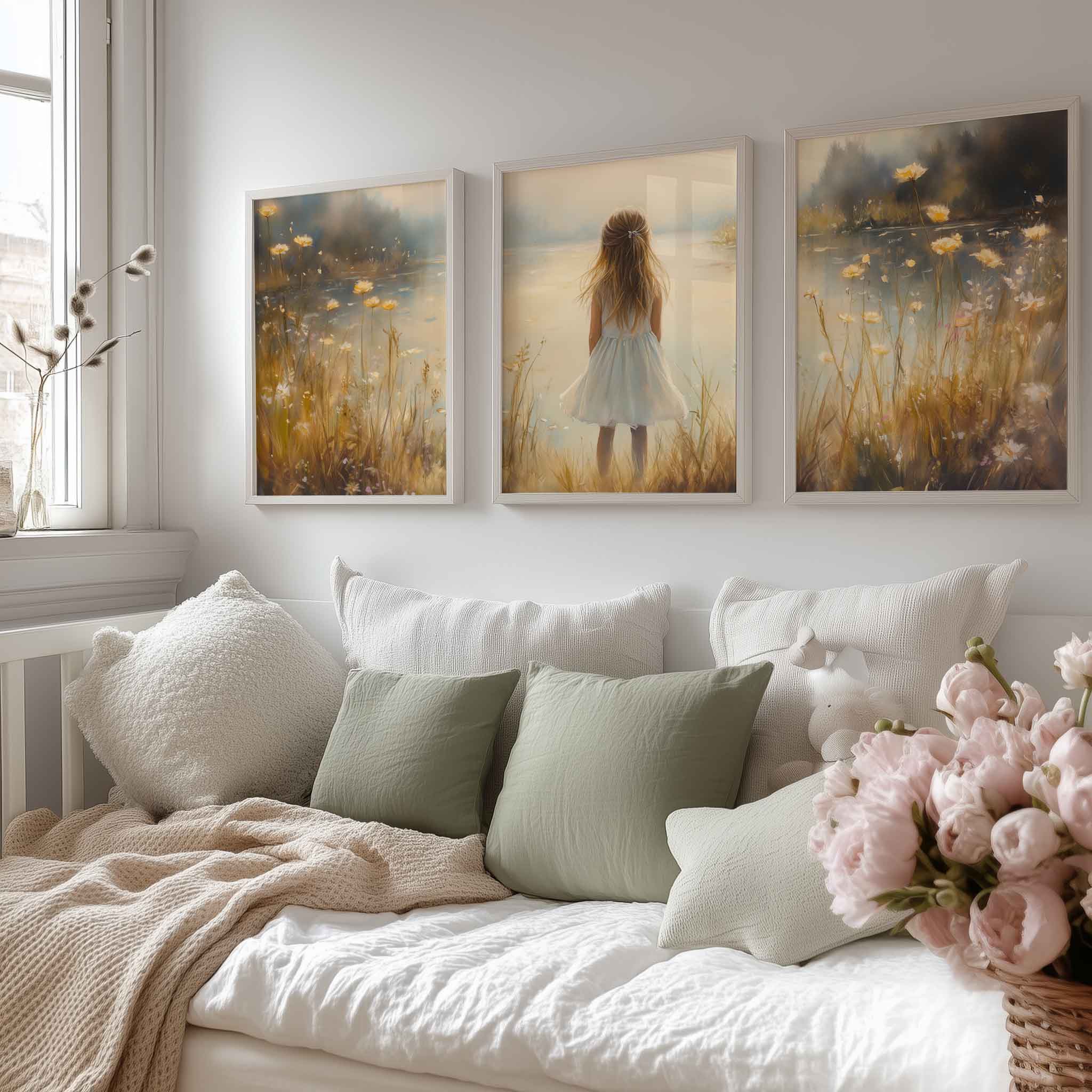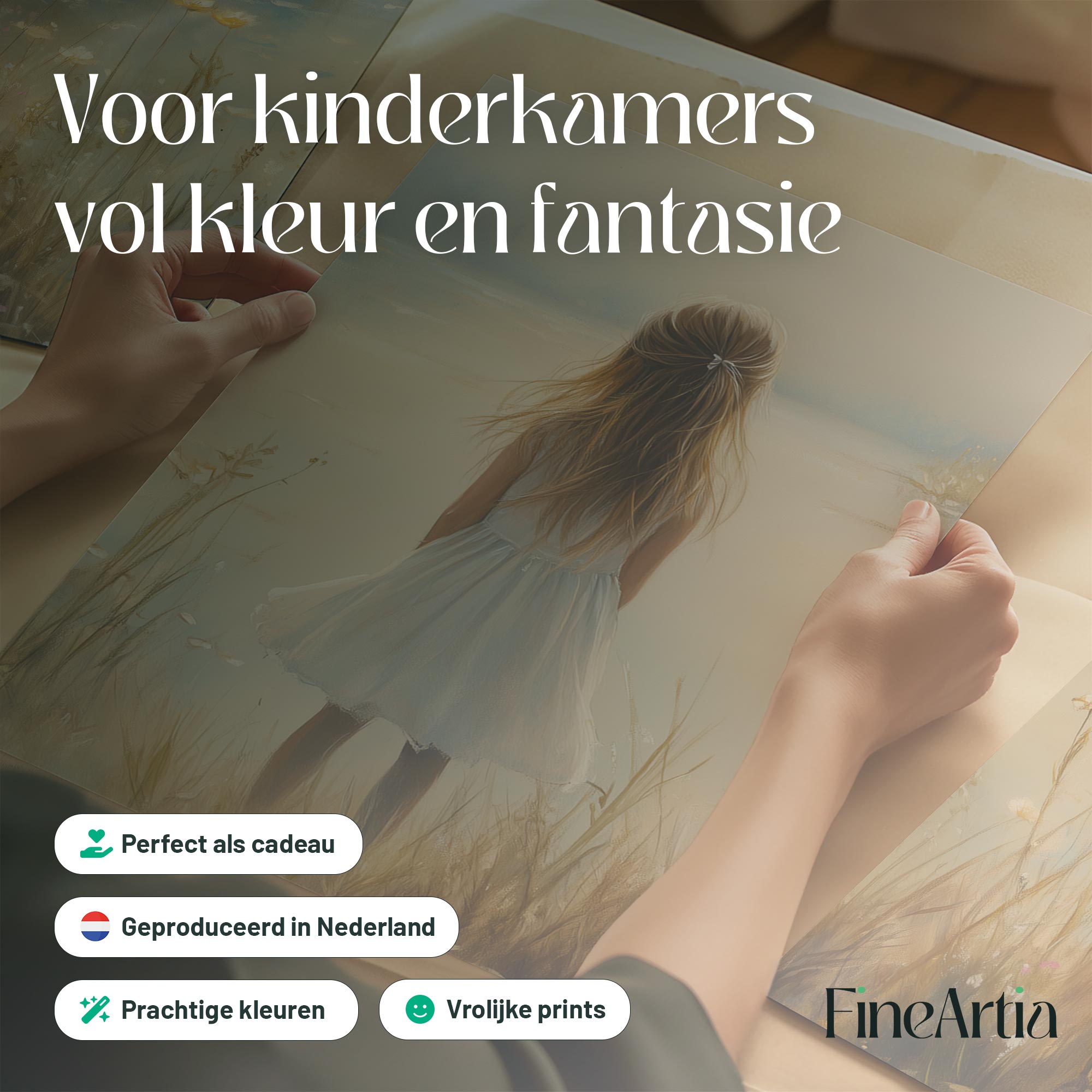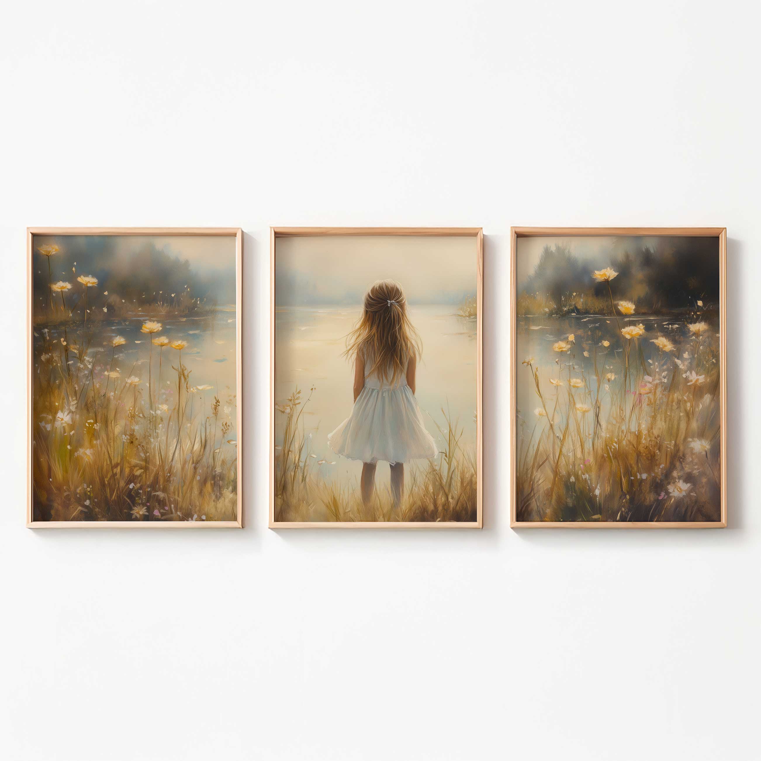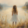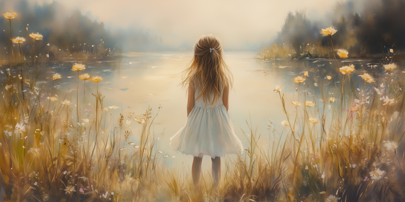 Zacht Dromerig Meisje in Bloemenveld bij Water