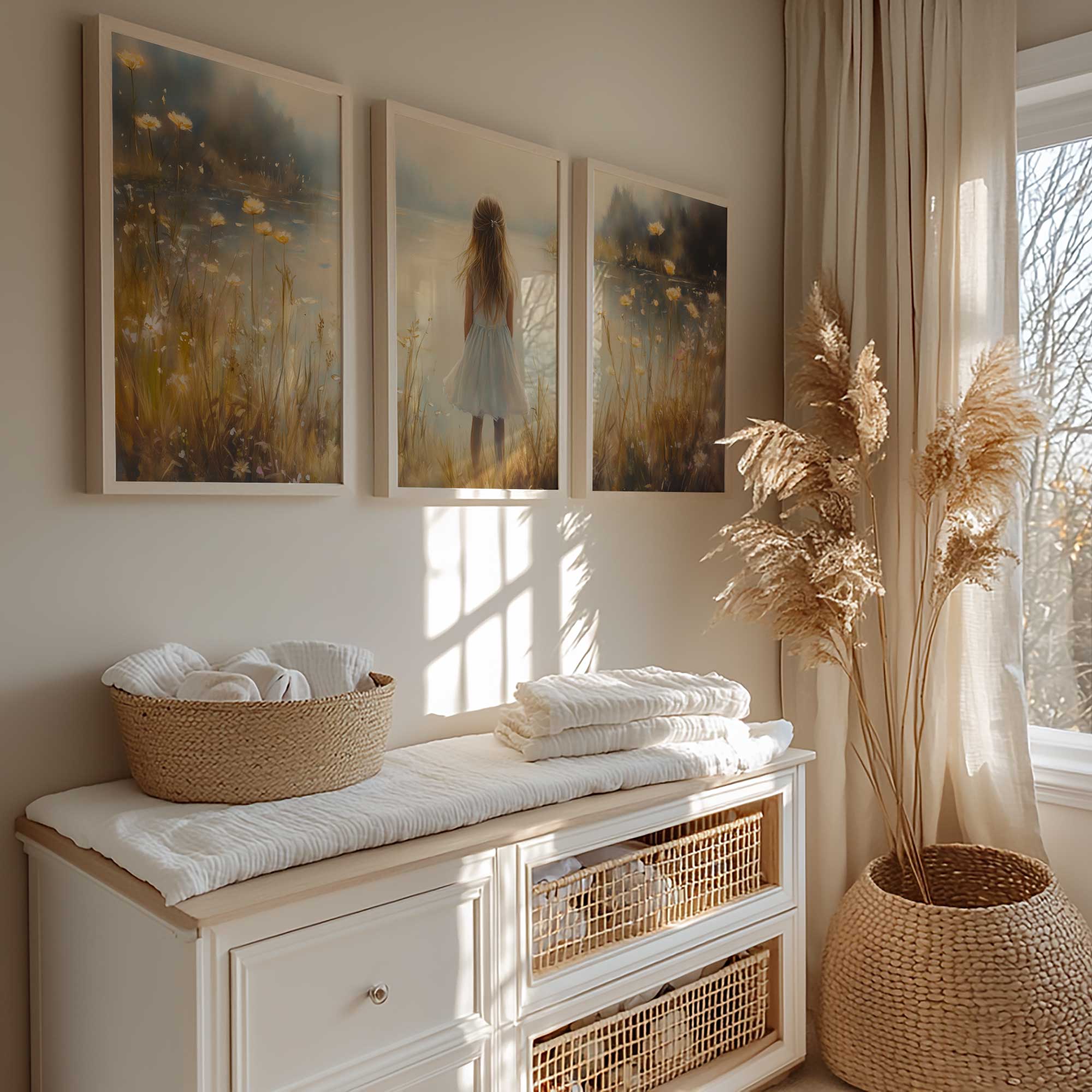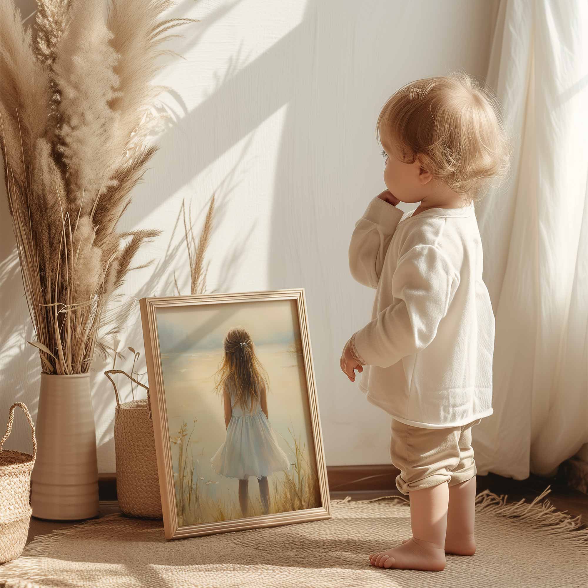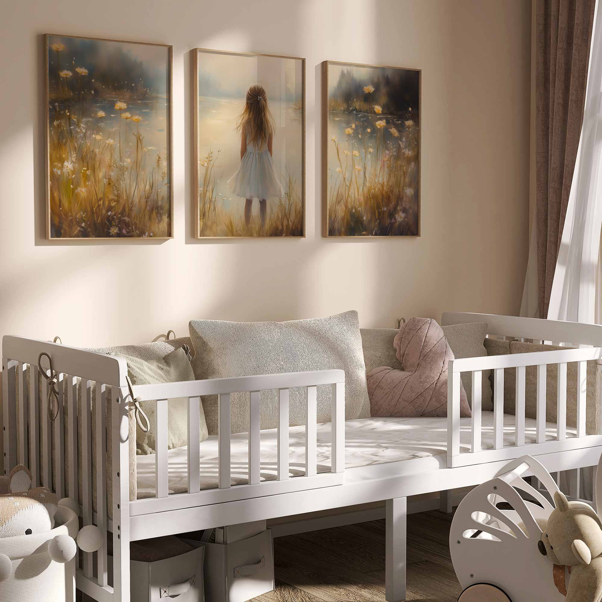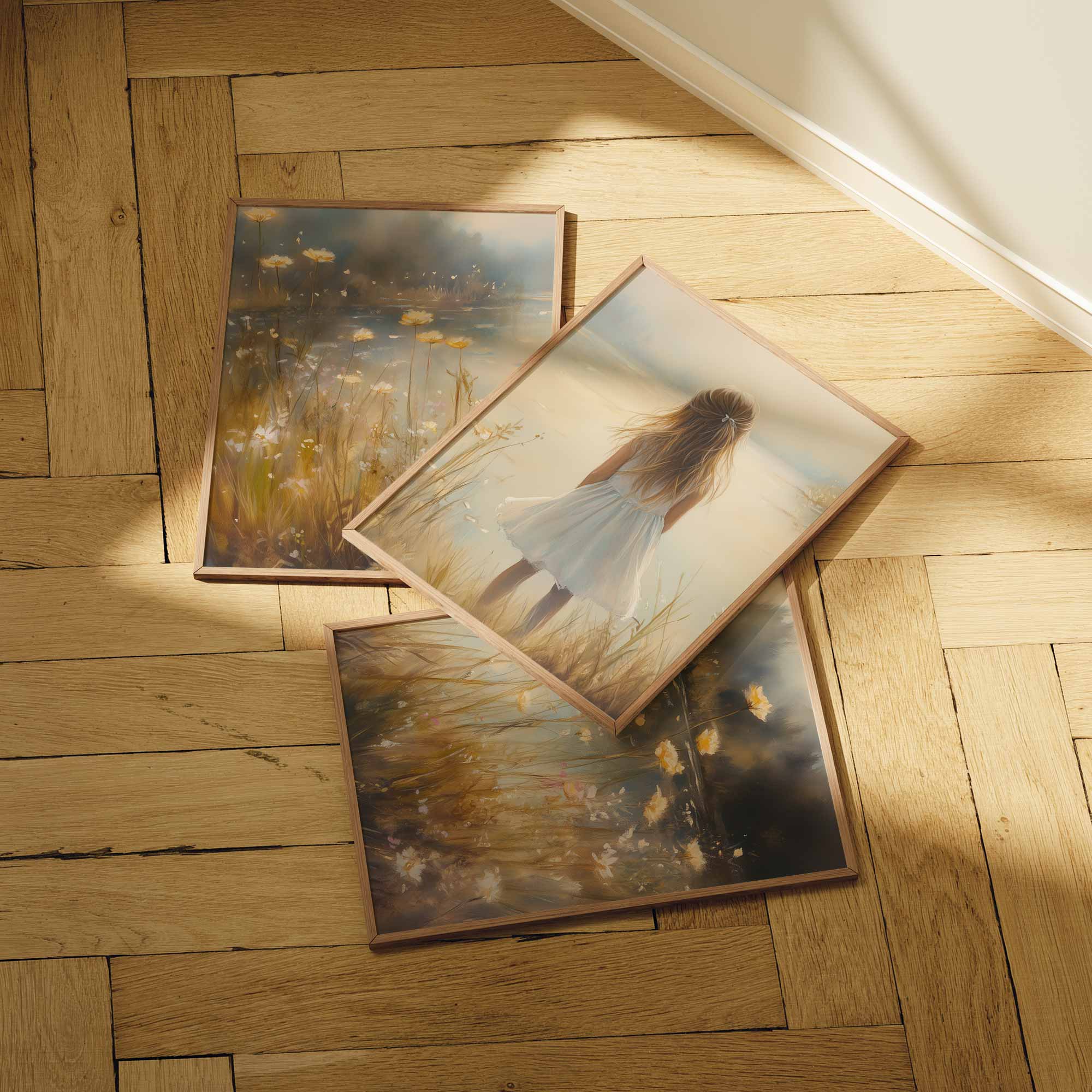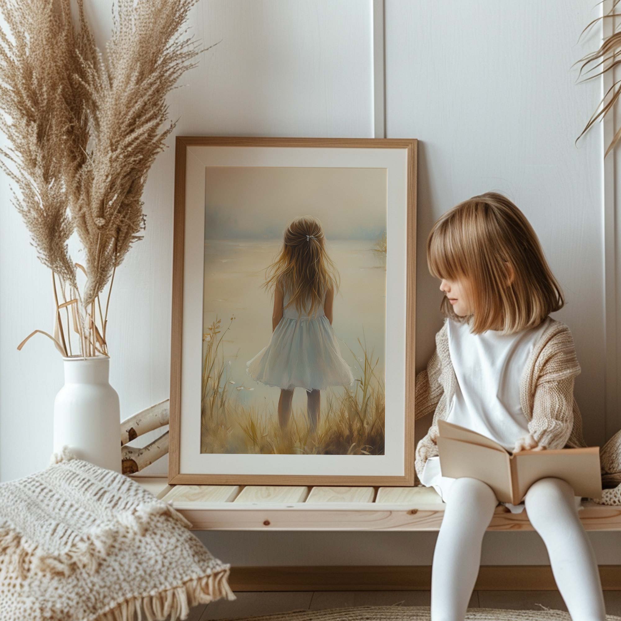 Zacht Dromerig Meisje in Bloemenveld bij Water