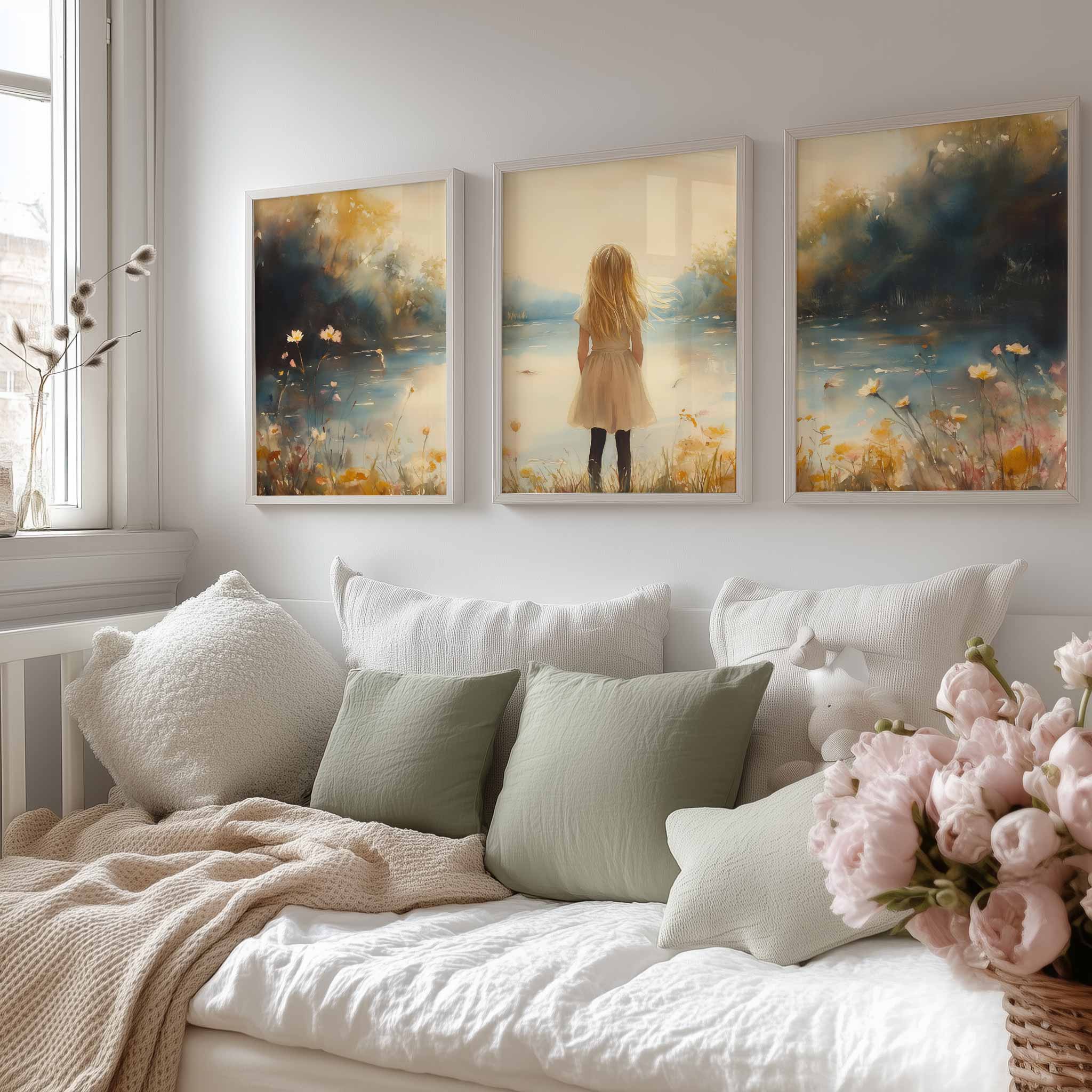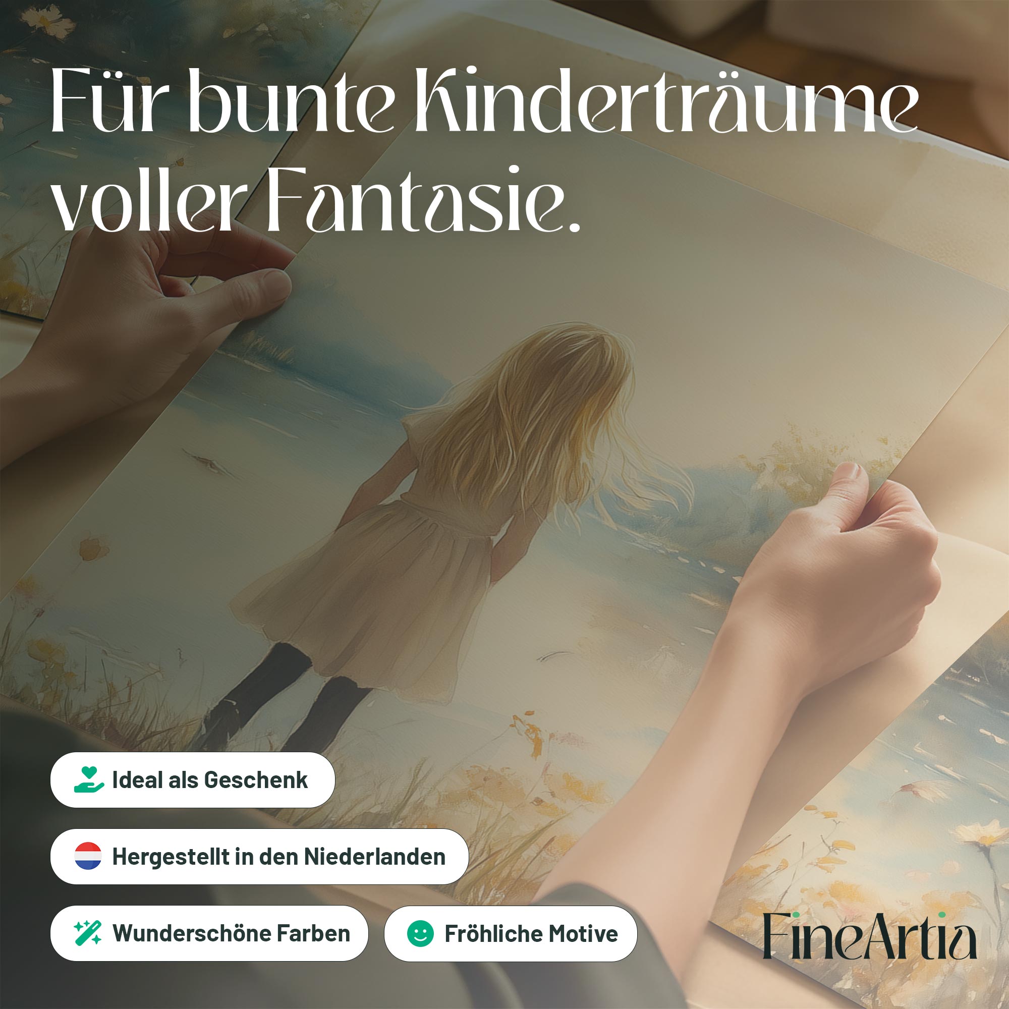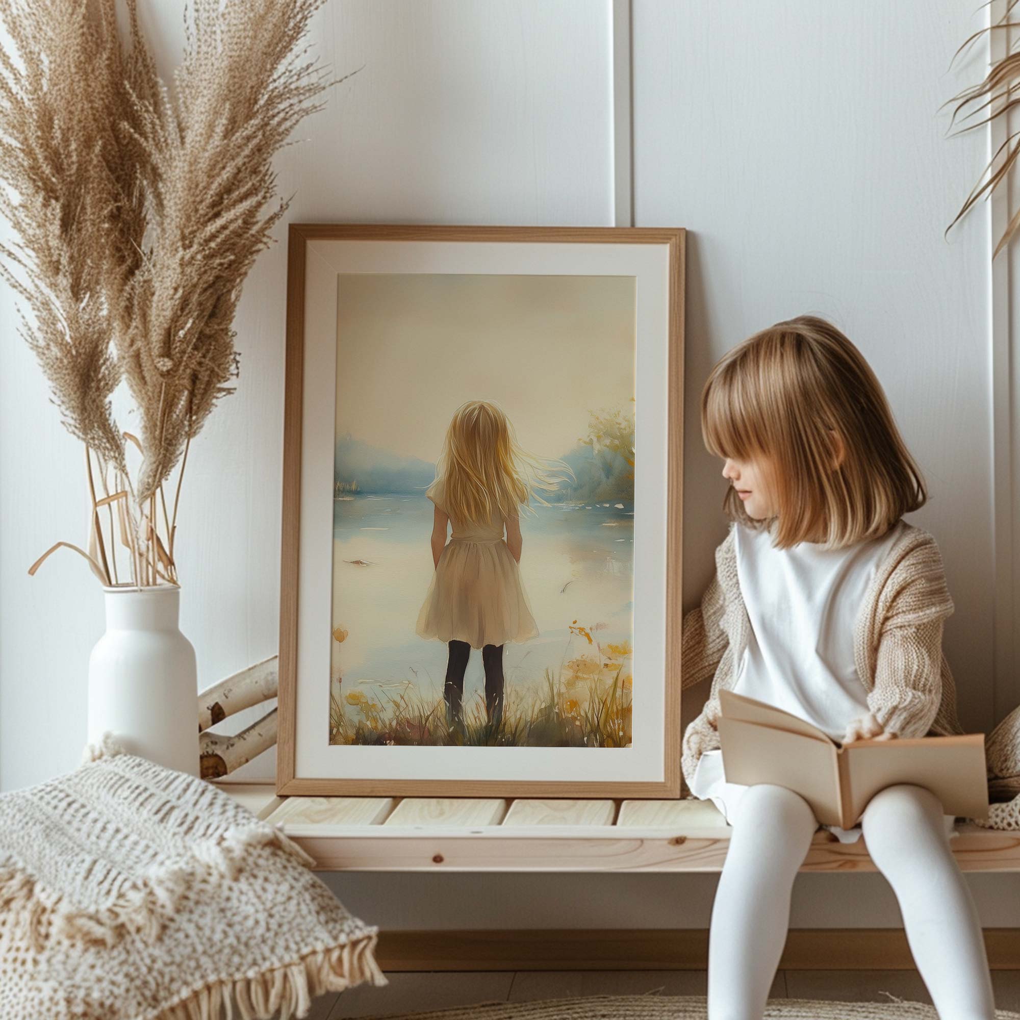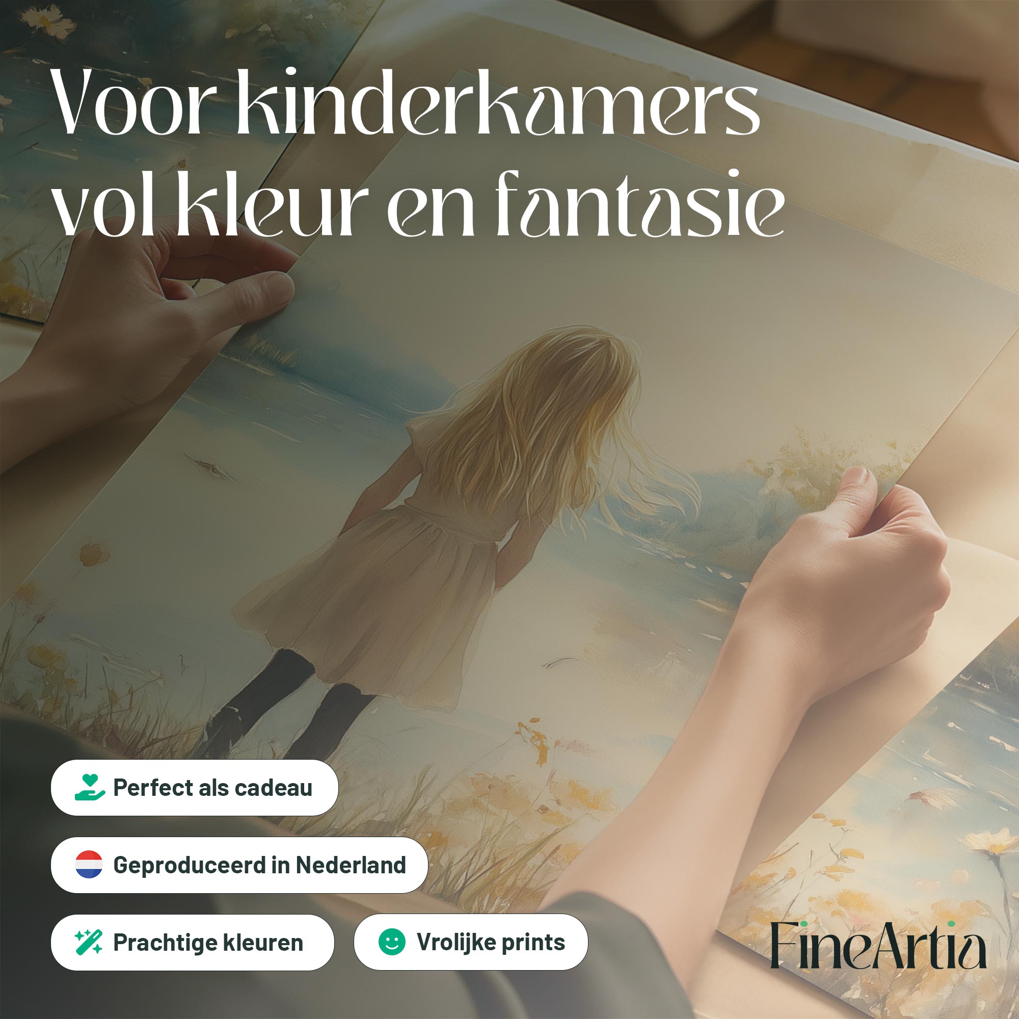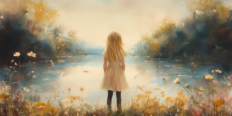 Zacht Dromerig Meisje in Bloemenveld bij Water