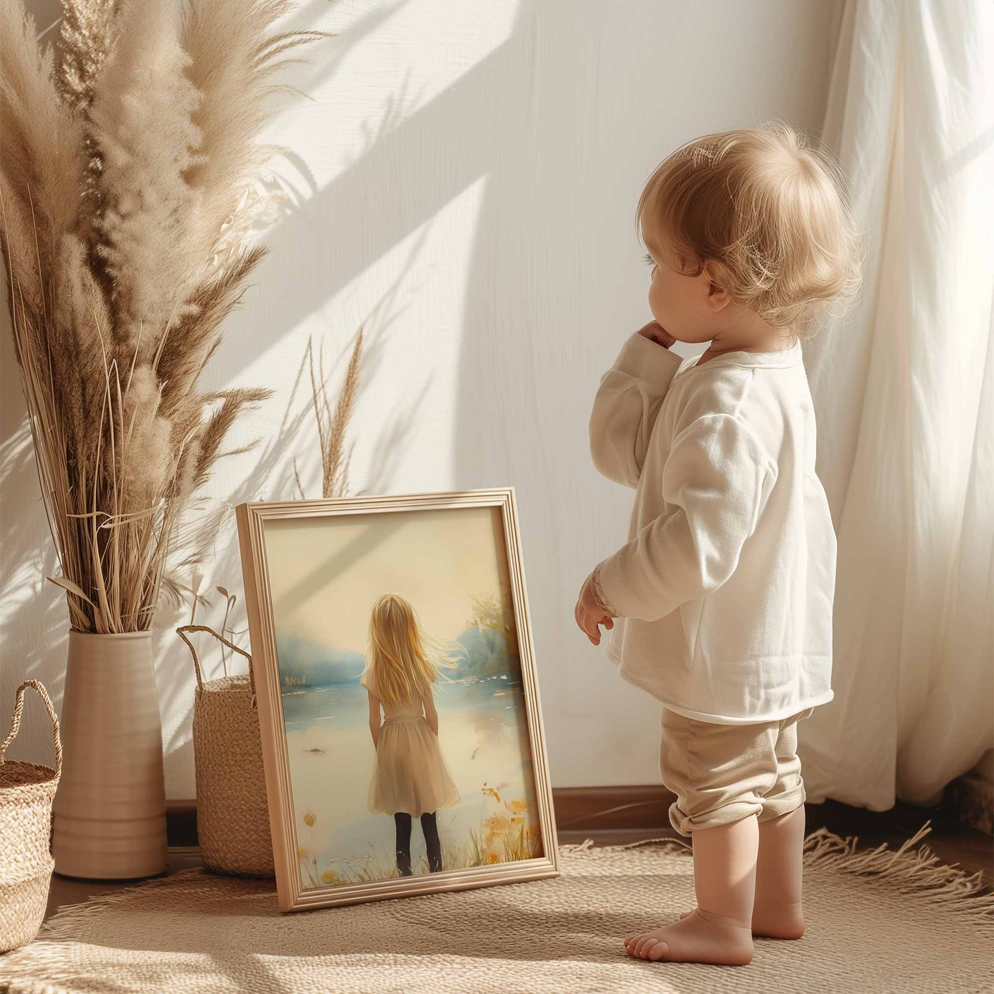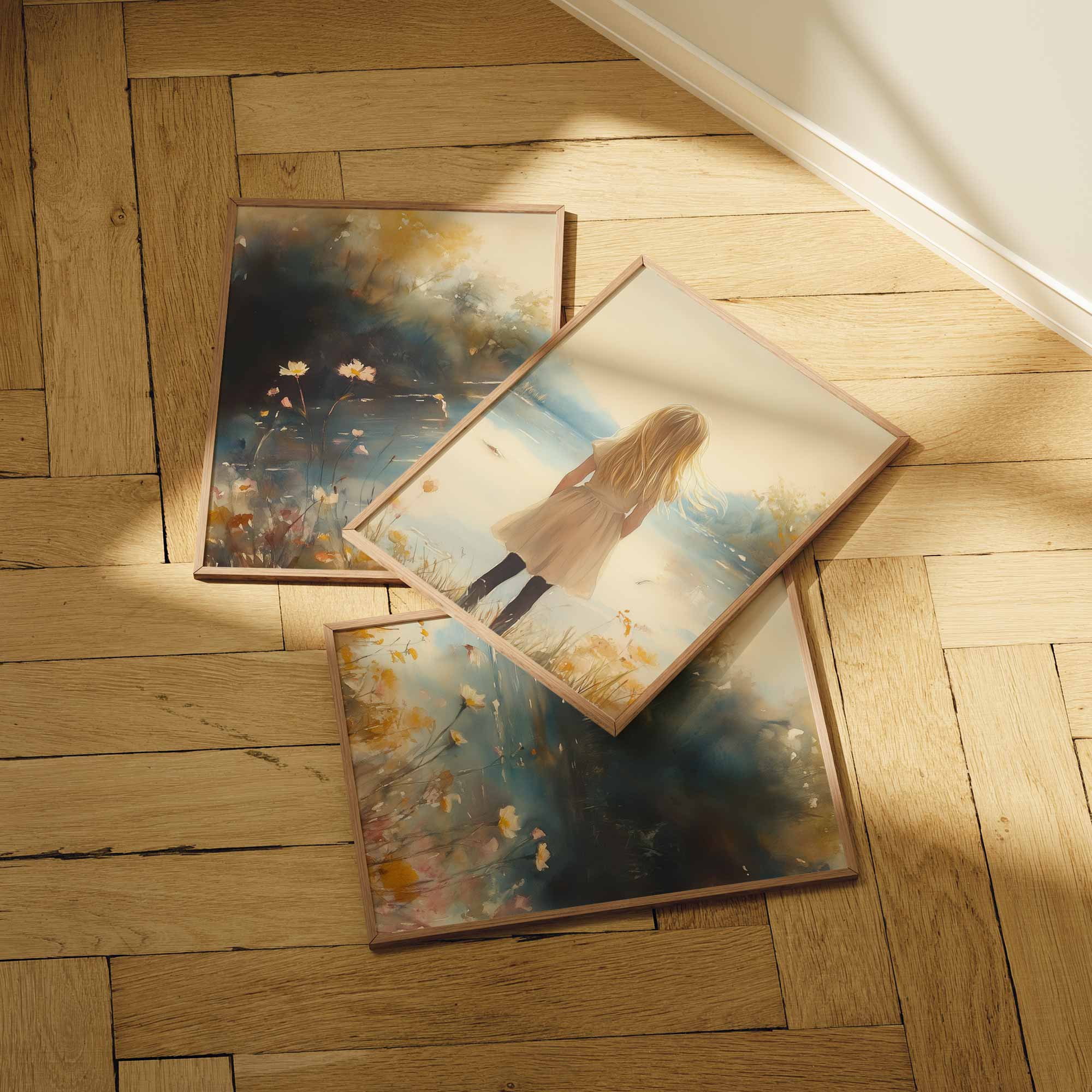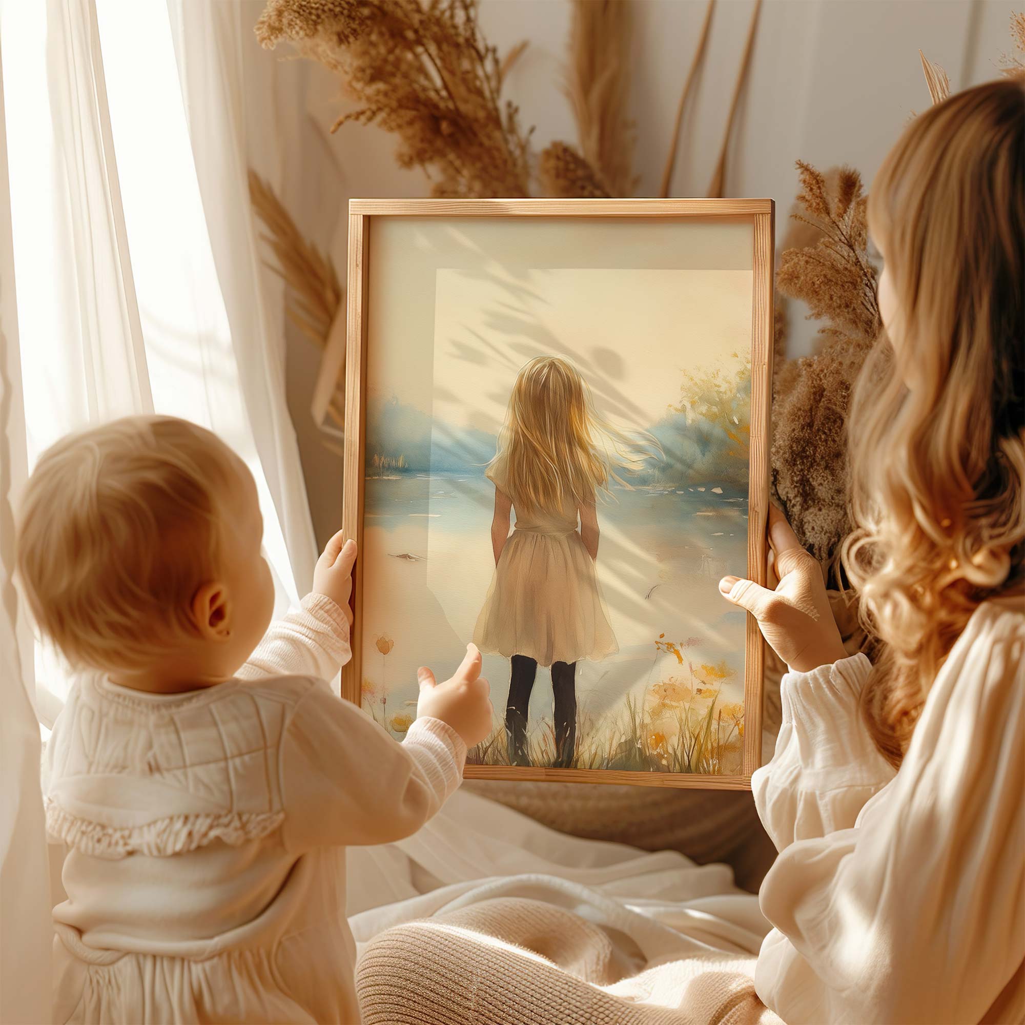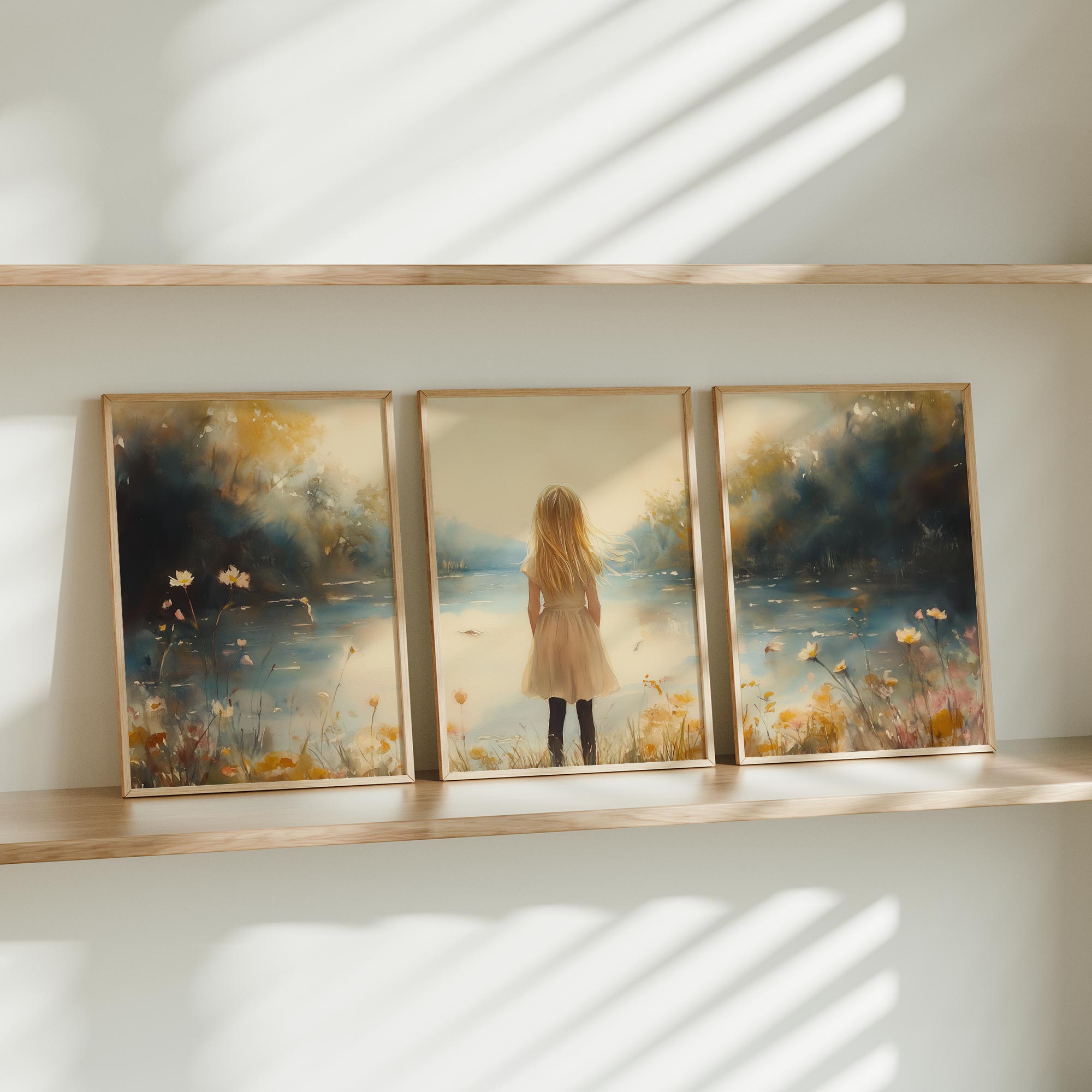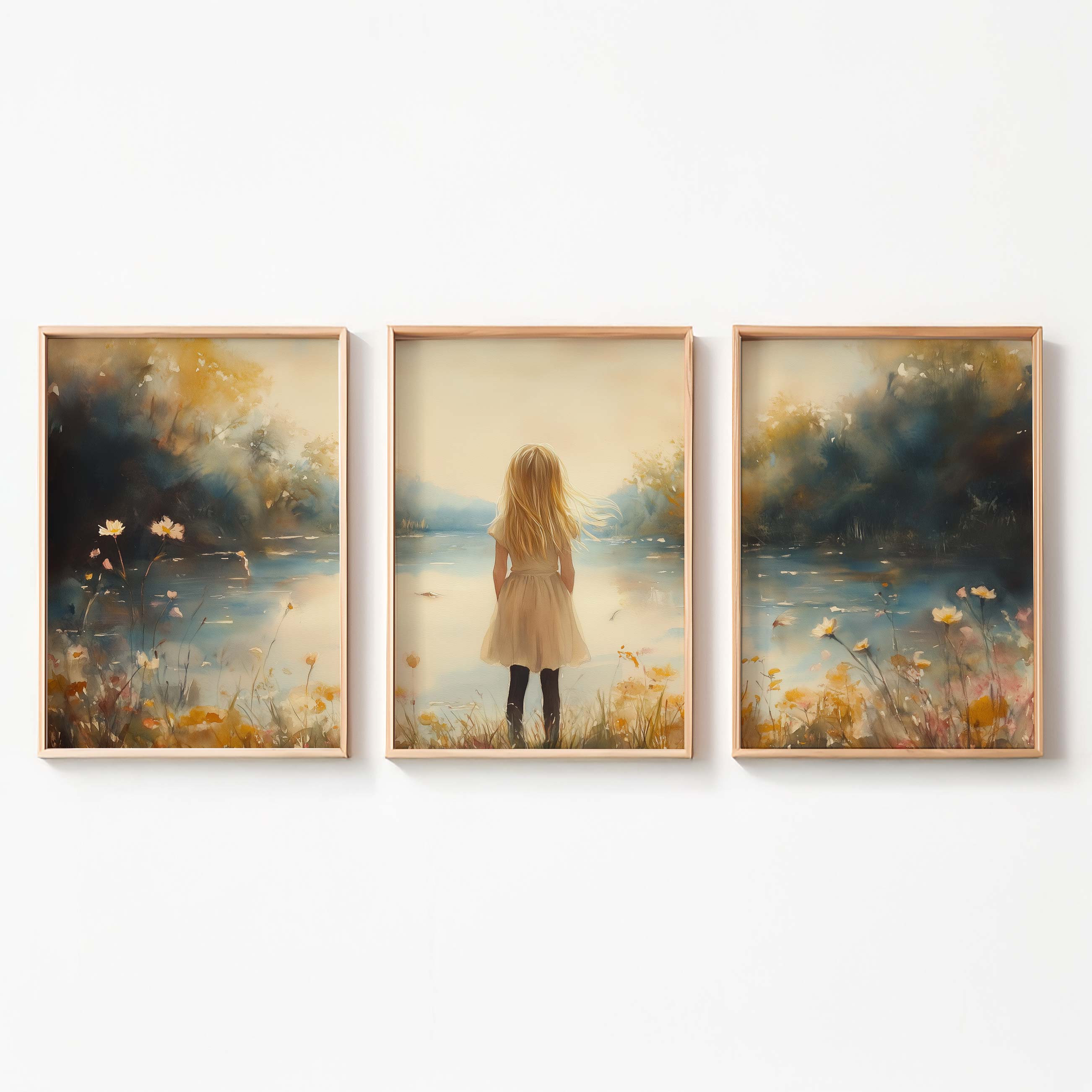 Zacht Dromerig Meisje in Bloemenveld bij Water