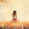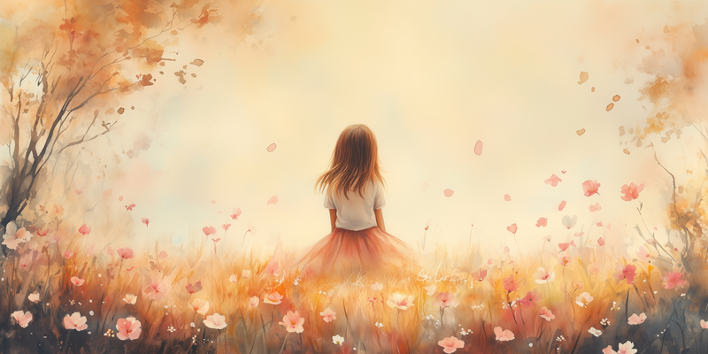 Zacht Dromerig Meisje in Bloemenveld – Pastel Sfeer