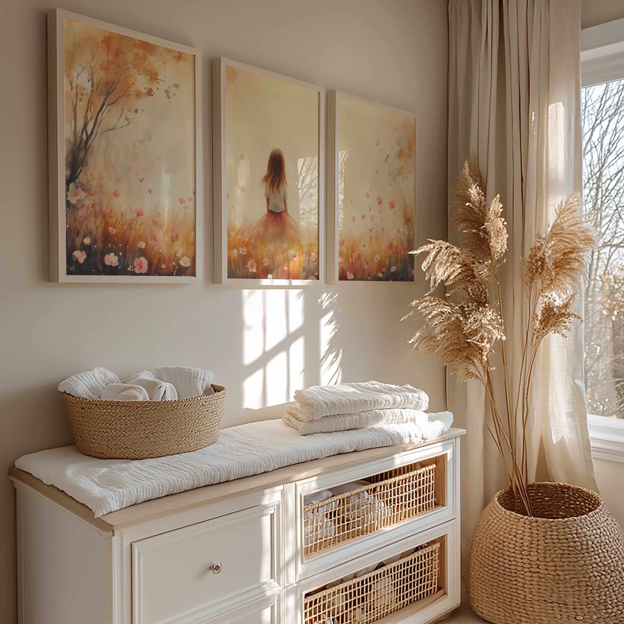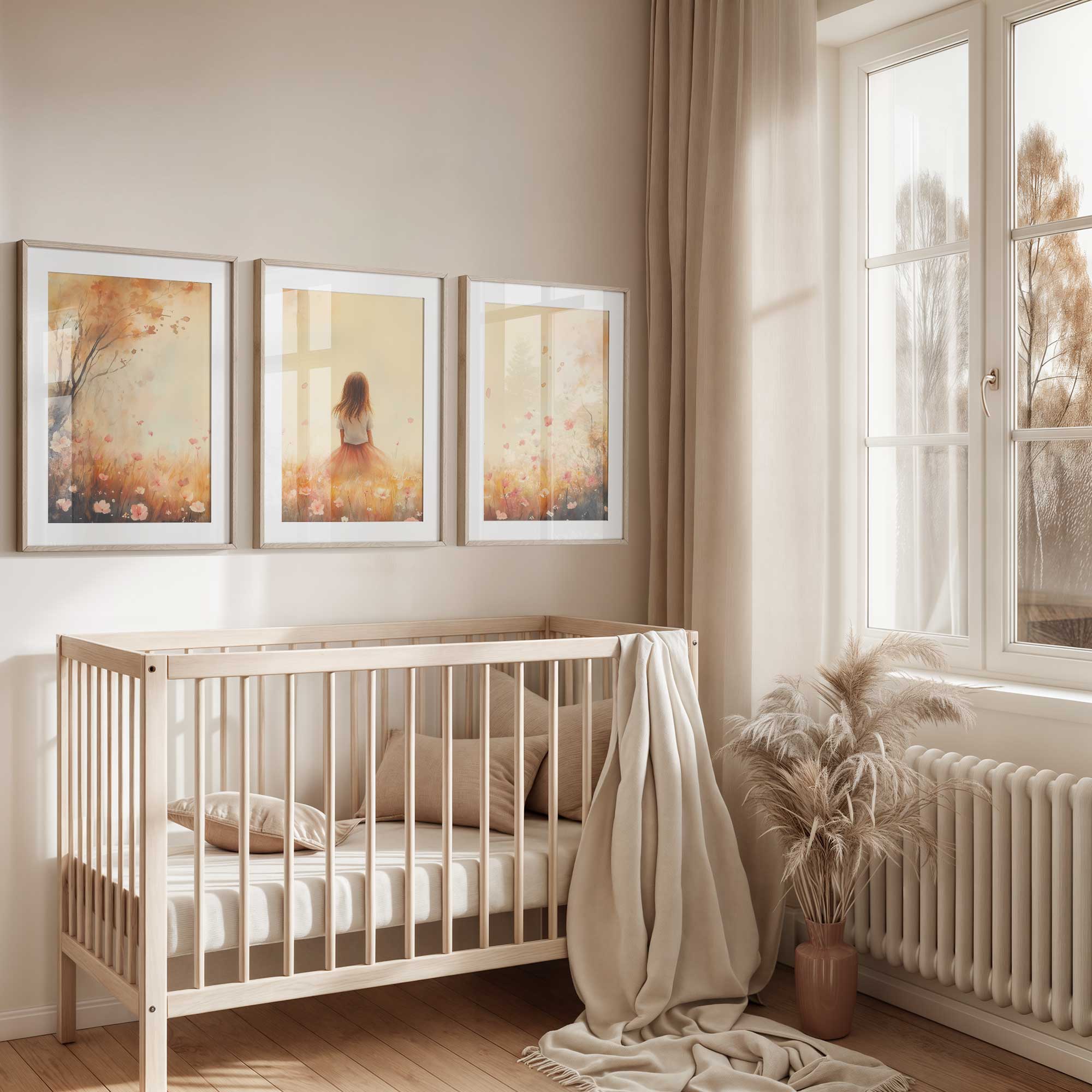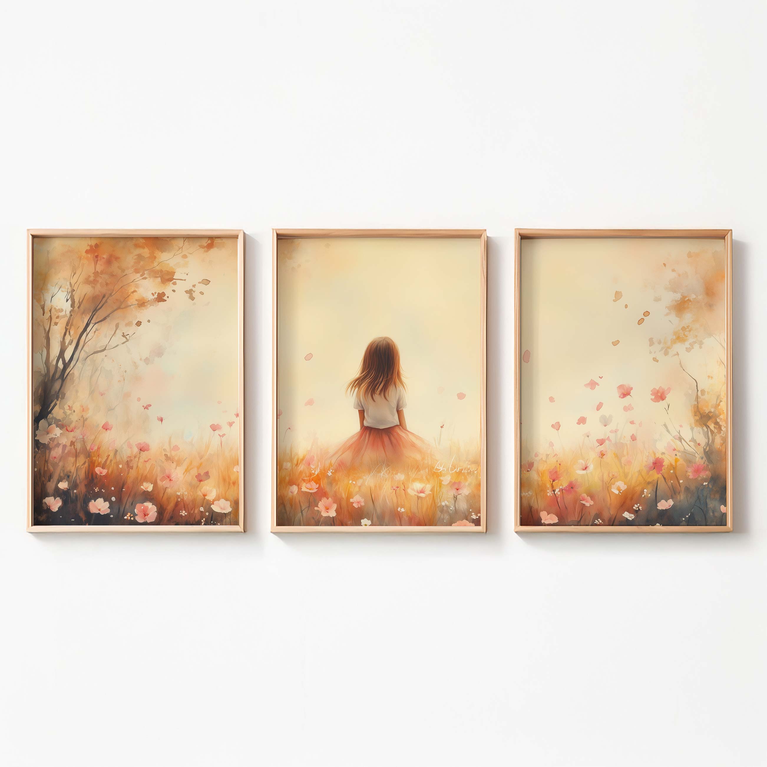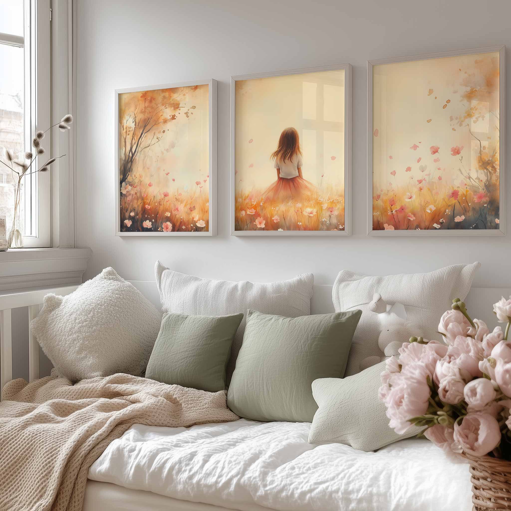 Terug naar collectie Posters Zacht Dromerig Meisje in Bloemenveld – Pastel Sfeer