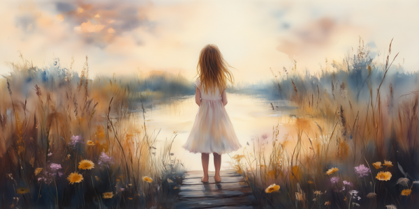 Zacht Dromerig Meisje op Bloeiende Brug