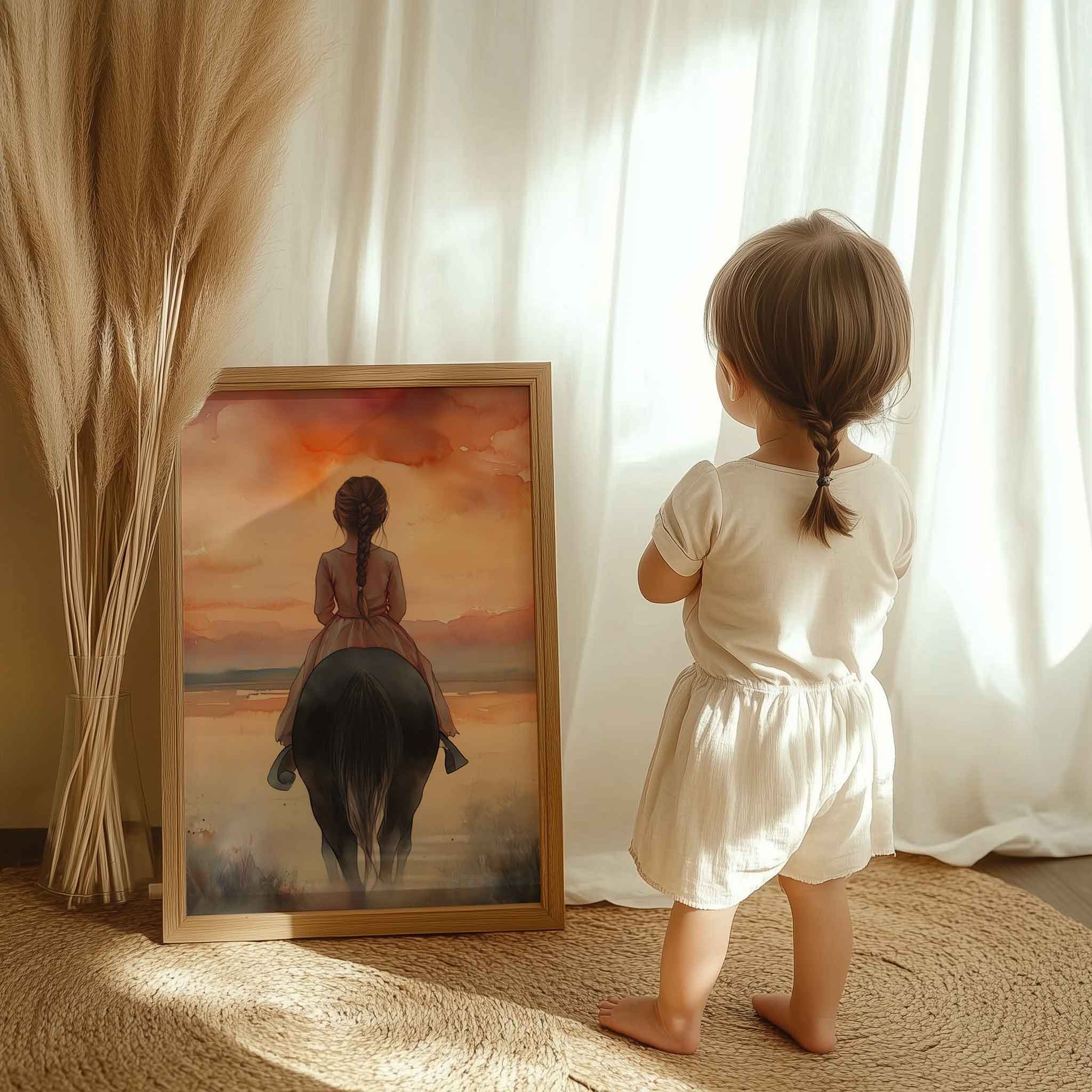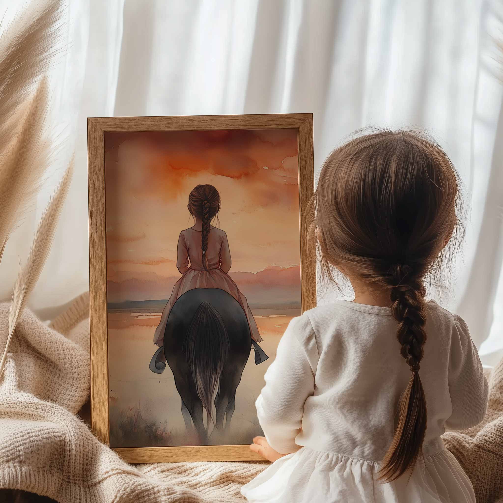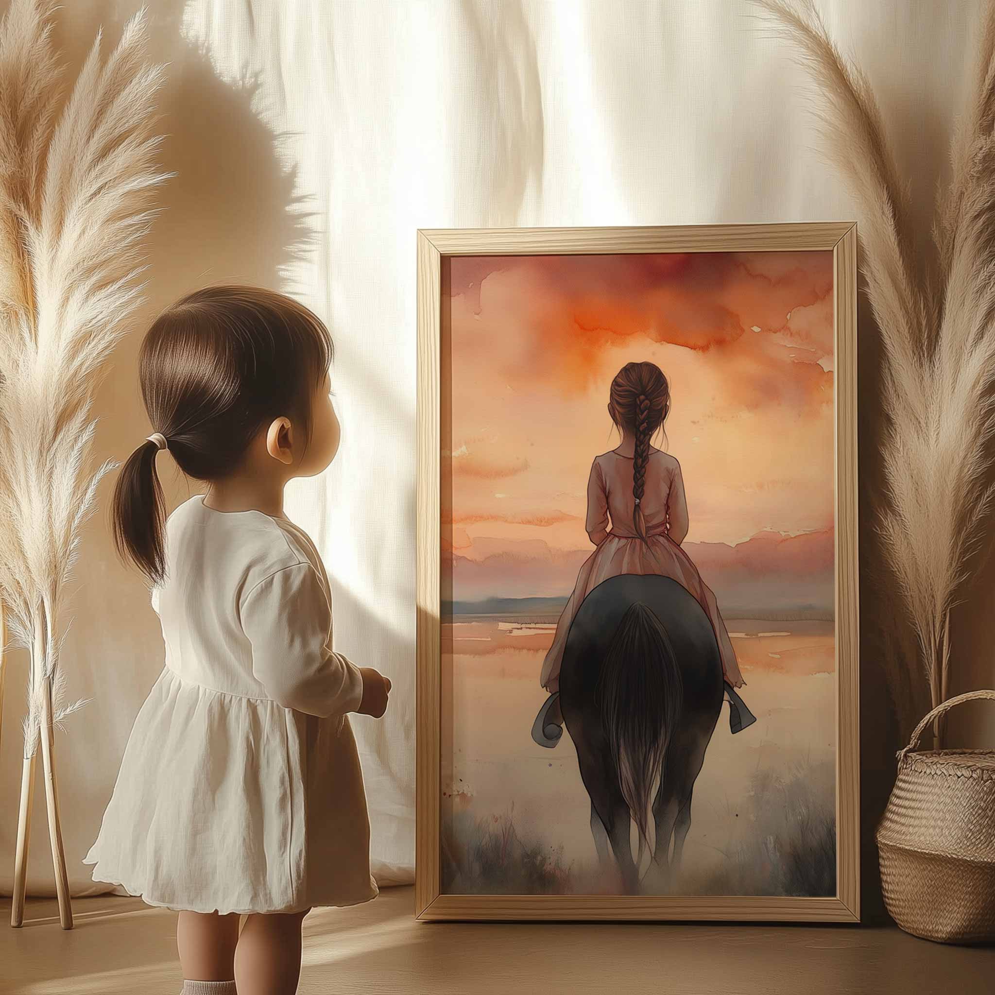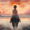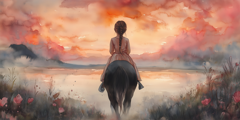 Zacht Dromerig Meisje op Paard in Bloeiend Landschap