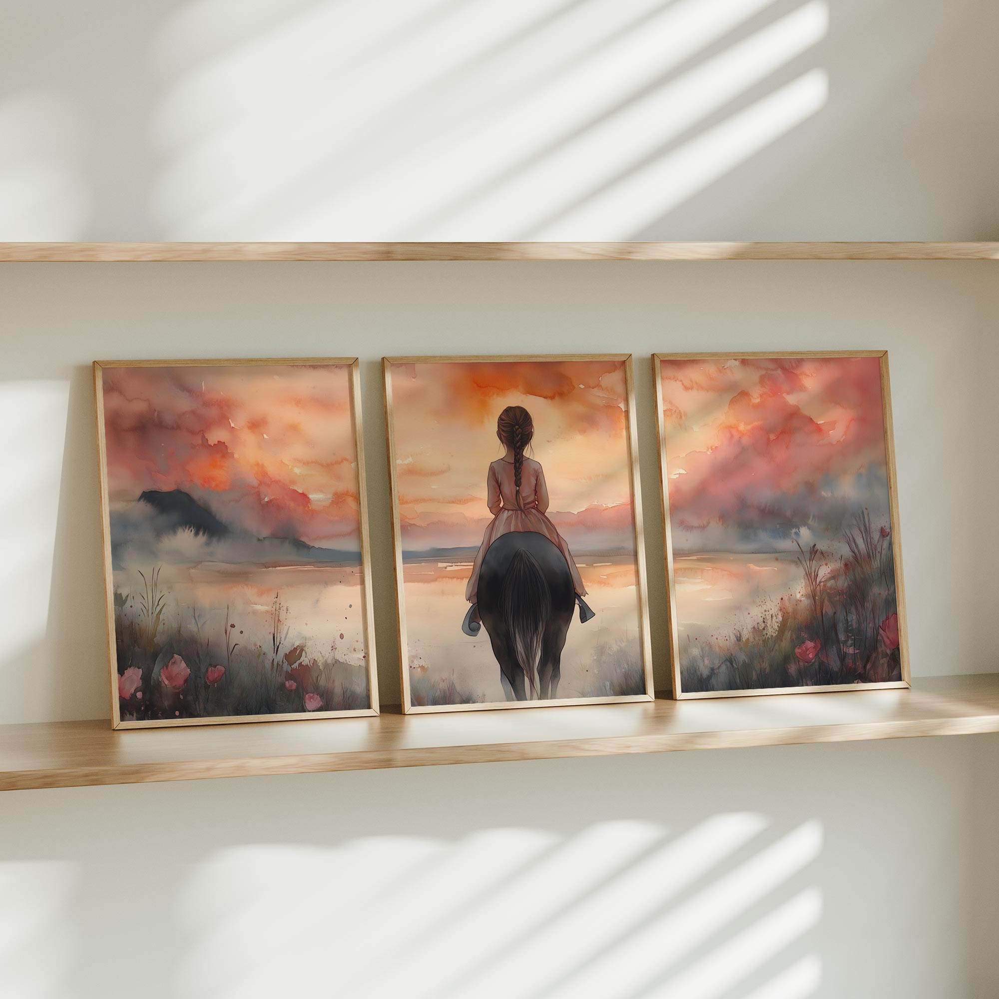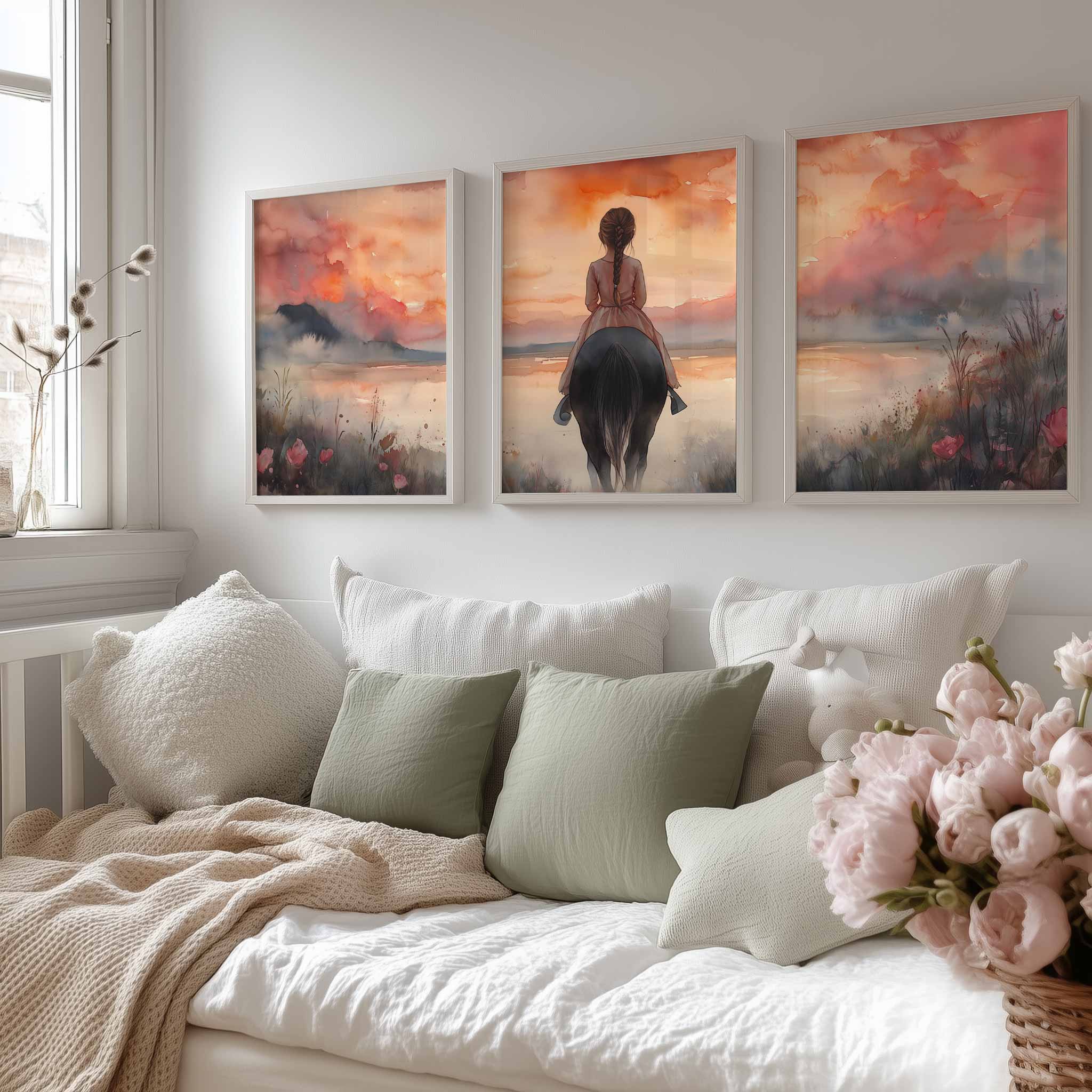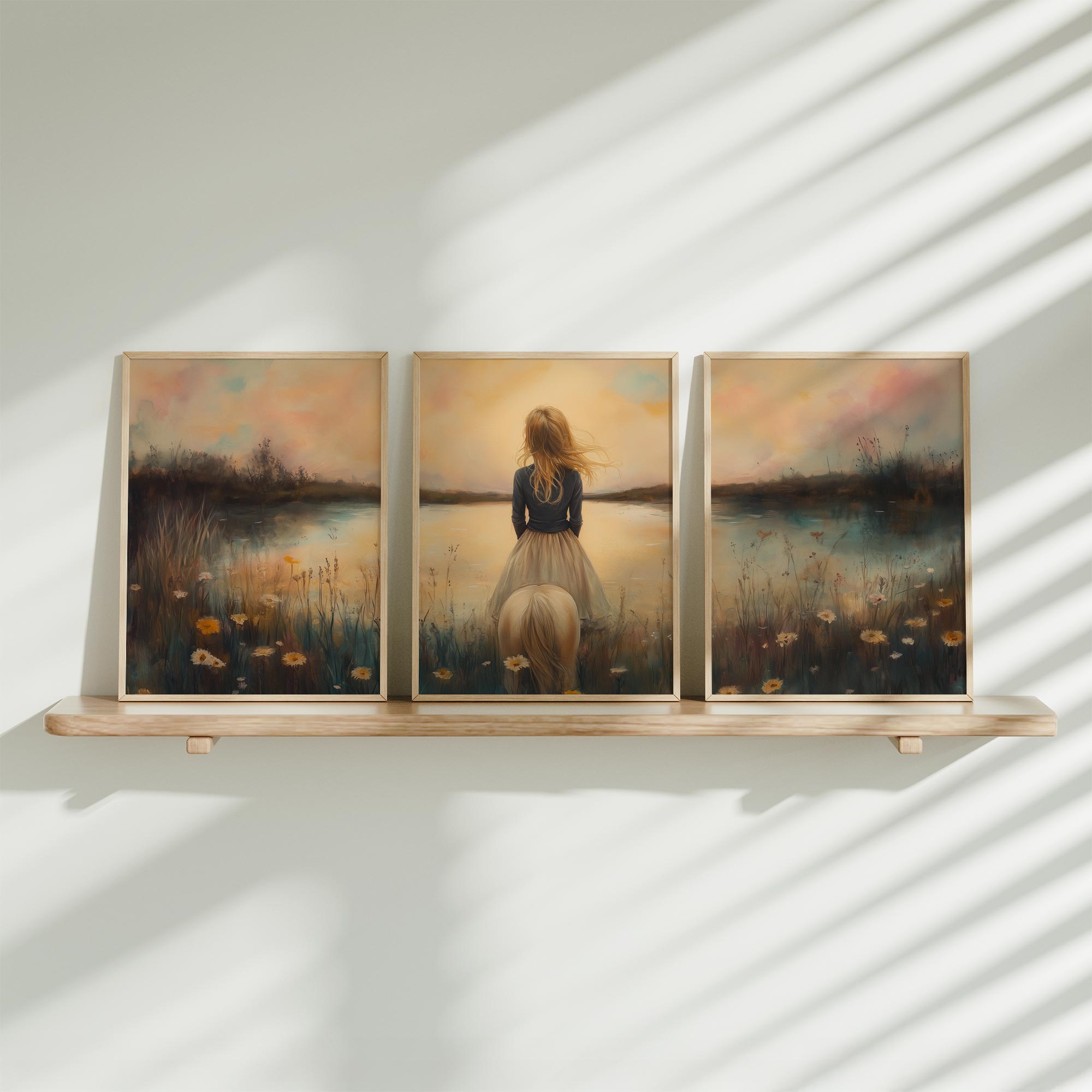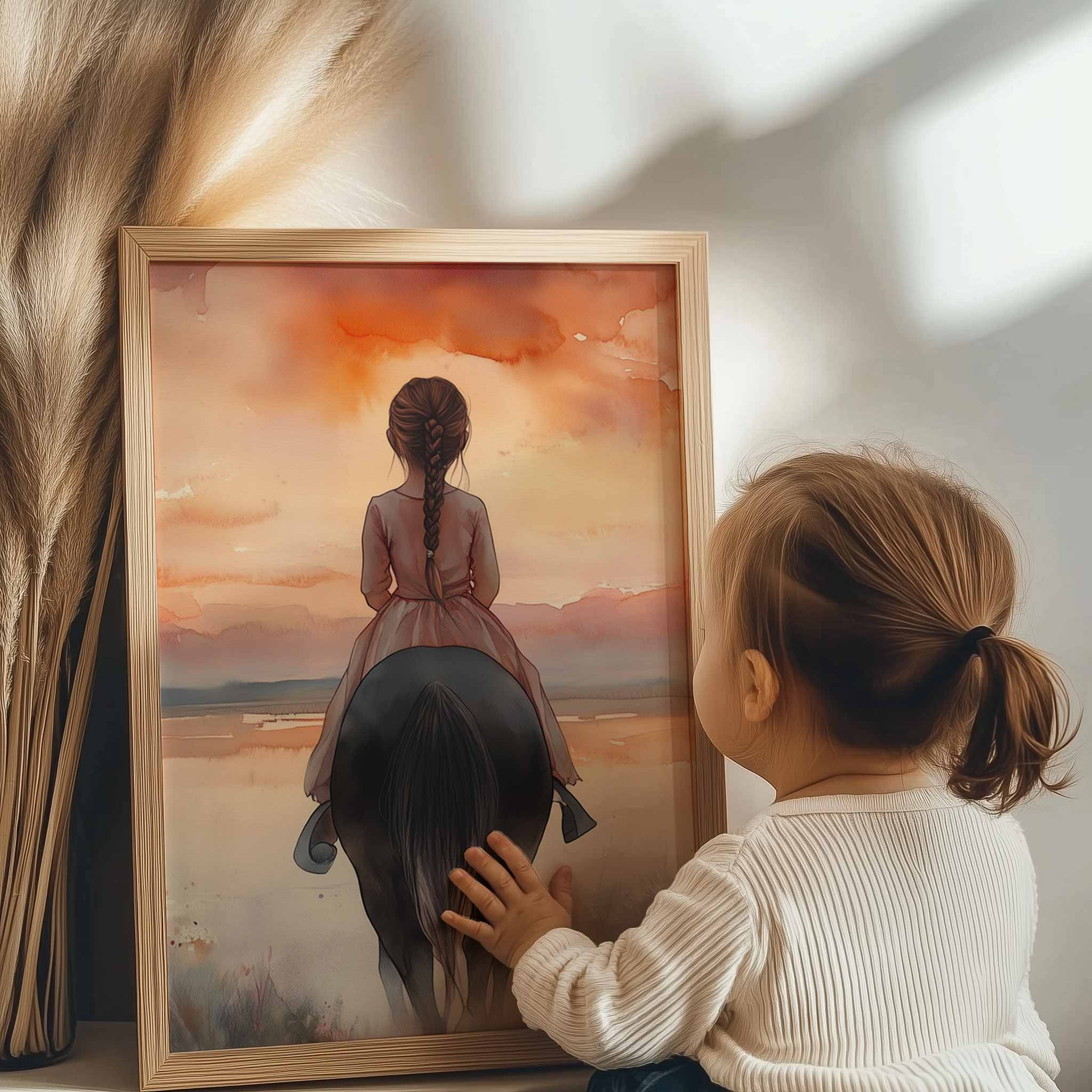 Zacht Dromerig Meisje op Paard in Bloeiend Landschap