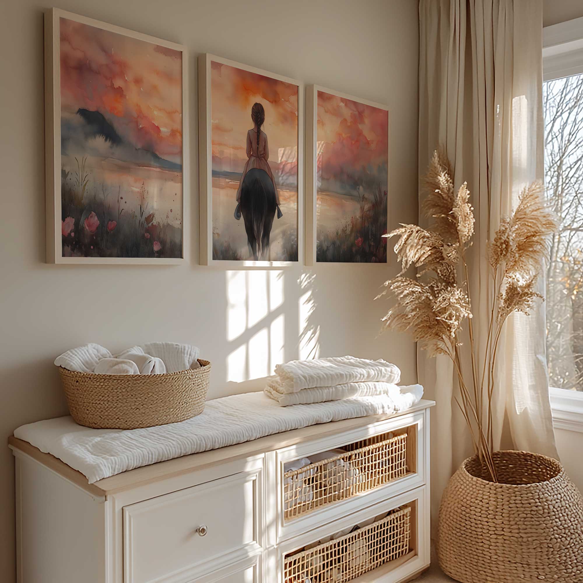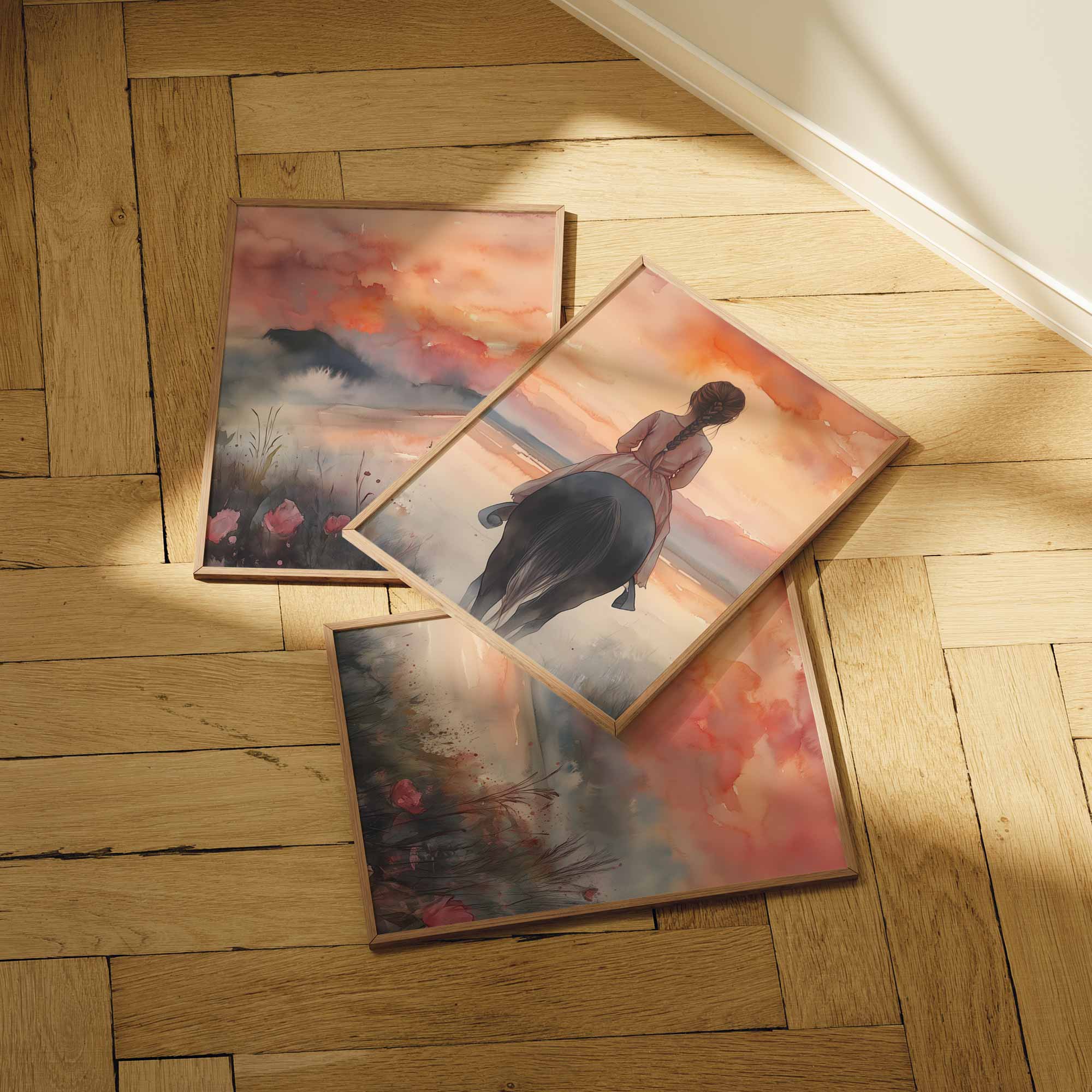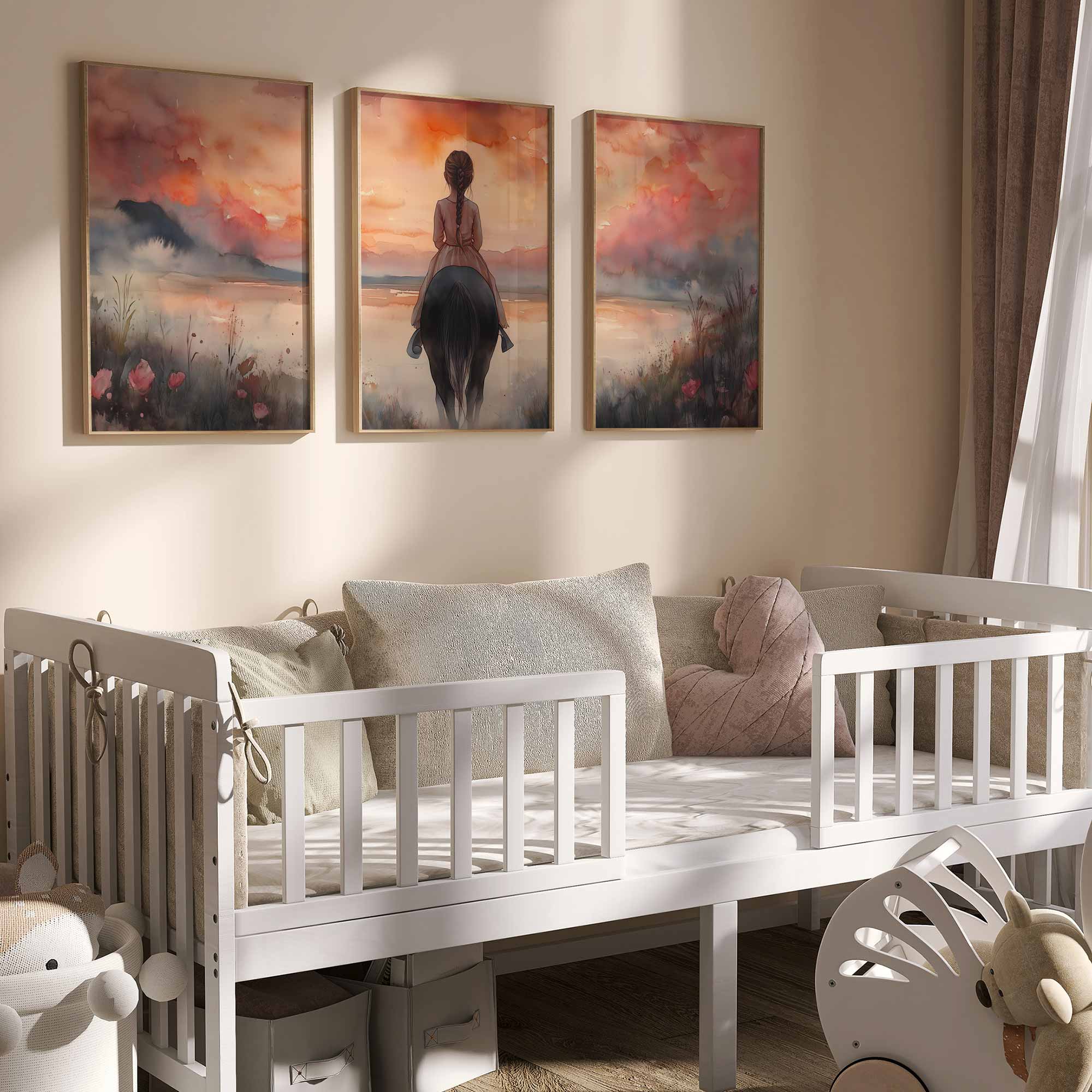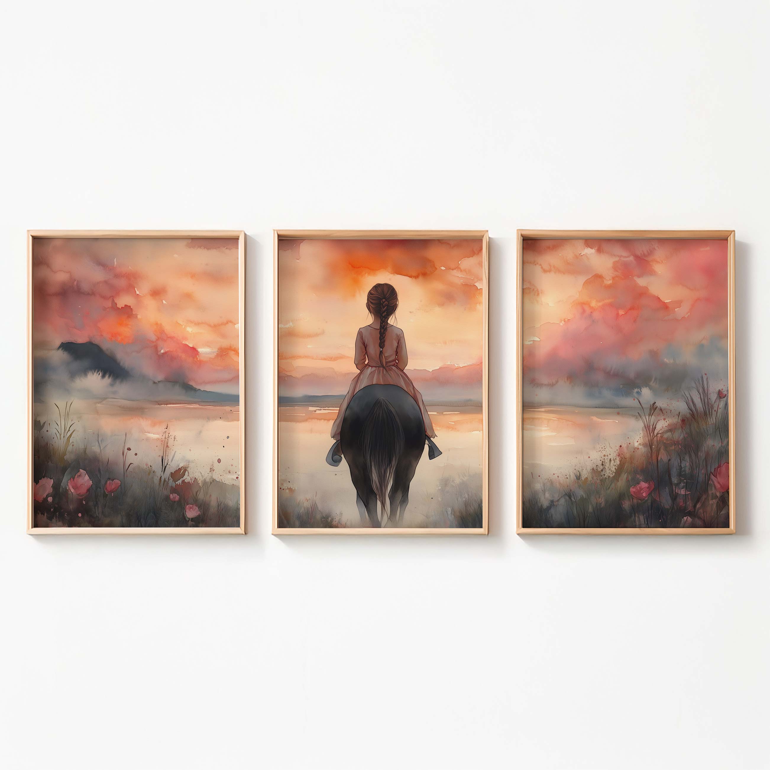 Zacht Dromerig Meisje op Paard in Bloeiend Landschap