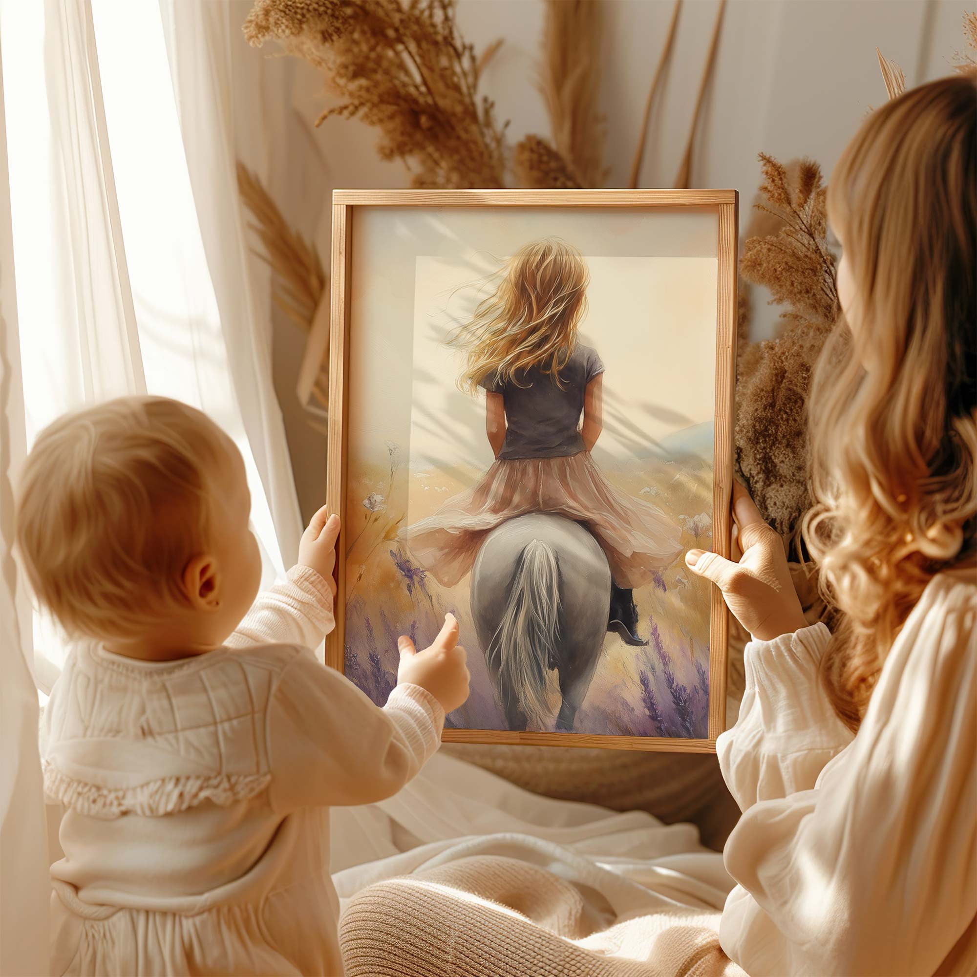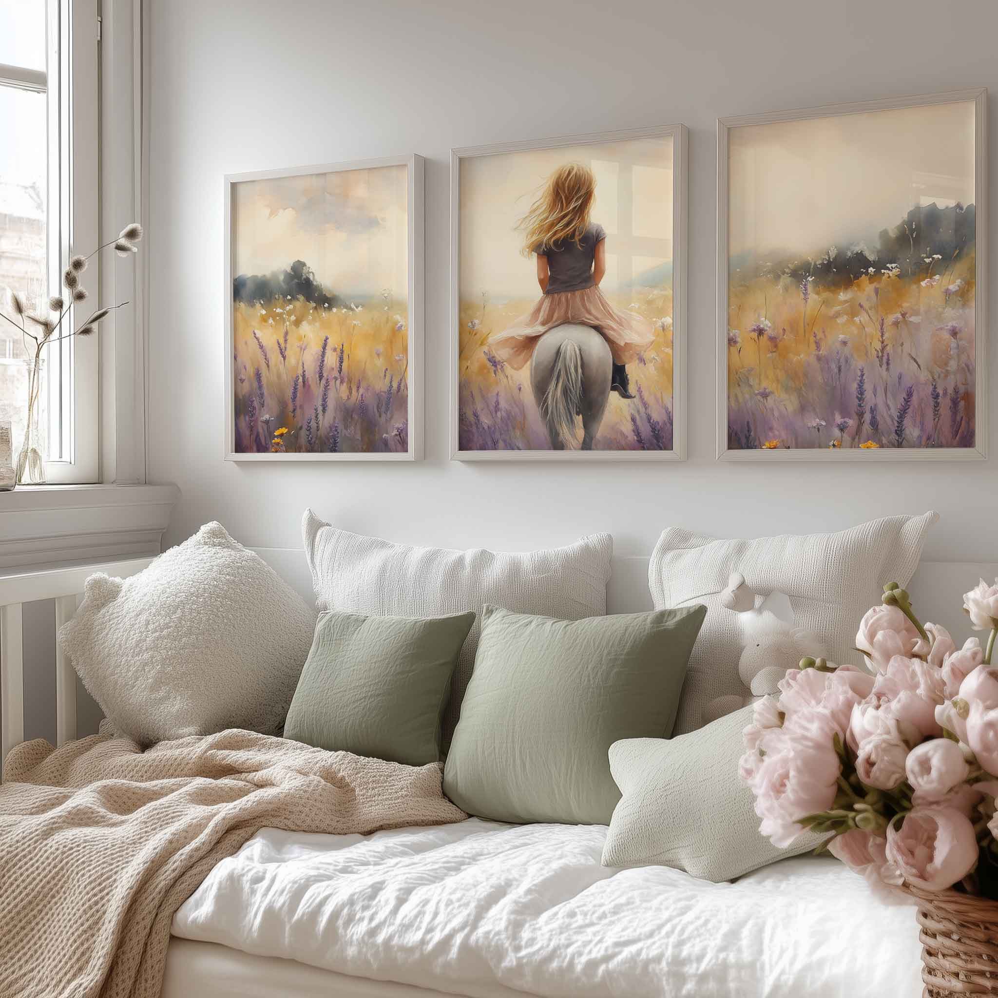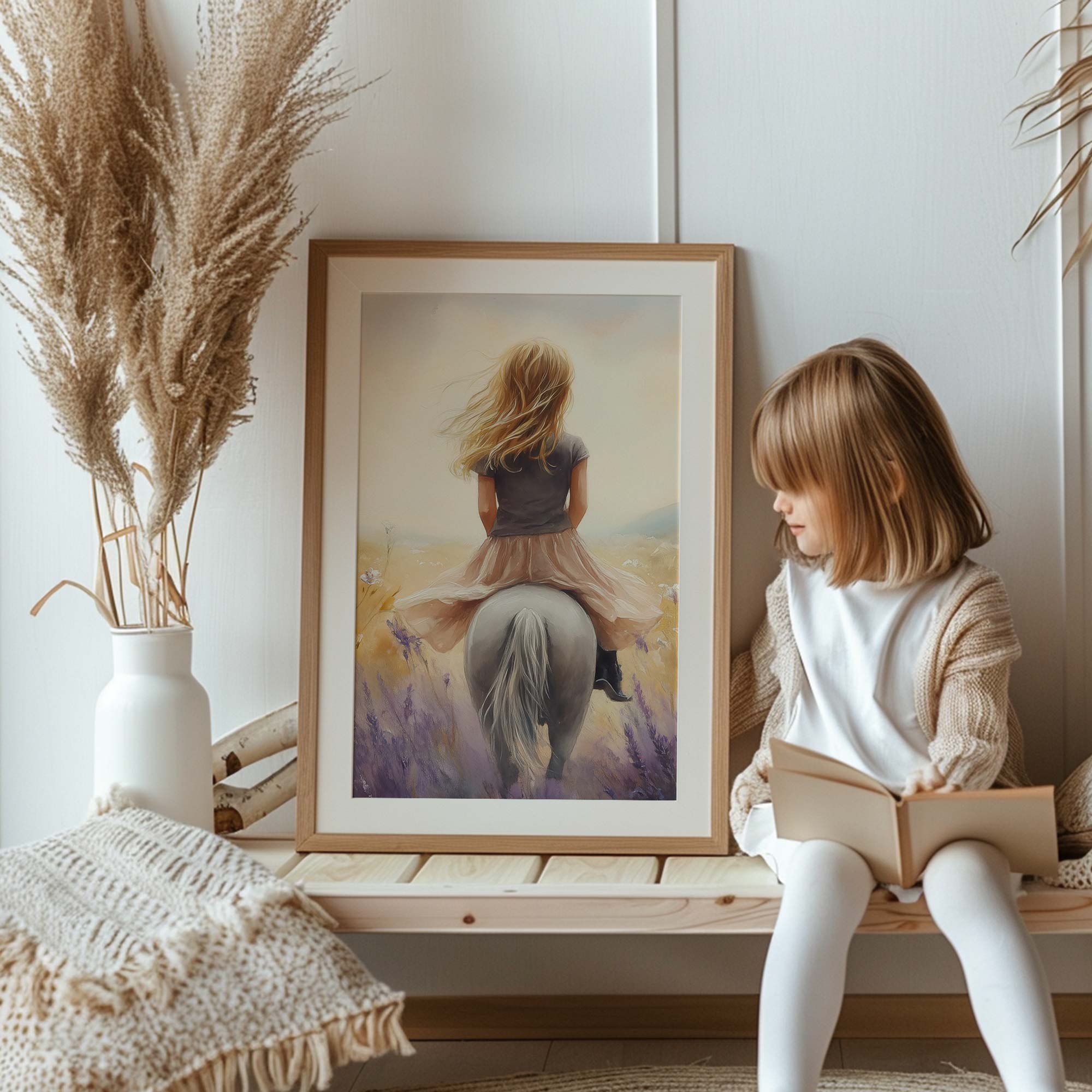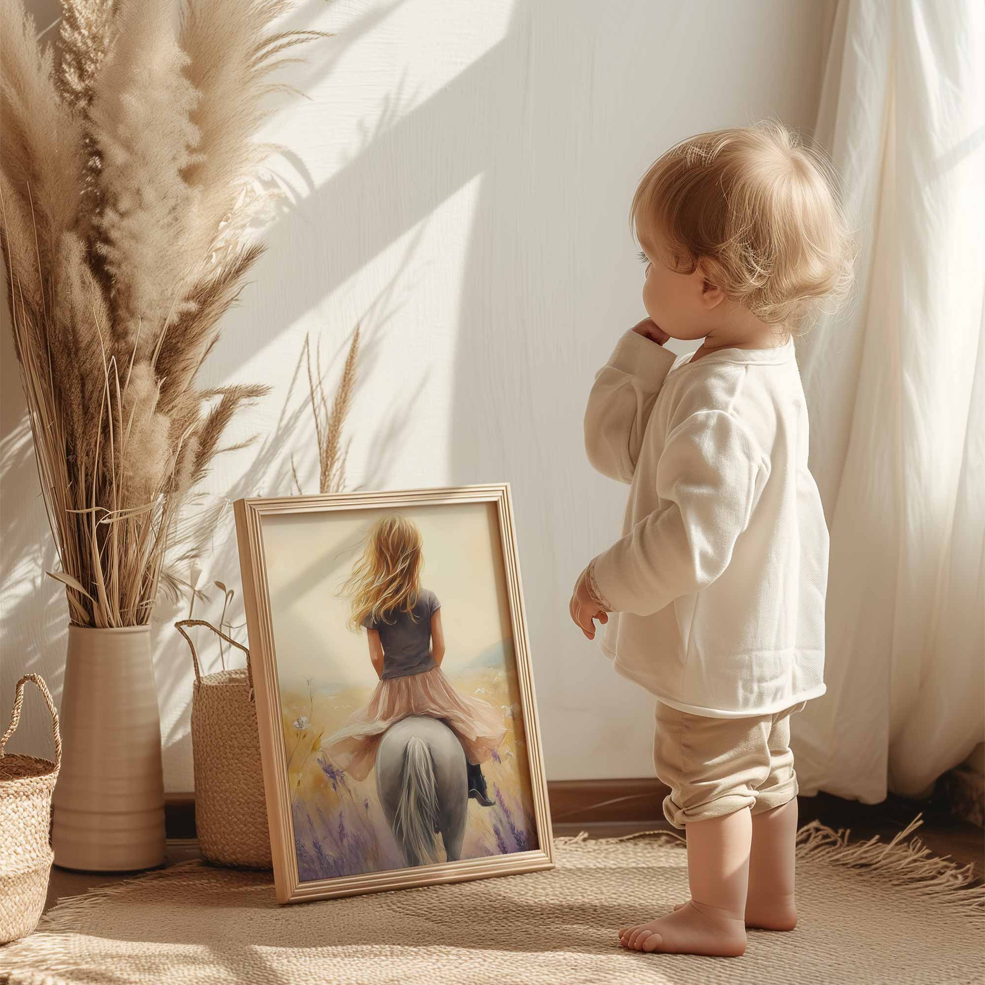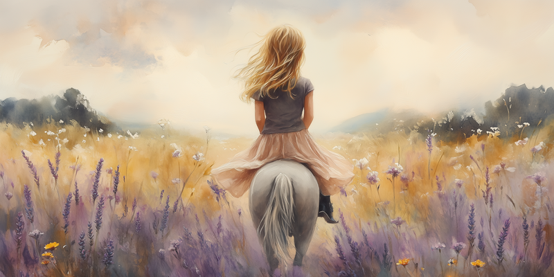 Zacht Dromerig Meisje op Paard tussen Bloemen